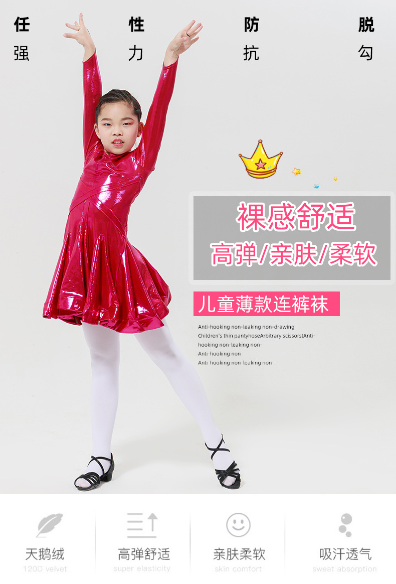 儿童舞蹈袜白色女童舞蹈大袜芭蕾舞连脚袜薄款打底练功裤袜