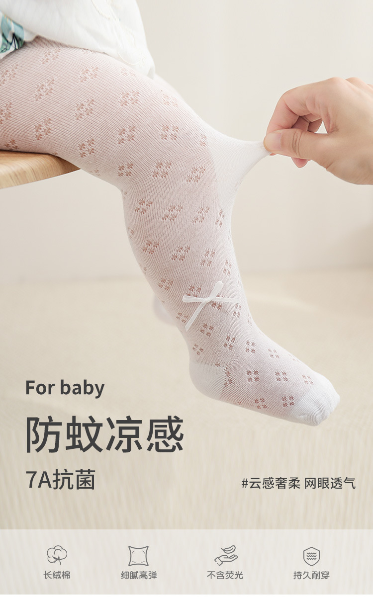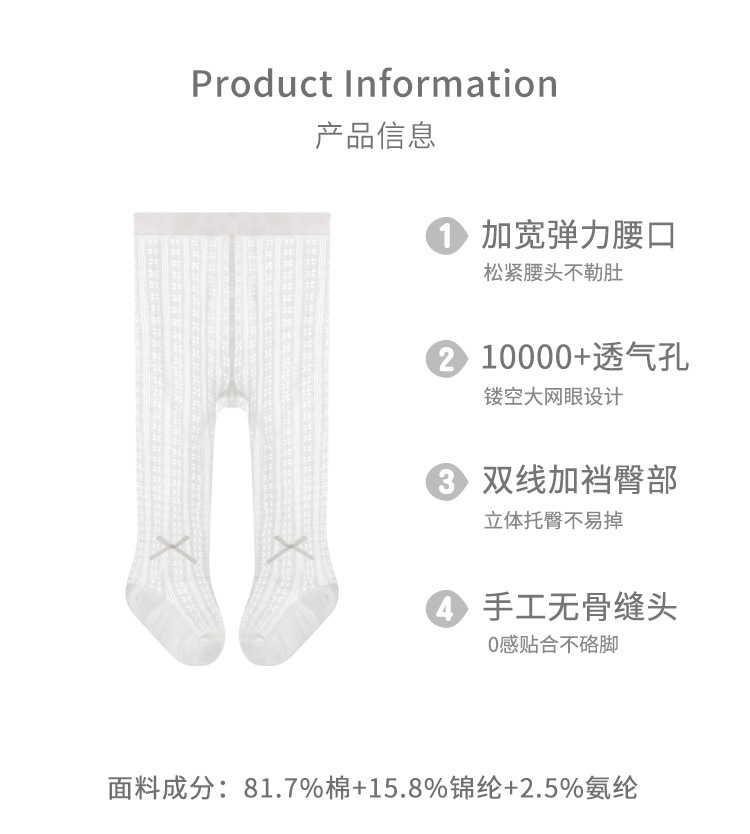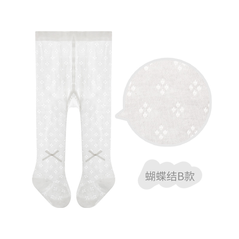 女童连裤袜夏季超薄网眼透气无骨宝宝婴儿打底裤蝴蝶结公主舞蹈袜
