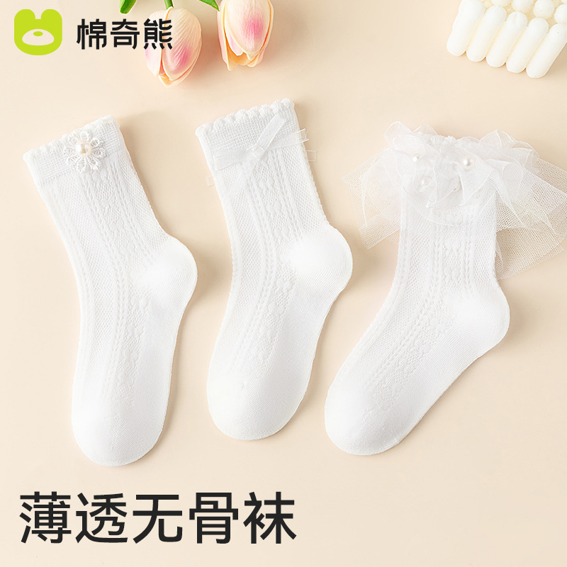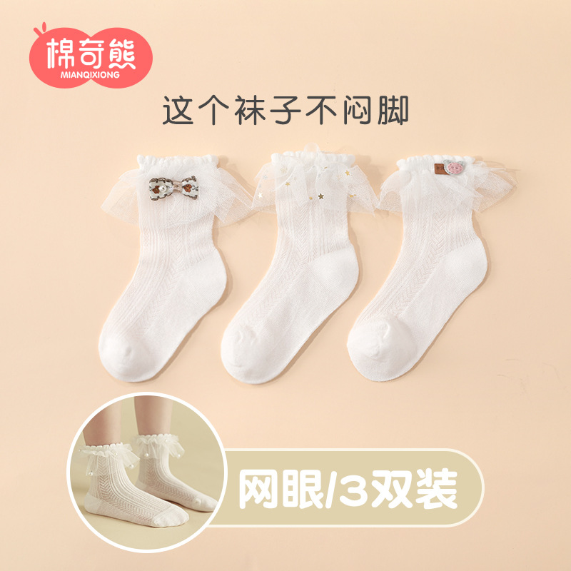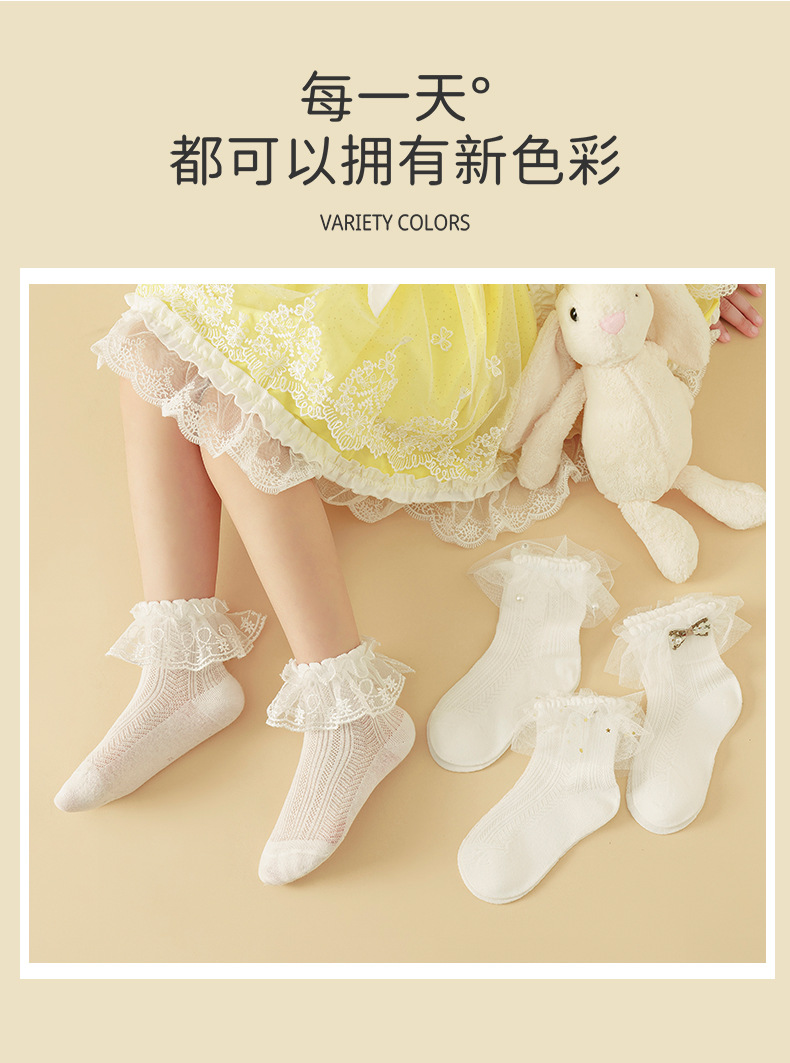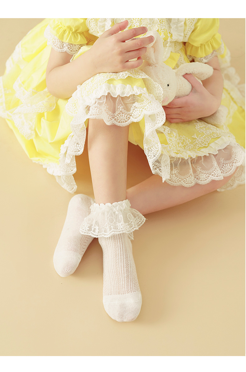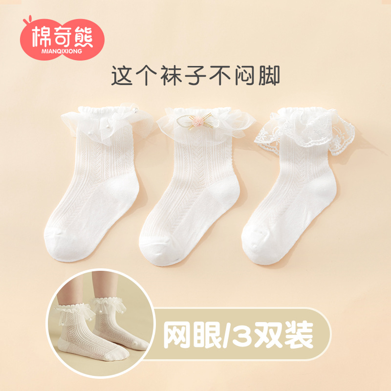 儿童袜子春秋薄款女童高棉网眼袜韩版白色蕾丝舞蹈袜公主花边短袜