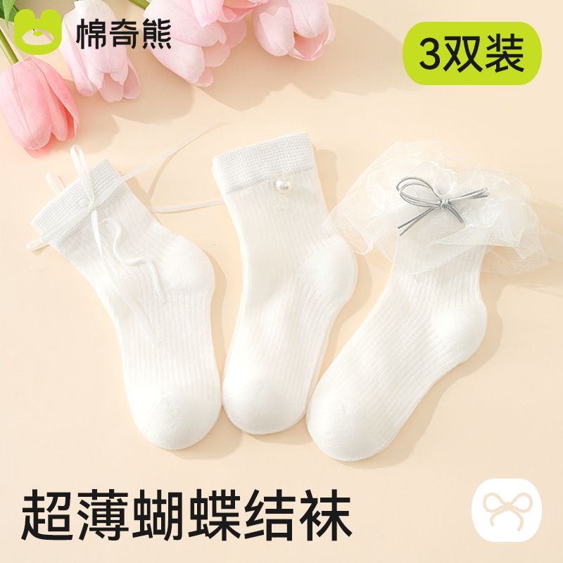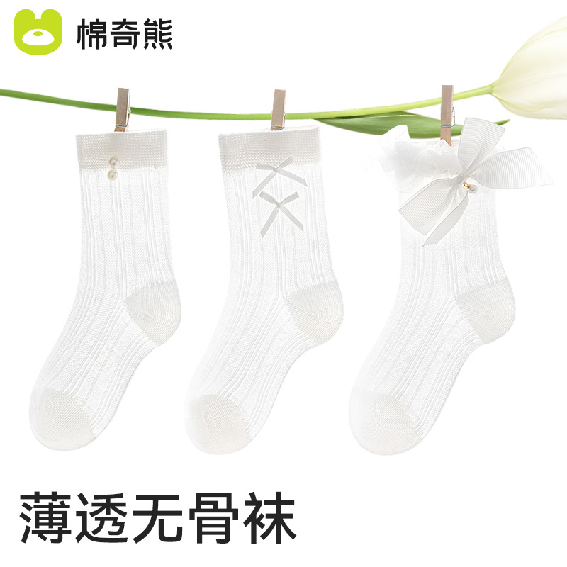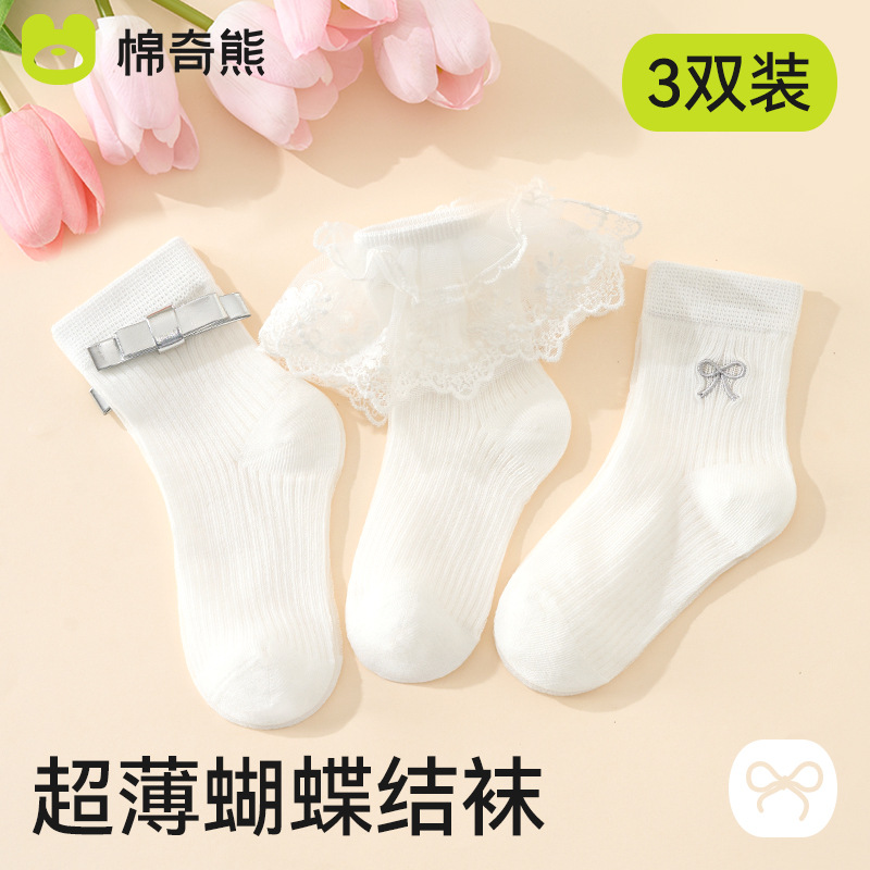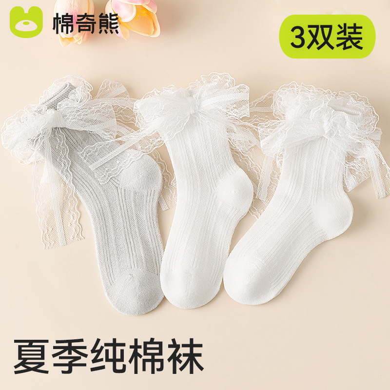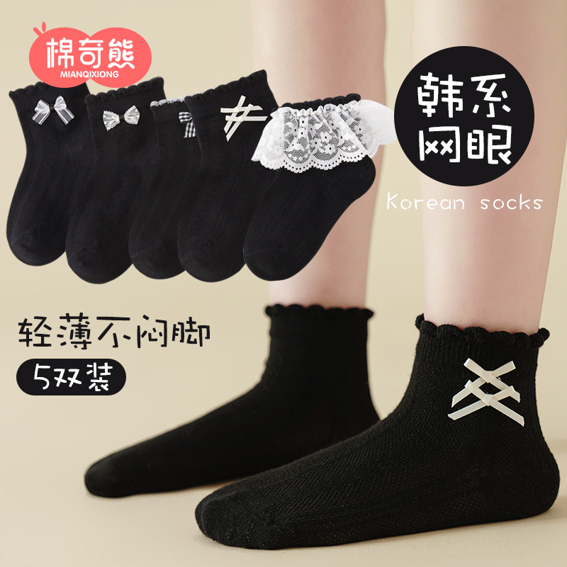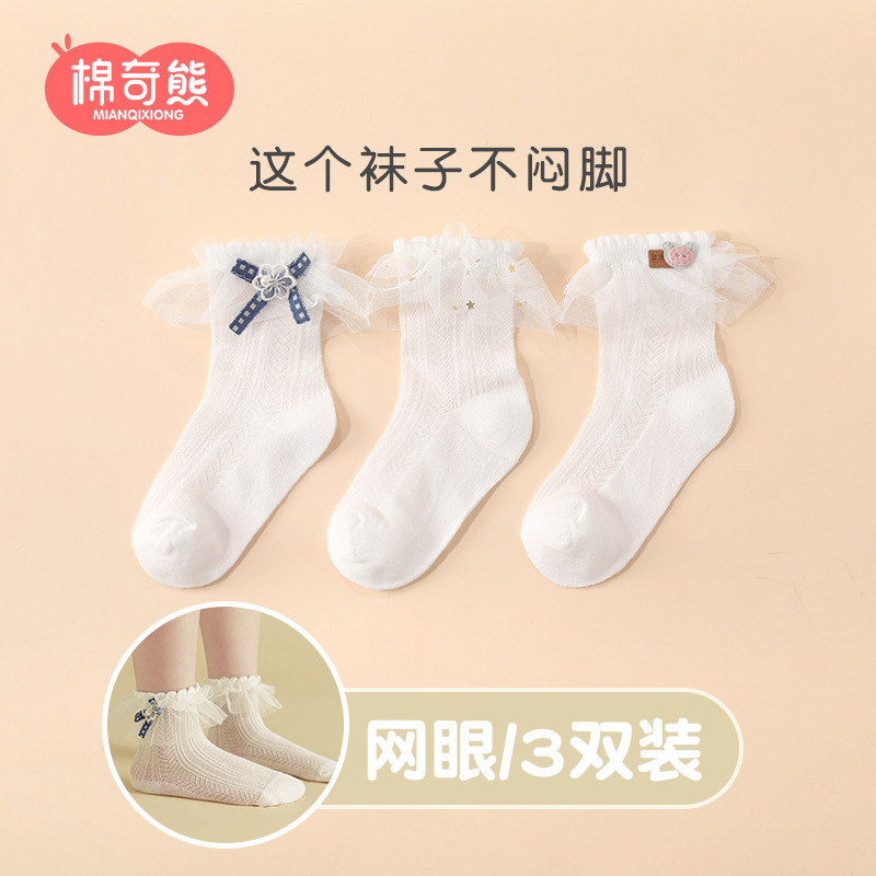 儿童袜子春秋薄款女童高棉网眼袜韩版白色蕾丝舞蹈袜公主花边短袜