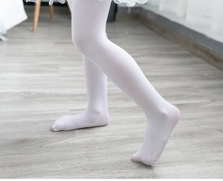 儿童舞蹈袜春秋薄款女童跳舞连裤袜白色天鹅绒丝袜女孩练功连裤袜