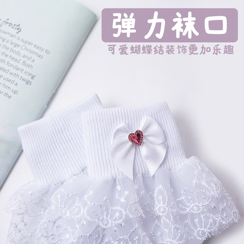 儿童花边袜 春秋夏真棉透气宝宝女童袜子 白色蕾丝公主舞蹈花边袜