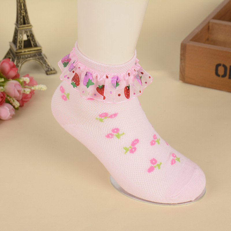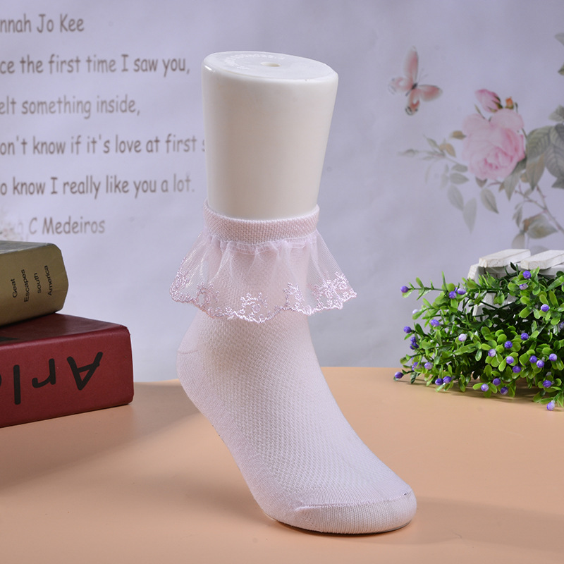 童袜女童春夏款白色网眼袜子棉袜宝宝蕾丝花边袜舞蹈学生短袜批发