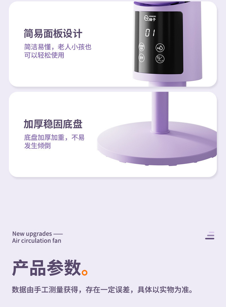 空气循环扇立式家用卧室内杨子大风力小型落地电风扇欧规英规美规