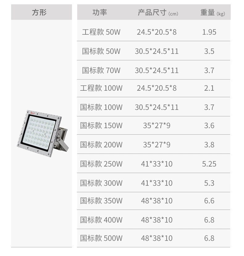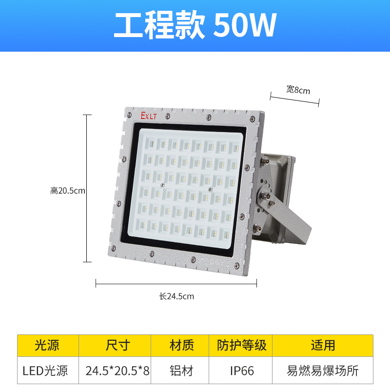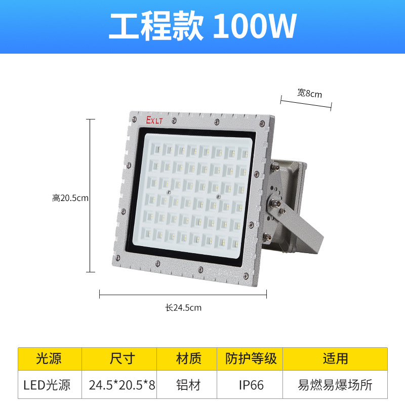 led防爆灯仓库用厂房化工车间隔爆型加油站100w工业防爆投光灯