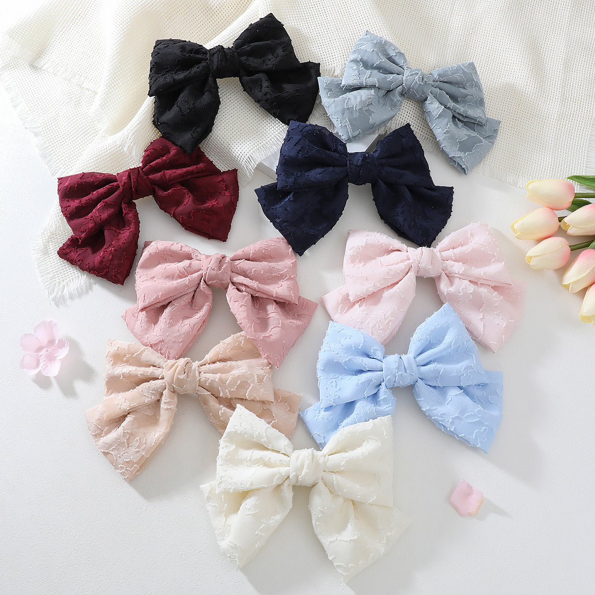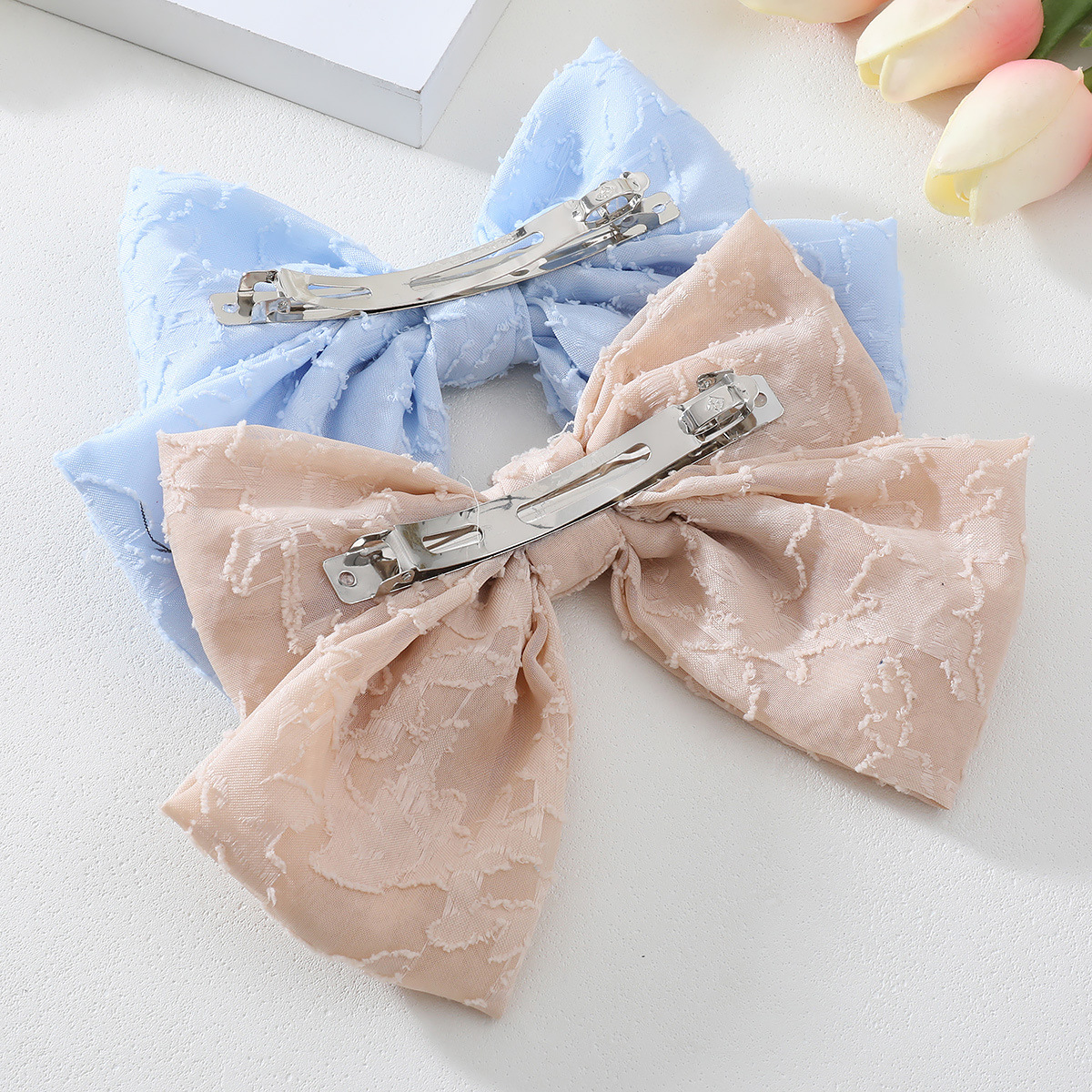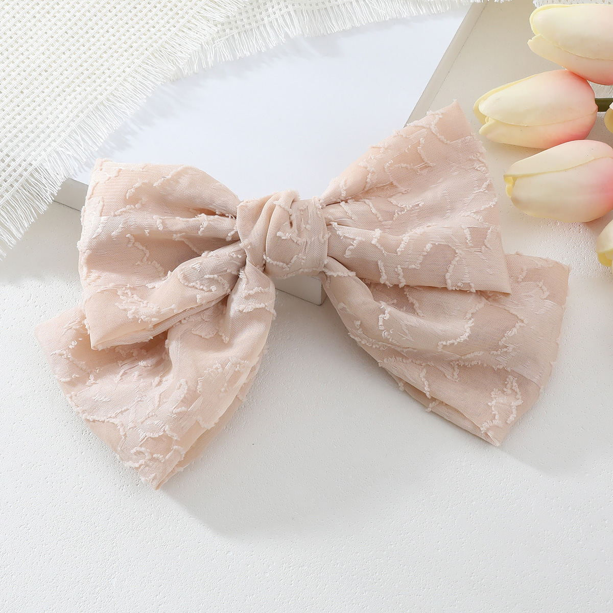韩版波点布料大号蝴蝶结发夹简约清新夏季后脑盘发碎布弹簧夹发饰