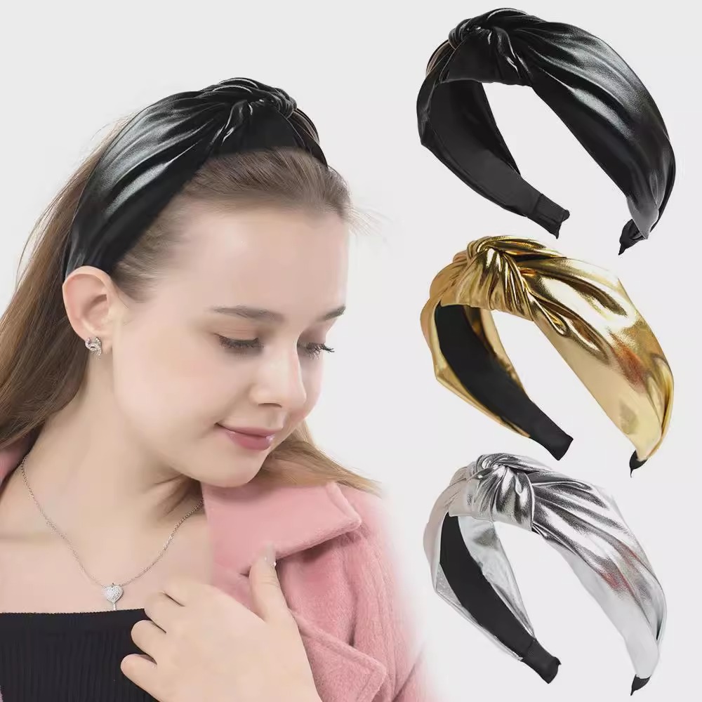 跨境简约PU皮打结发箍宽边洗脸发卡欧美时尚气质头箍发饰厂家批发