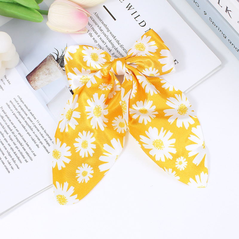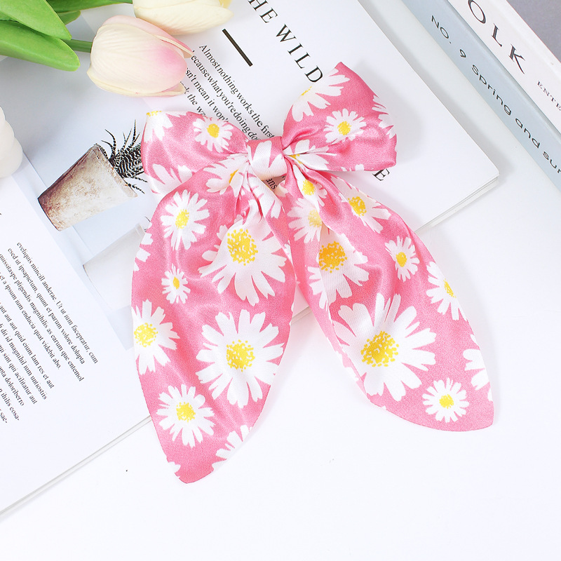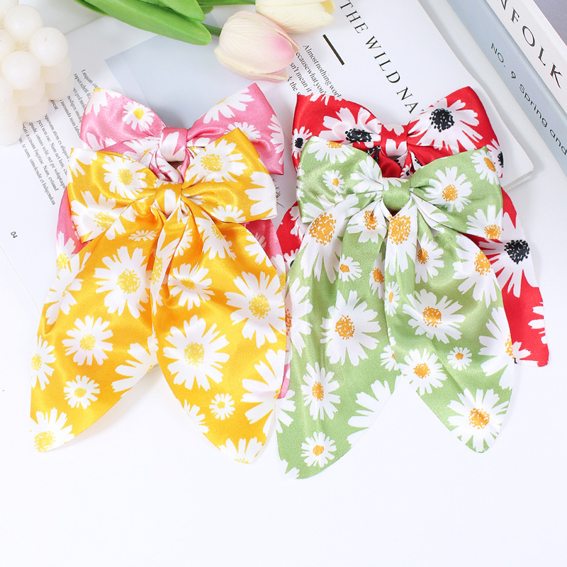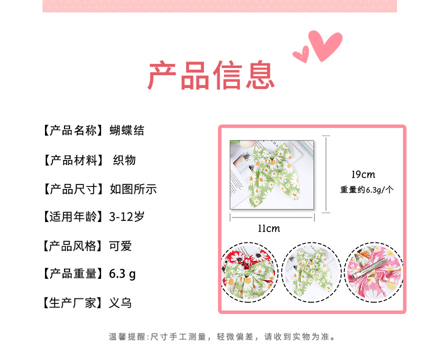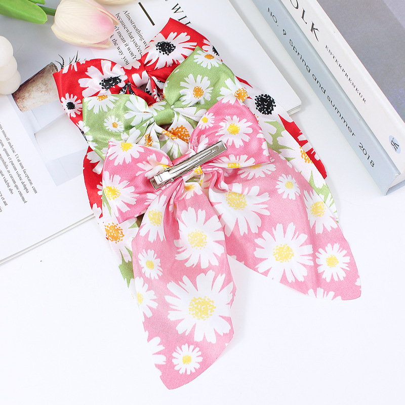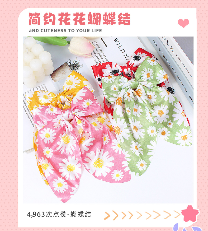 亚马逊春夏新款小雏菊清新儿童蝴蝶结发夹女童花卉后脑勺装饰夹