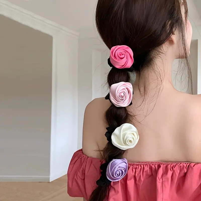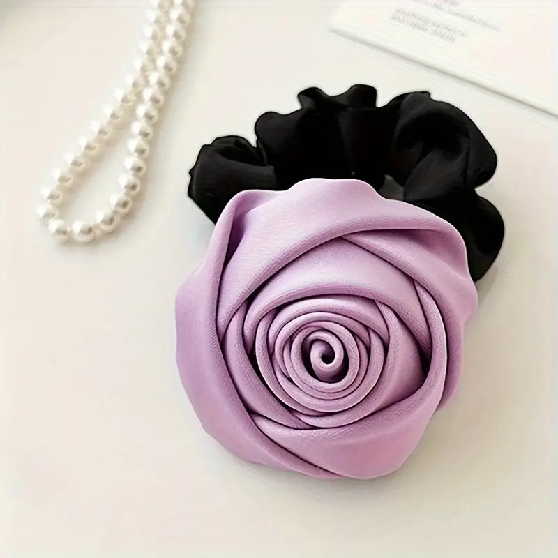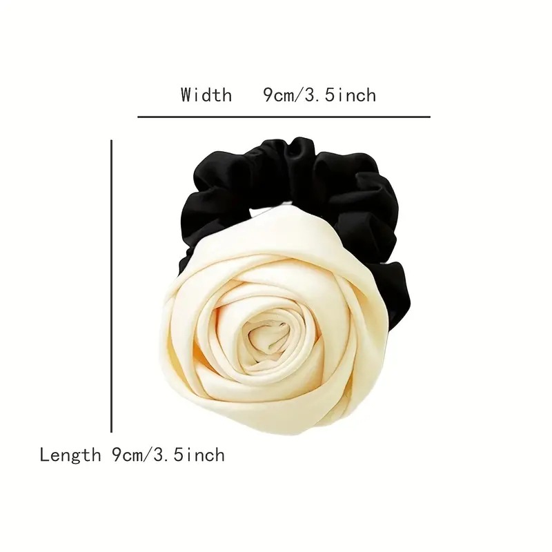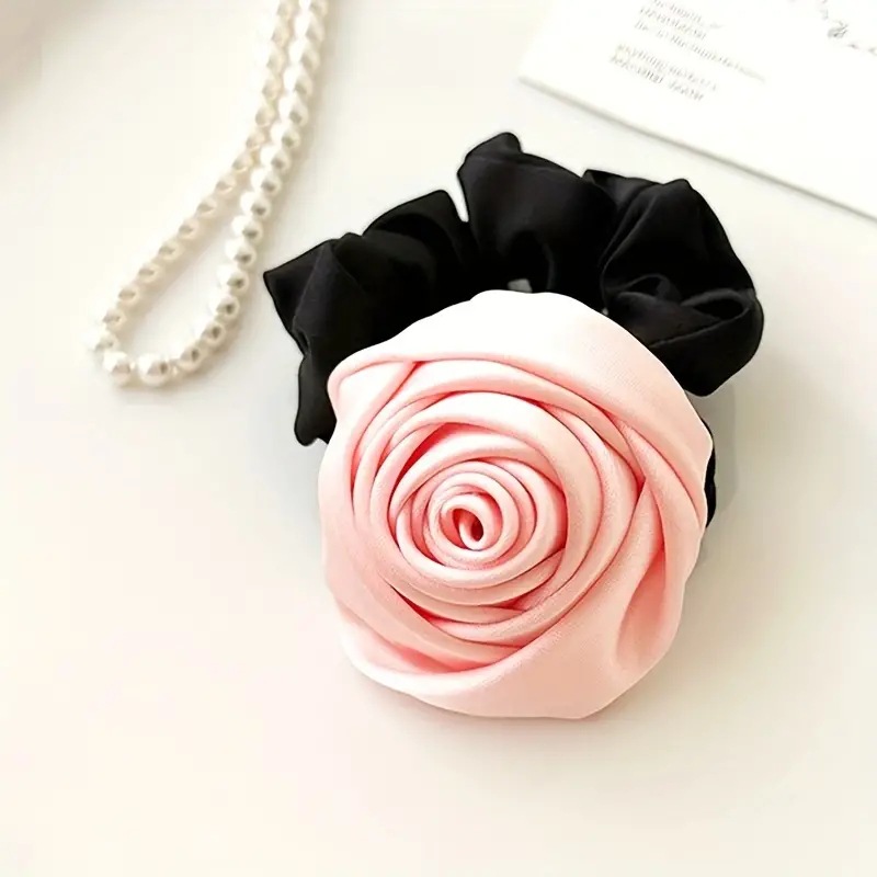2025新款法式缎面玫瑰花发圈马尾头绳大肠圈时尚头饰发饰