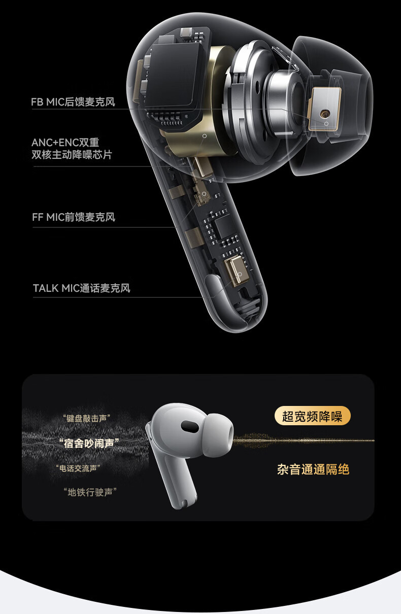 蒙奇奇P104主动降噪ANC入耳式无线蓝牙耳机电竞游戏电脑超长续航