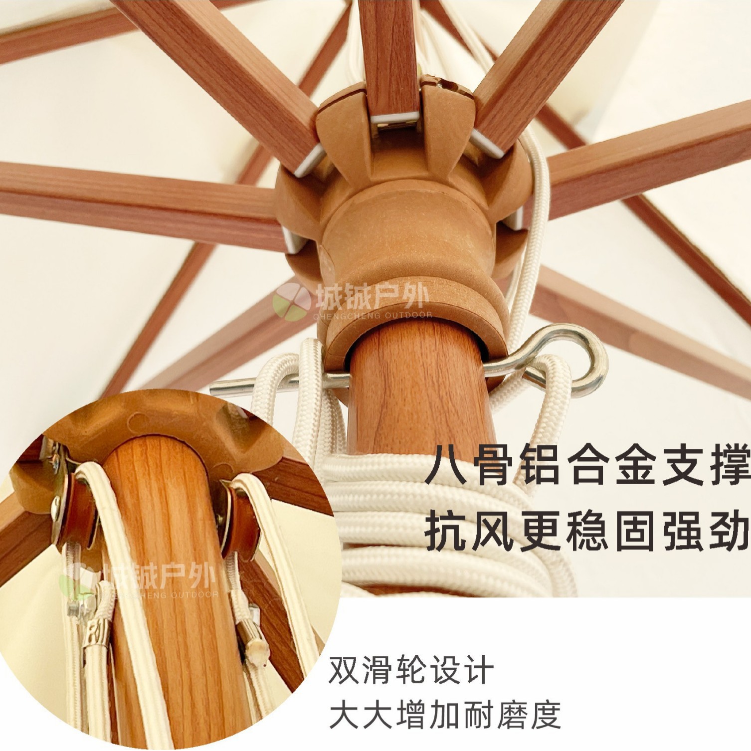 户外遮阳伞铝合金仿木纹抗风强花园别墅咖啡奶茶店户外沙滩中柱伞