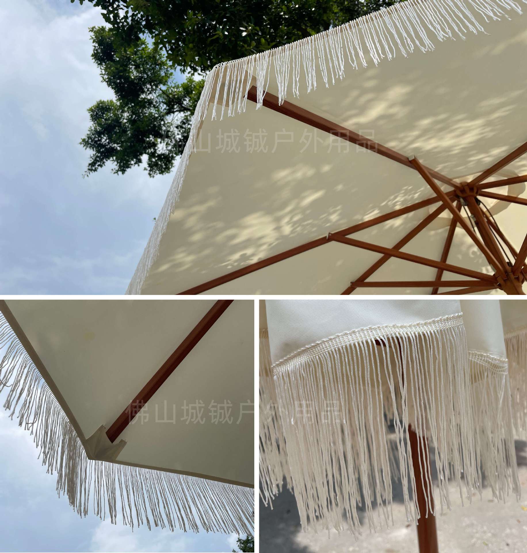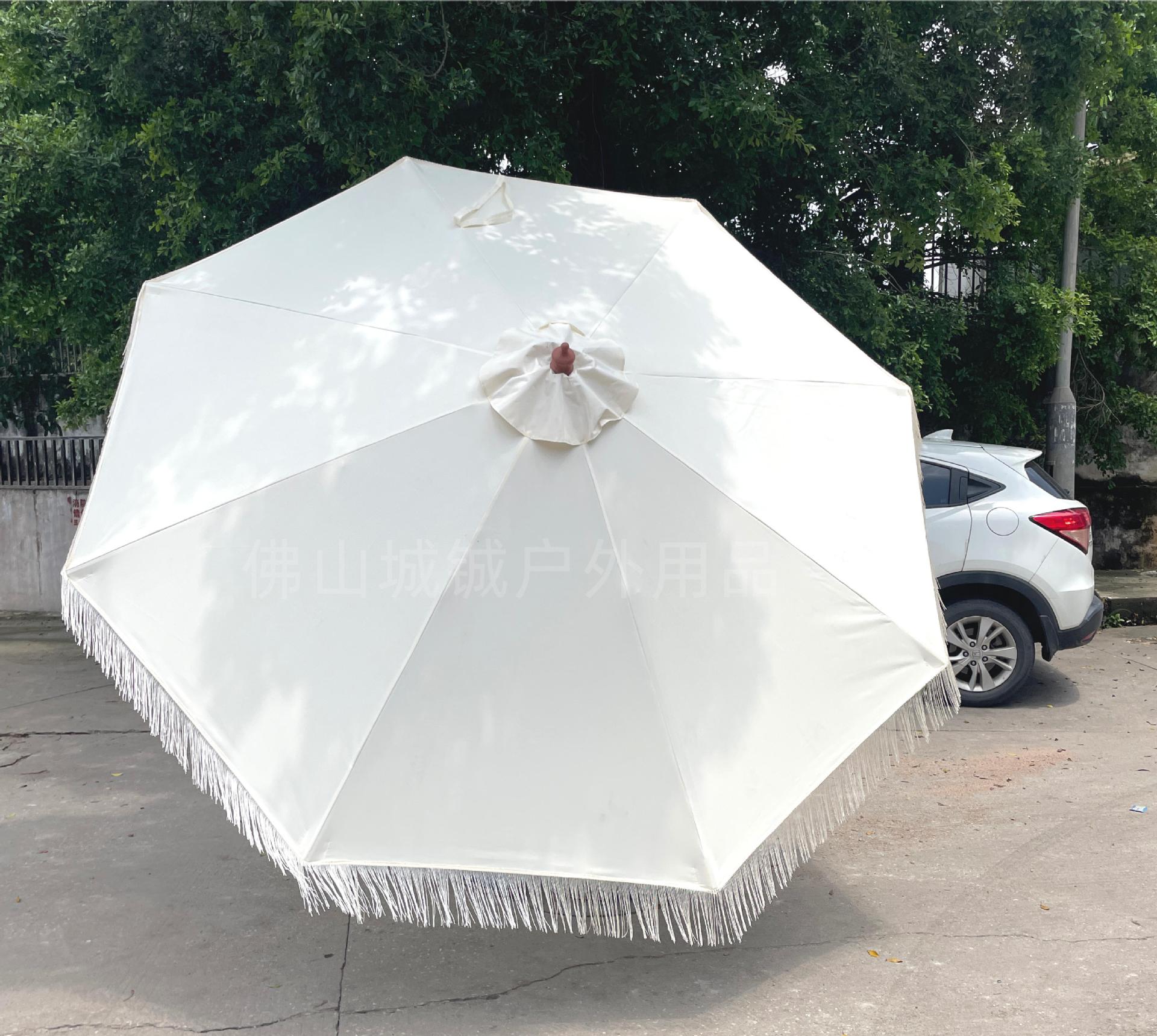 户外遮阳伞沙滩海边泳池流苏中柱伞多色可选铝合金庭院流苏户外伞