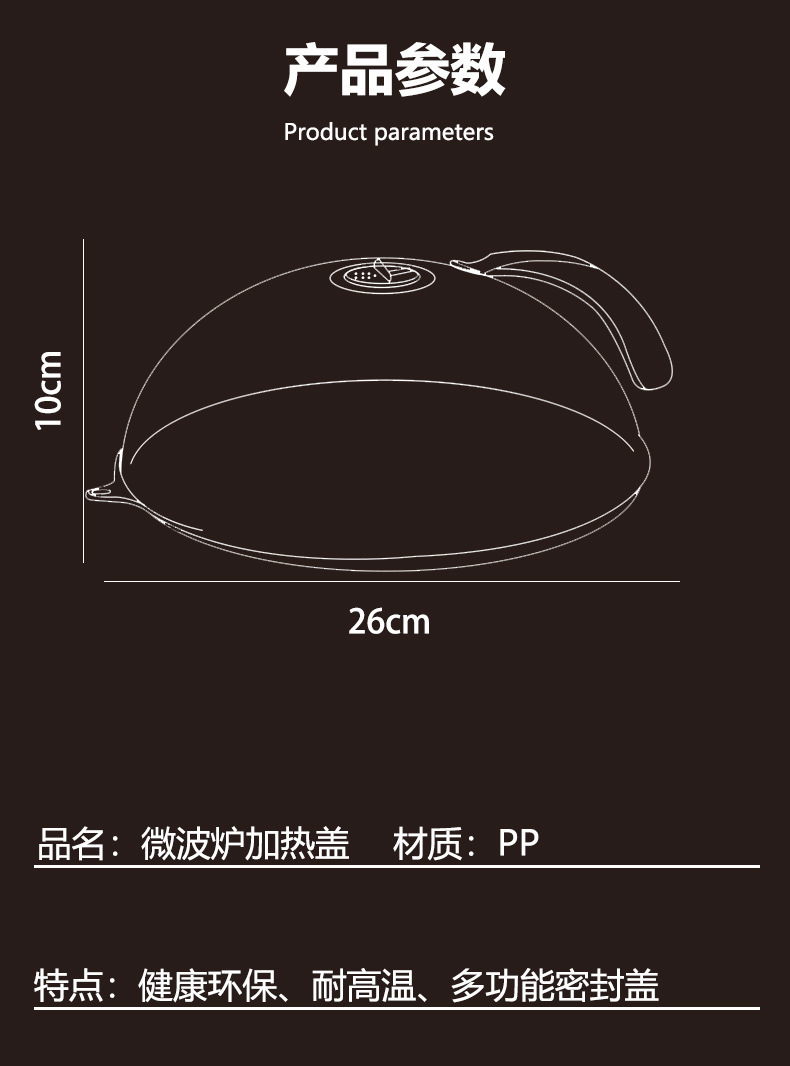 | 23*9 small size microwave oven splash-proof cover(23*9小号微波炉防溅盖) | USD $0.28 | 951834 piece available |