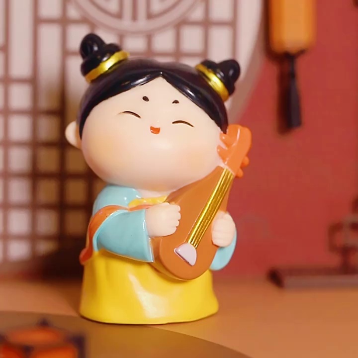 国风宫女唐小圆趣味潮玩手办盲盒桌面摆件国潮搪胶公仔仕女摆件