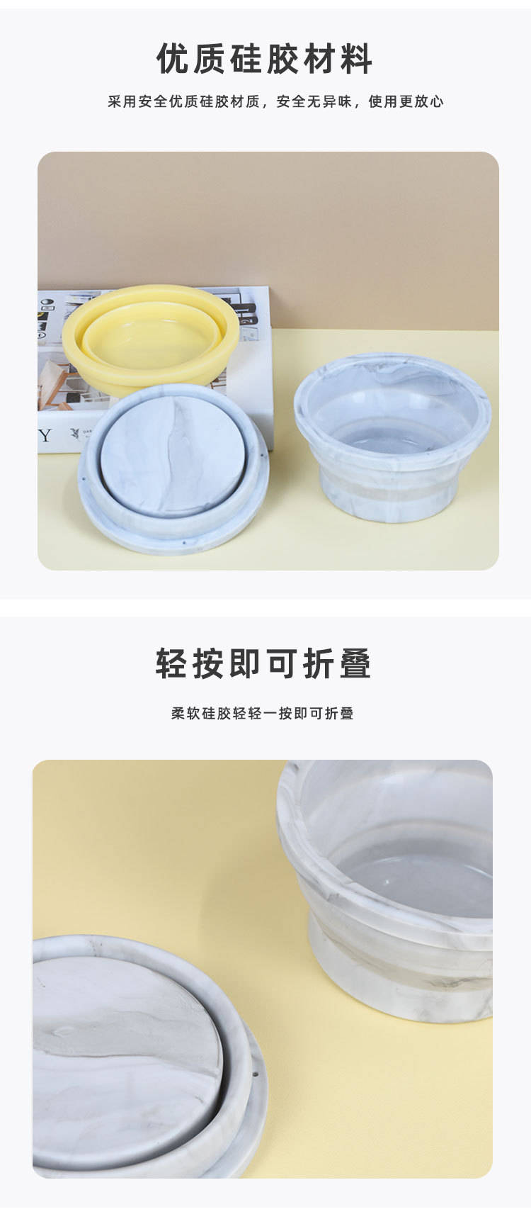 跨境热销新款家用猫碗简约高颜值大号全硅胶可折叠户外便携宠物碗