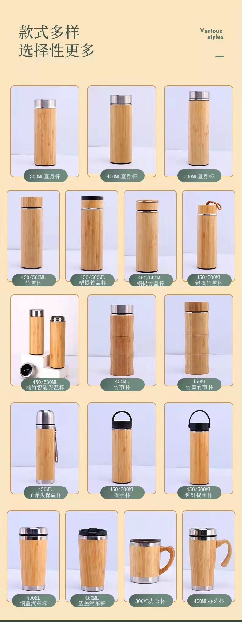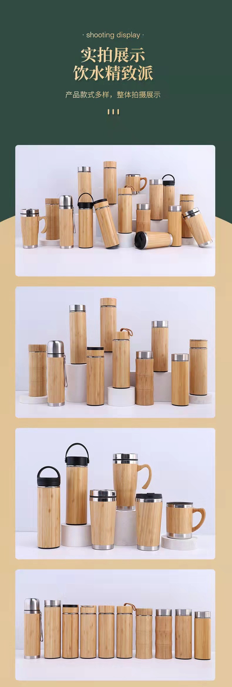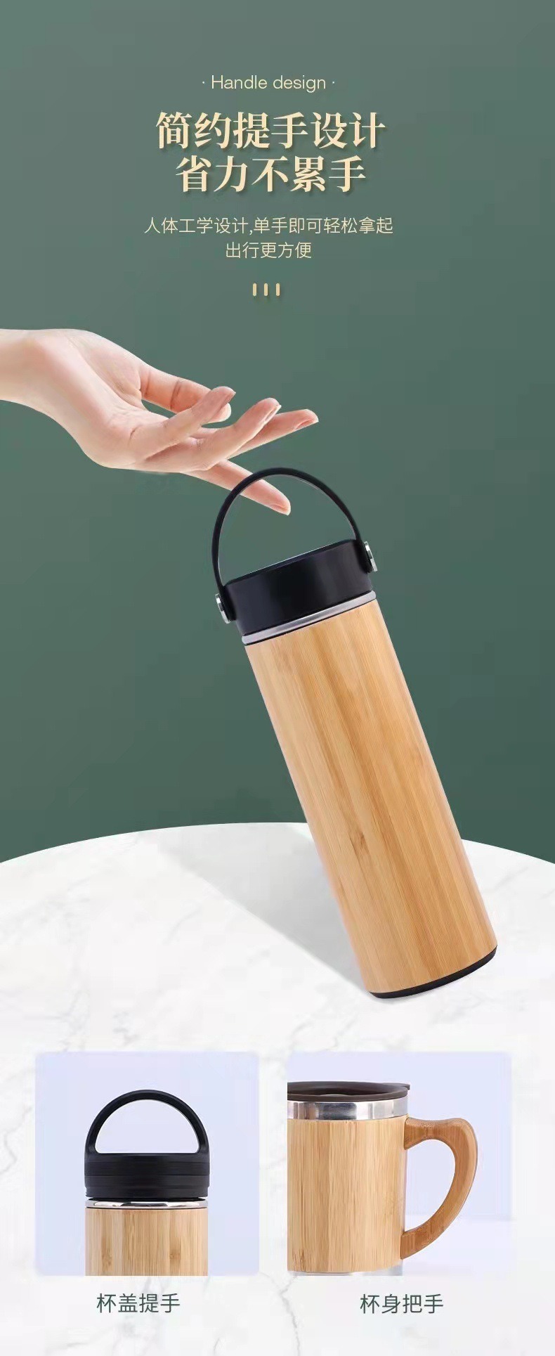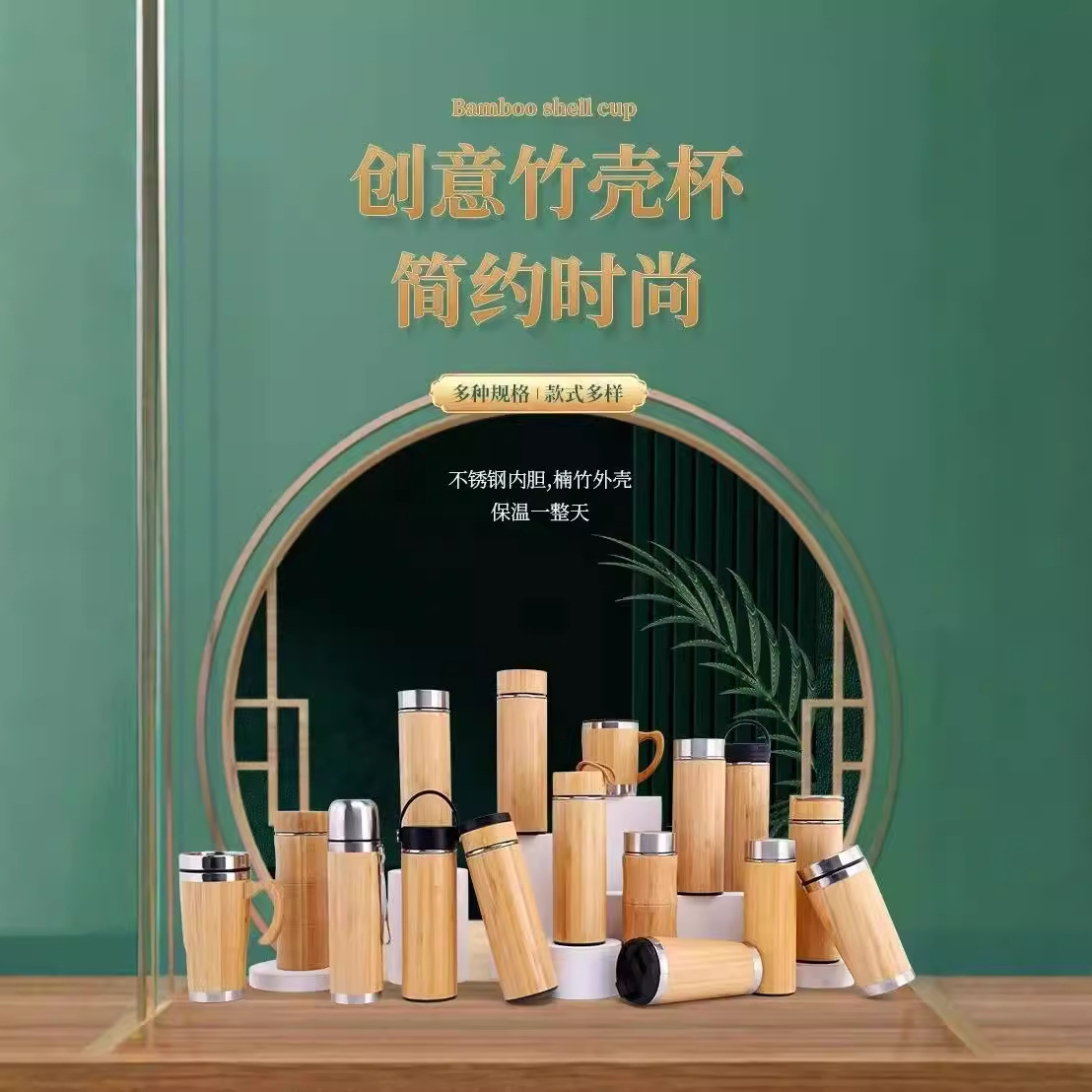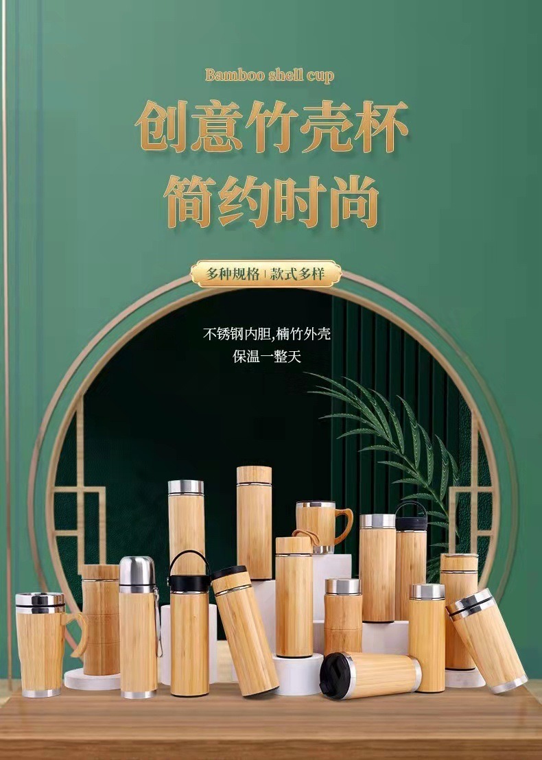 跨境创意竹壳保温杯304不锈钢双层真空保温杯户外车载手提竹壳杯