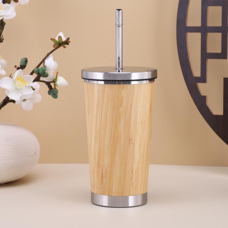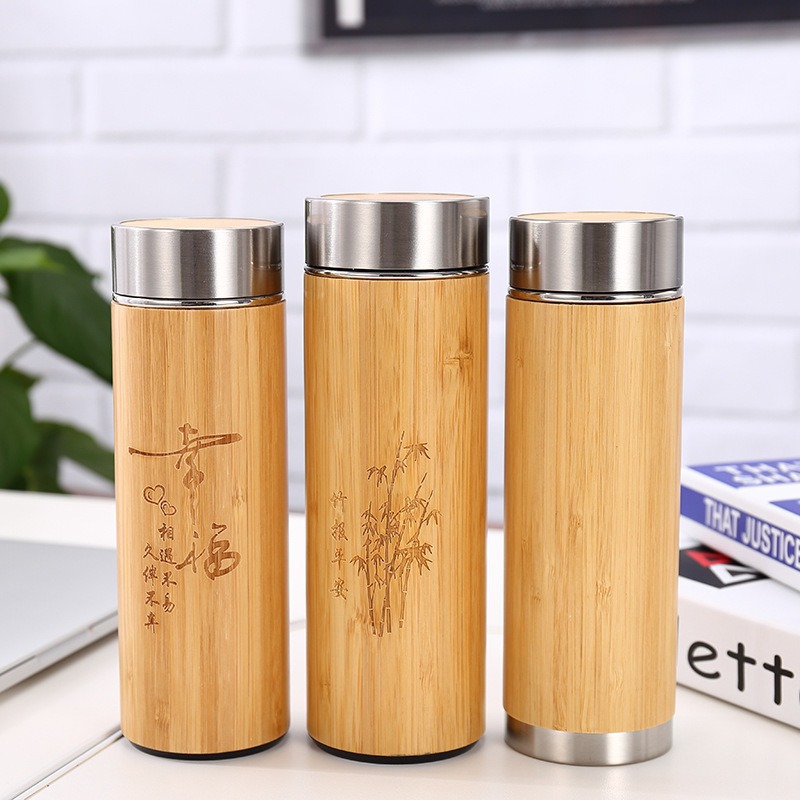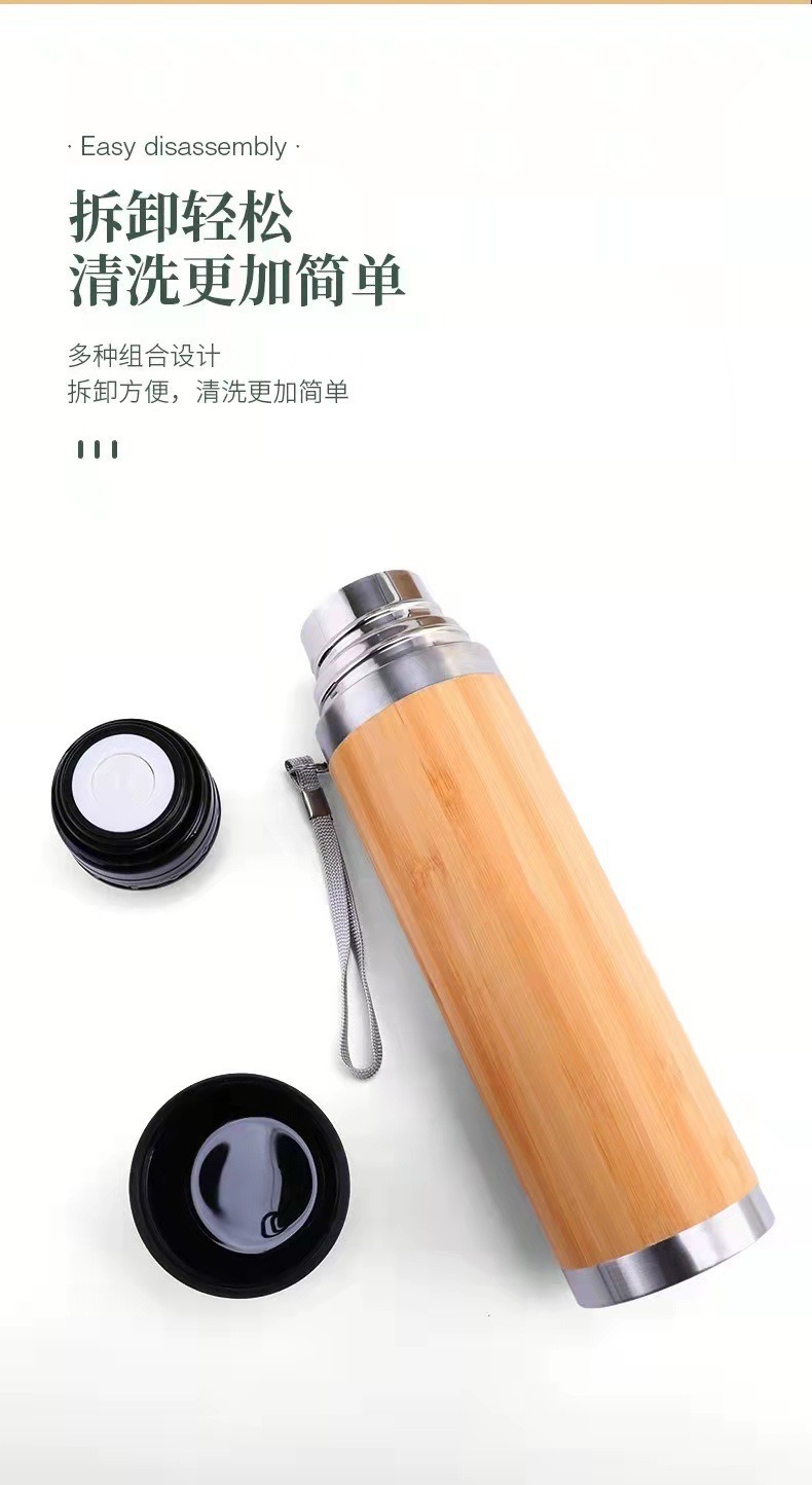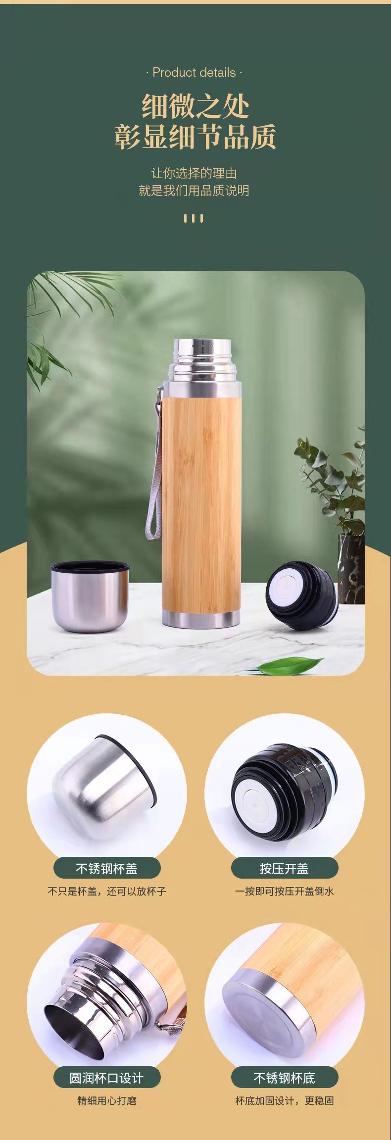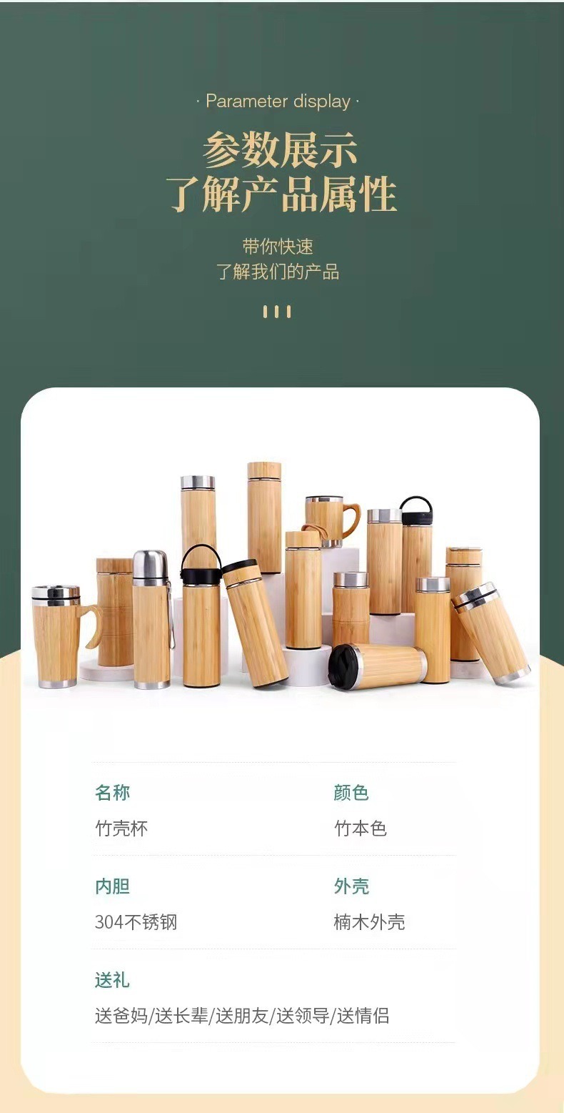 跨境创意竹壳保温杯304不锈钢双层真空保温杯户外车载手提竹壳杯