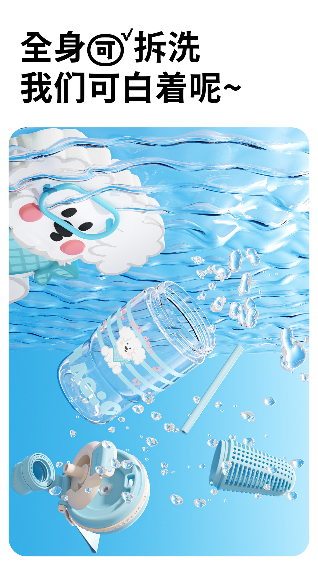 材质:杯盖PP+硅胶吸管