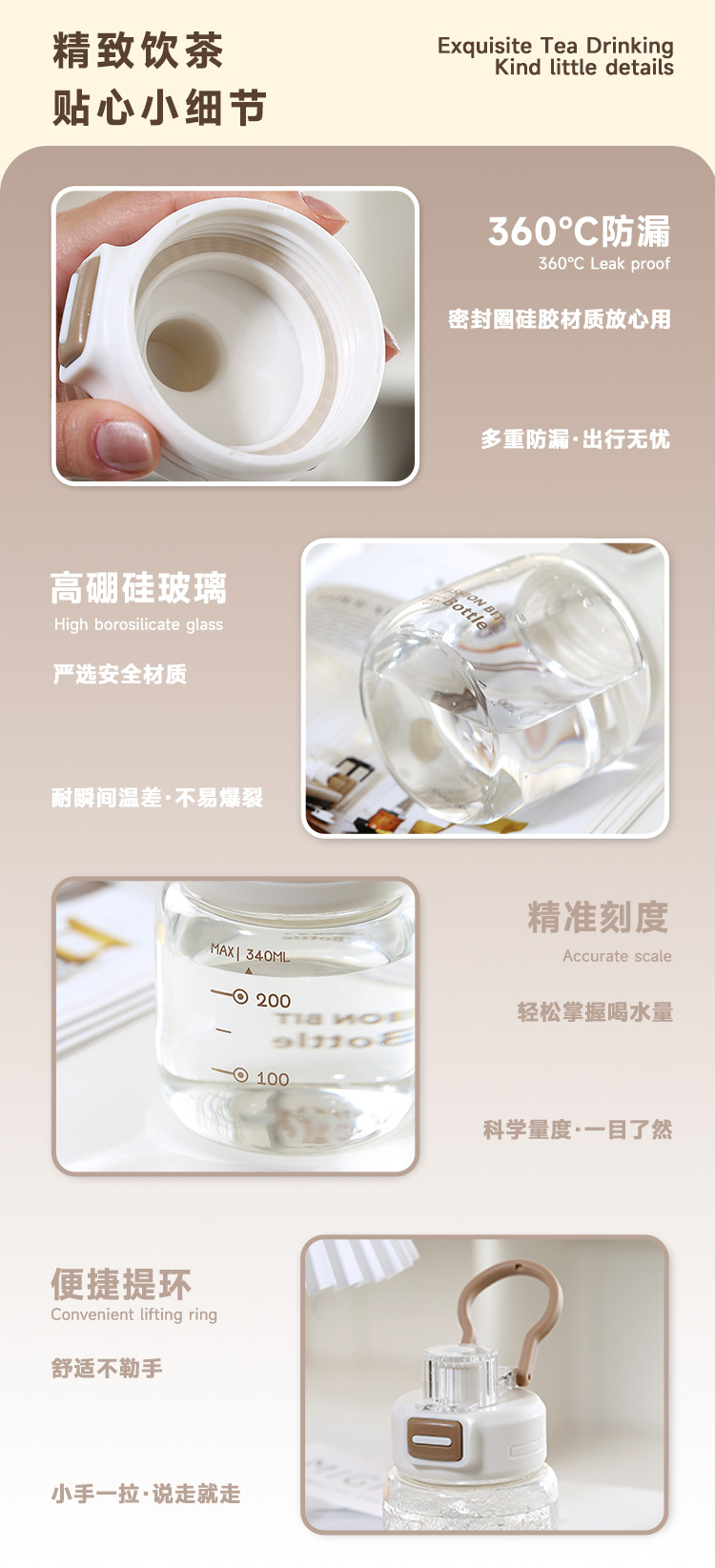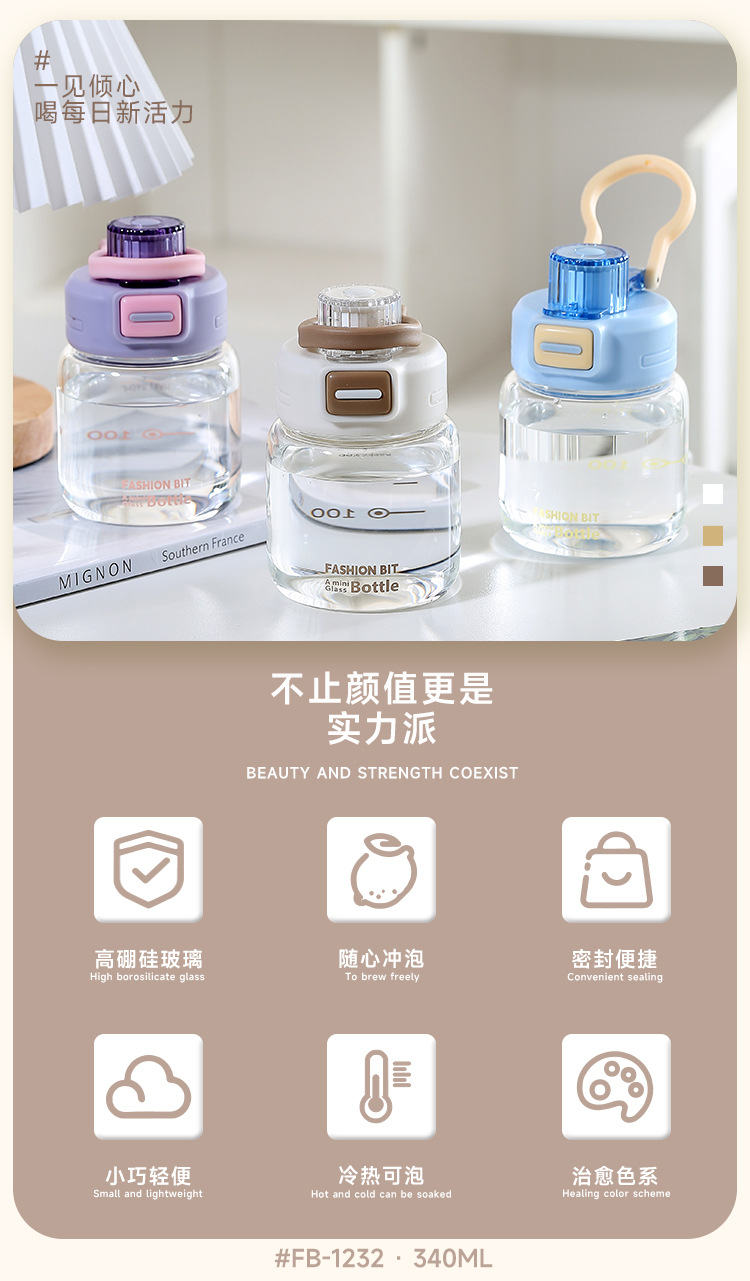 2025新款高硼硅玻璃杯带刻度提手泡茶杯子简约女生直饮水杯批发