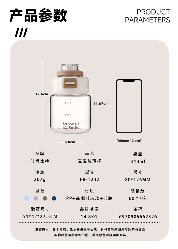 品名:麦麦玻璃杯(彩盒)