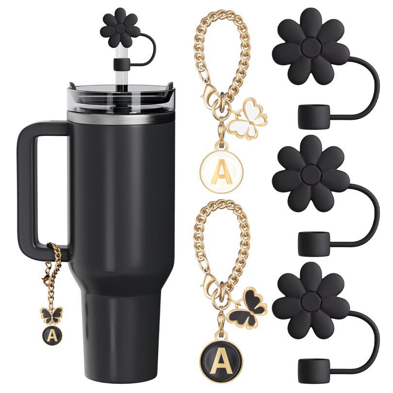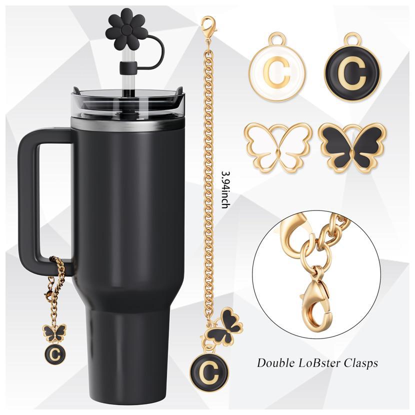 字母链子套装与斯坦利杯配件兼容斯坦利杯草帽的黑色草帽斯坦利30