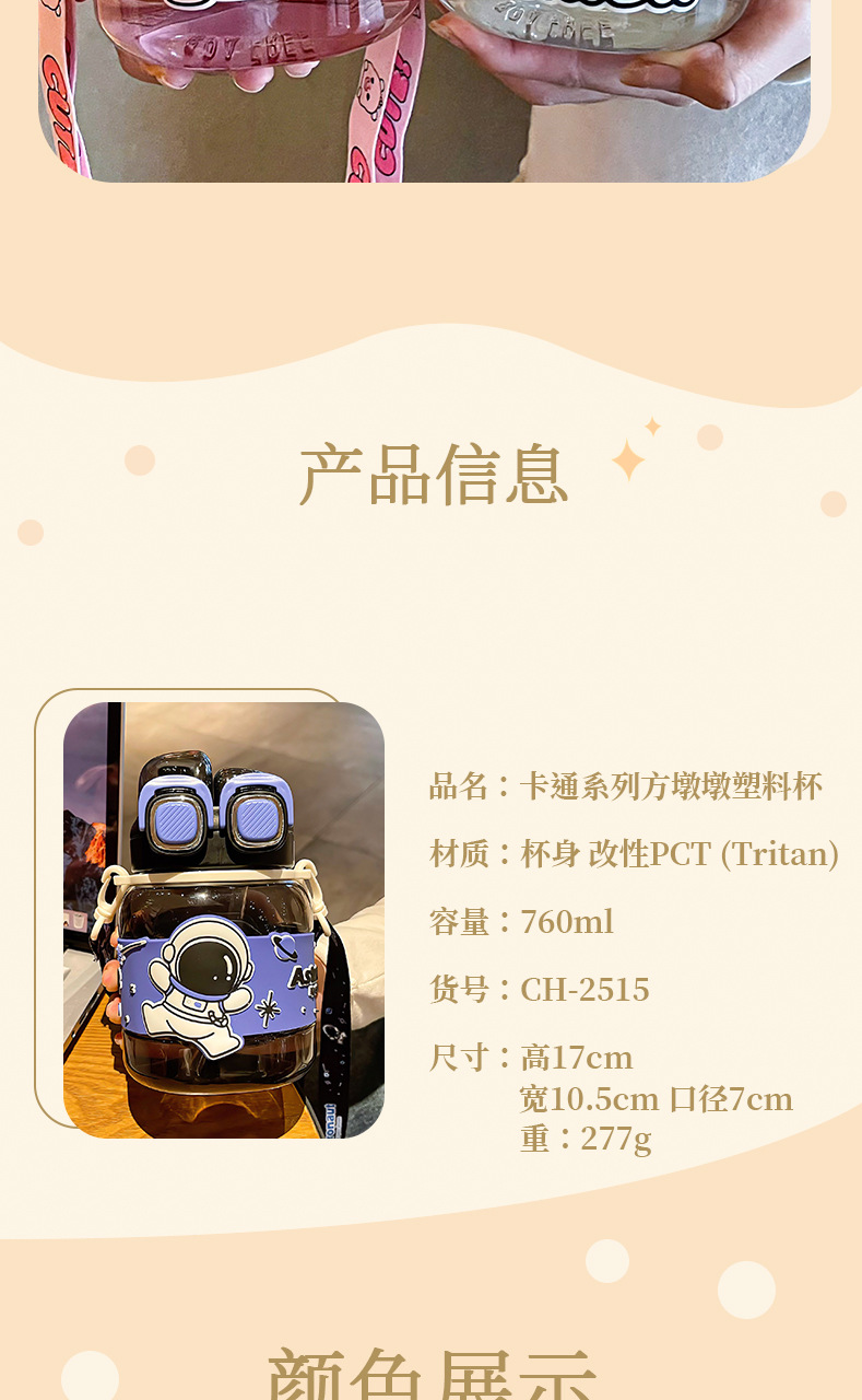 品名:卡通系列方墩墩塑料杯(彩盒)、