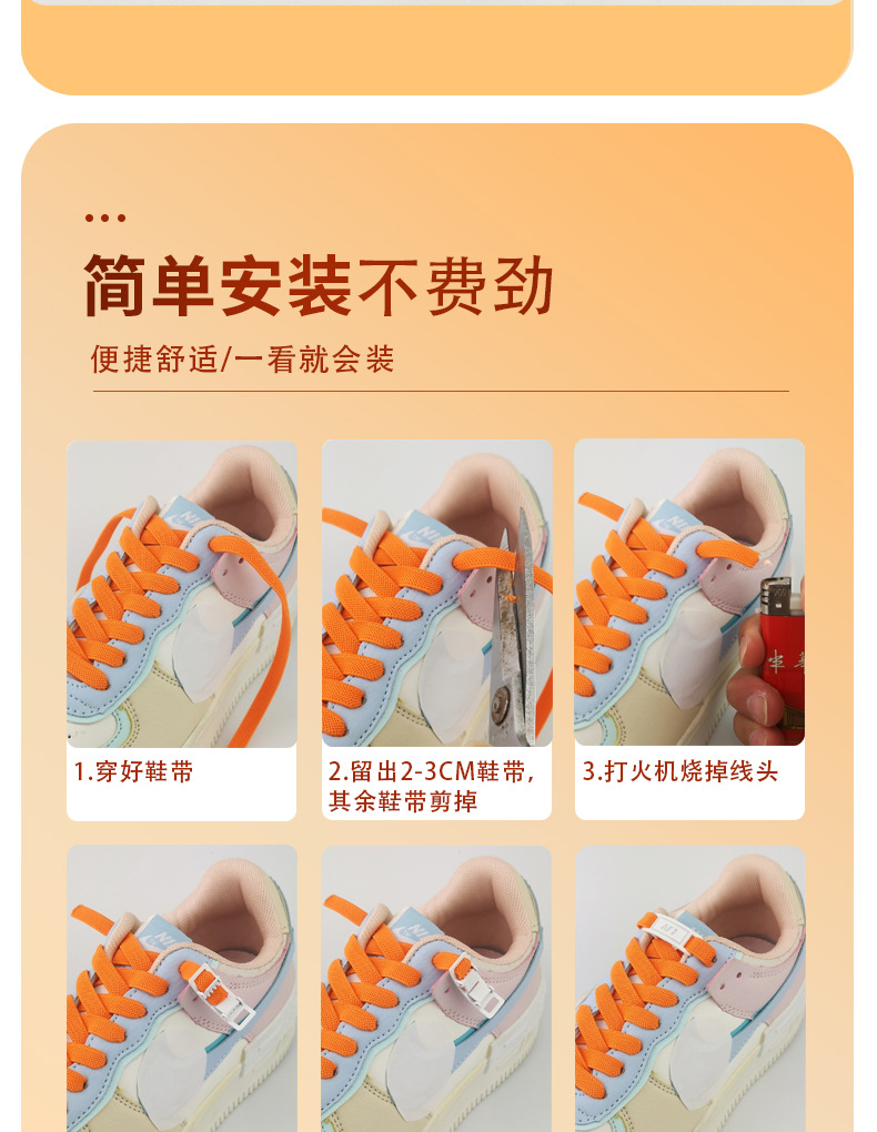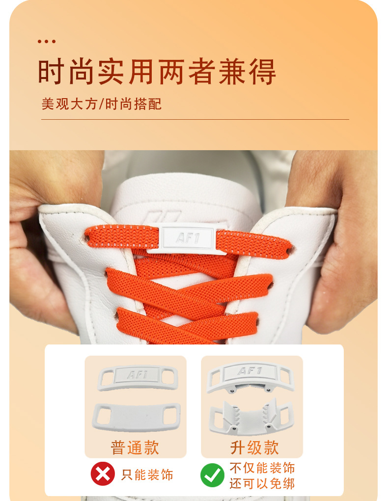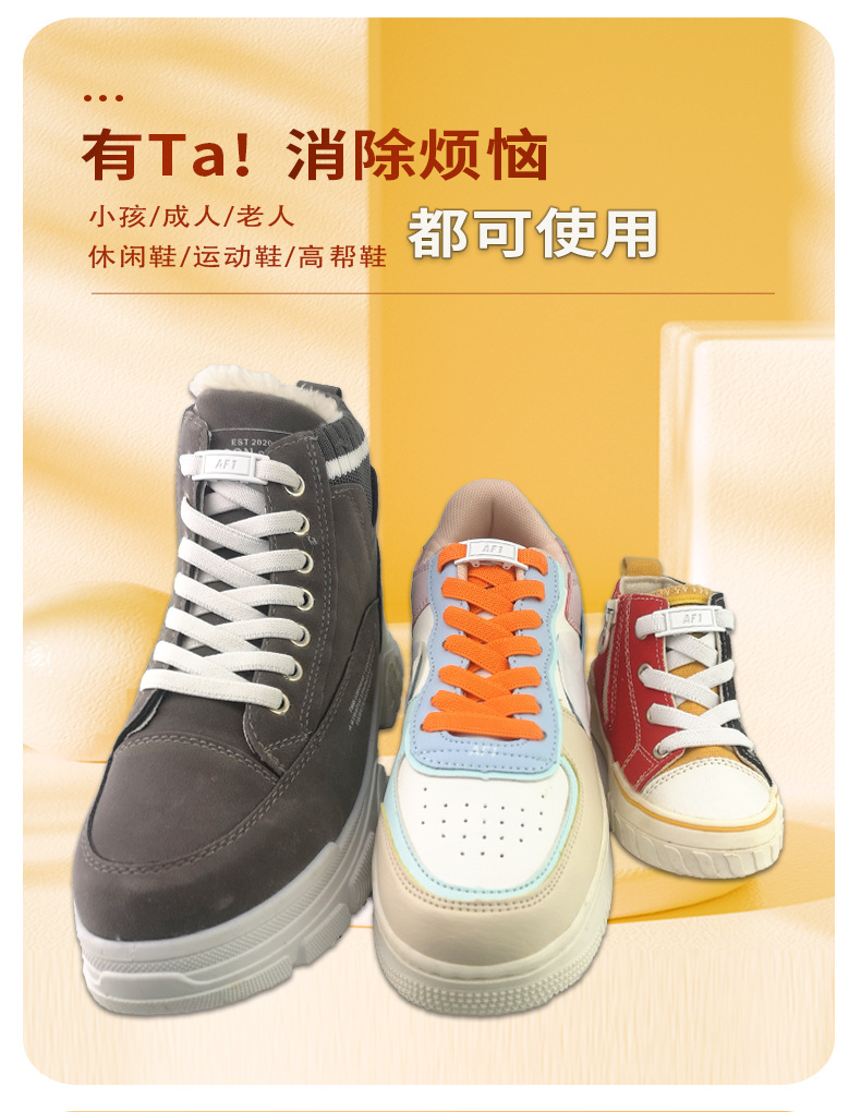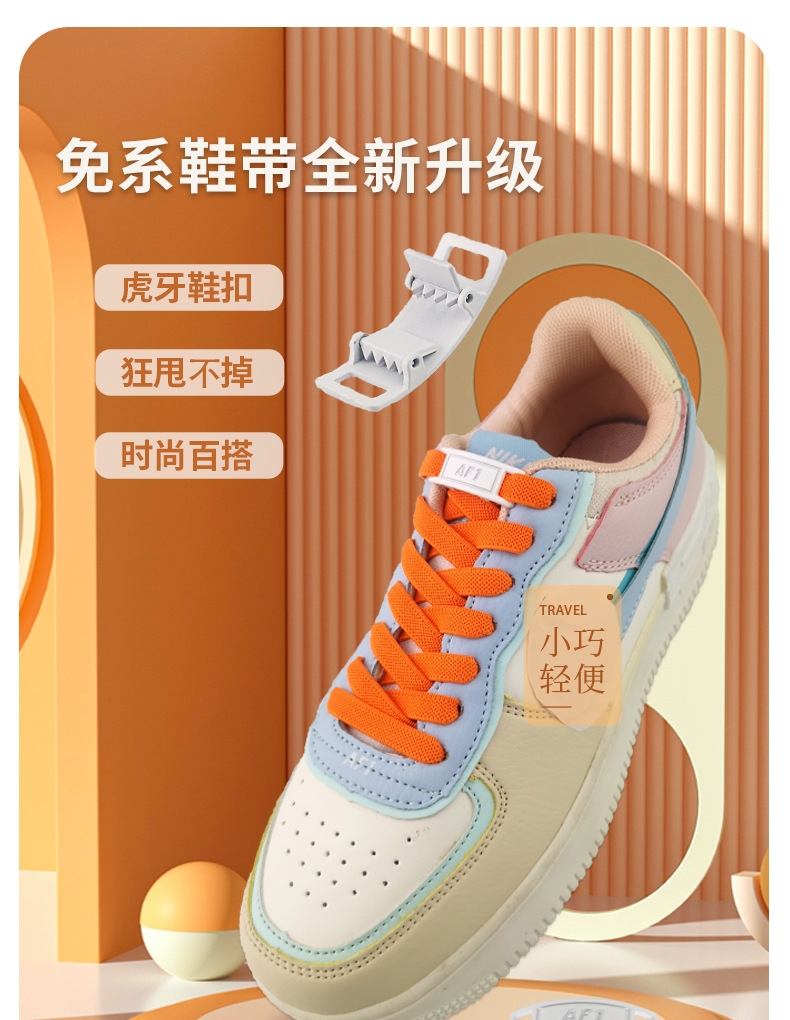 新款懒人鞋带批发虎牙曲面鞋扣弹力免绑免系松紧弹性弹力鞋配件