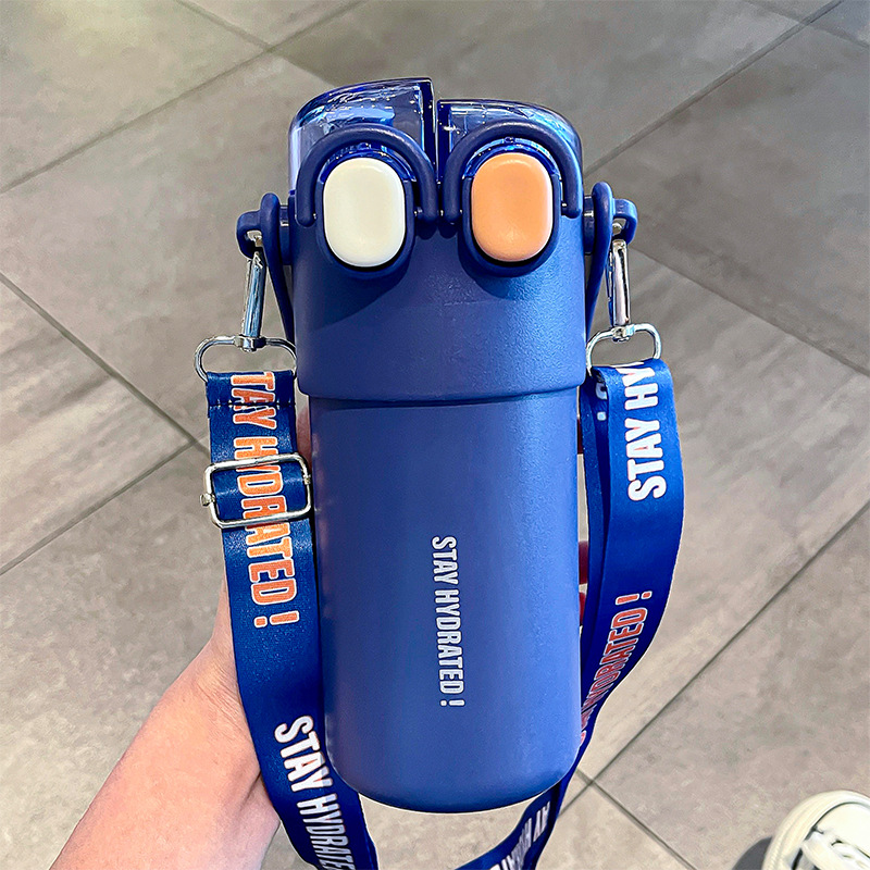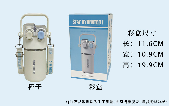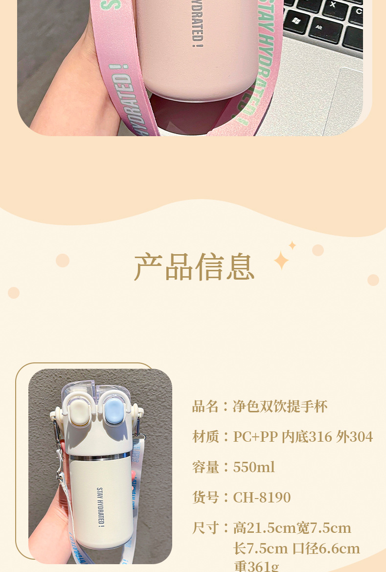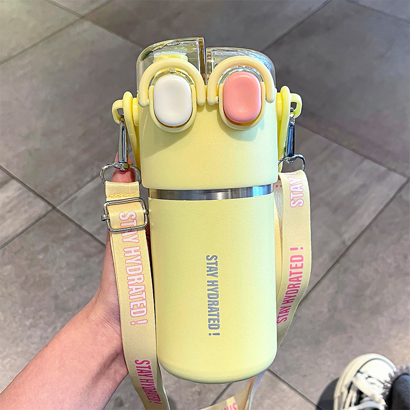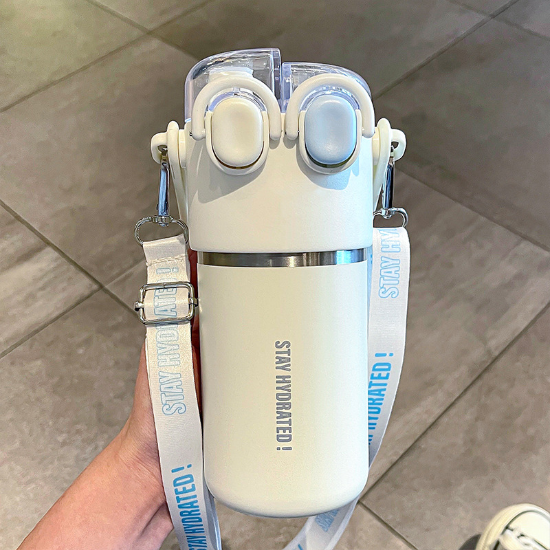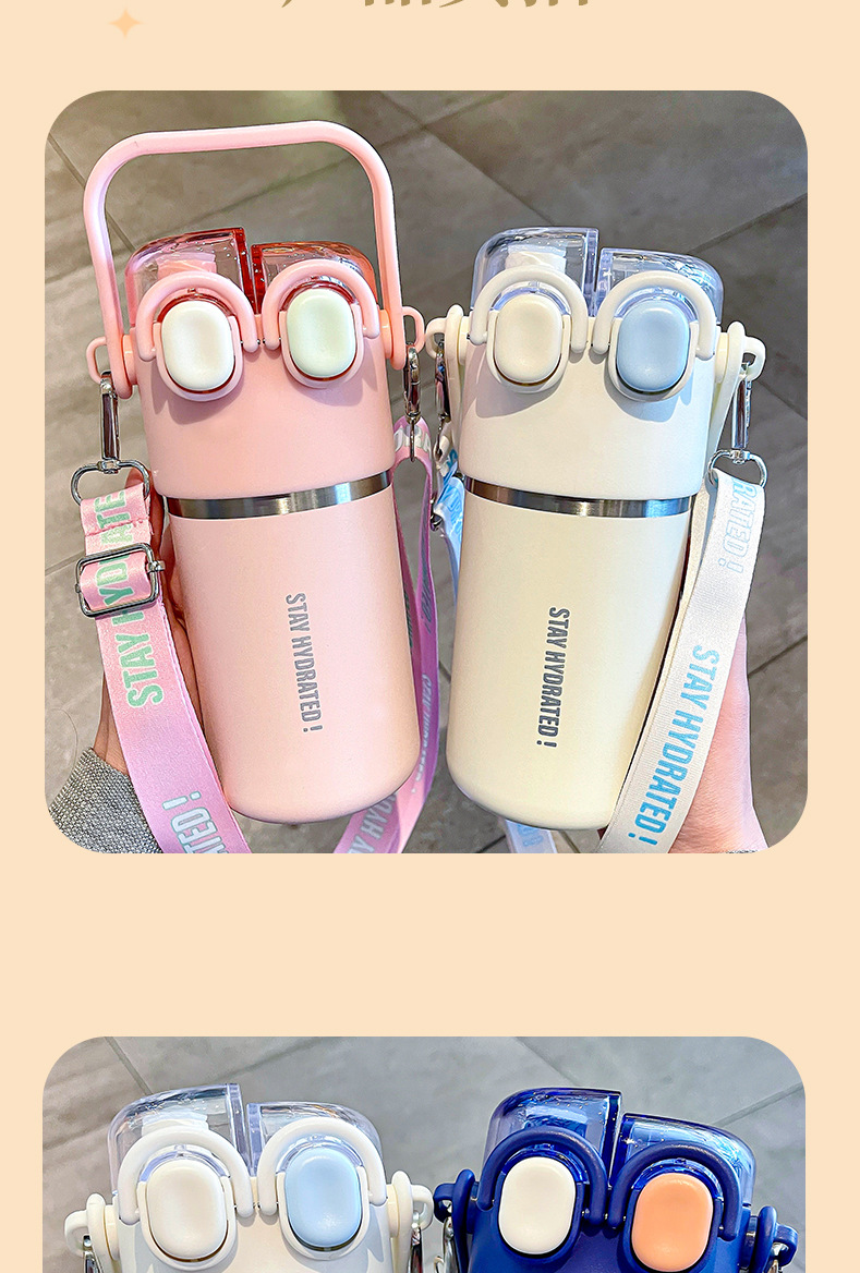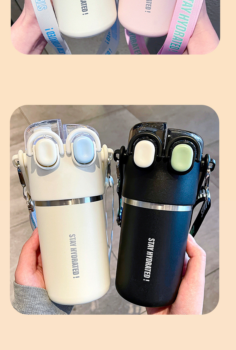 简约字母净色双饮提手杯大容量便携吸管锁扣饮水杯自带提绳保温杯