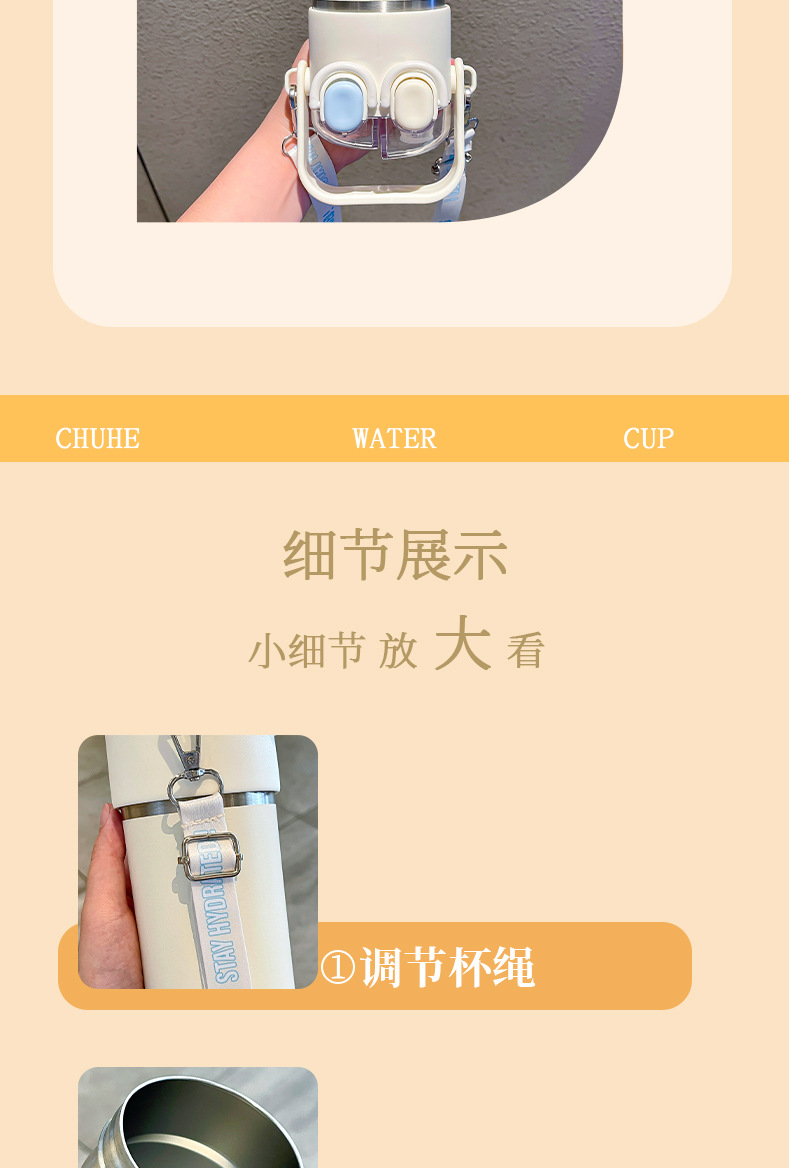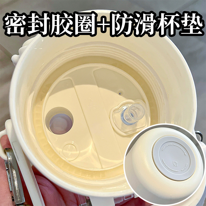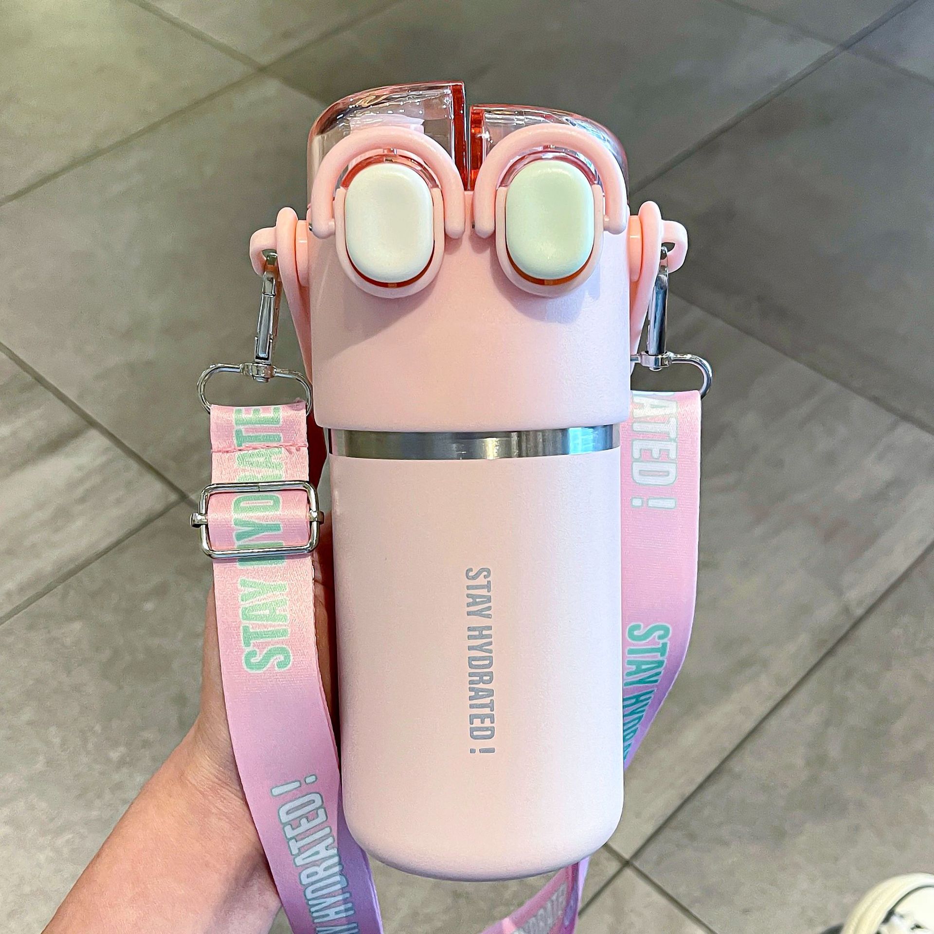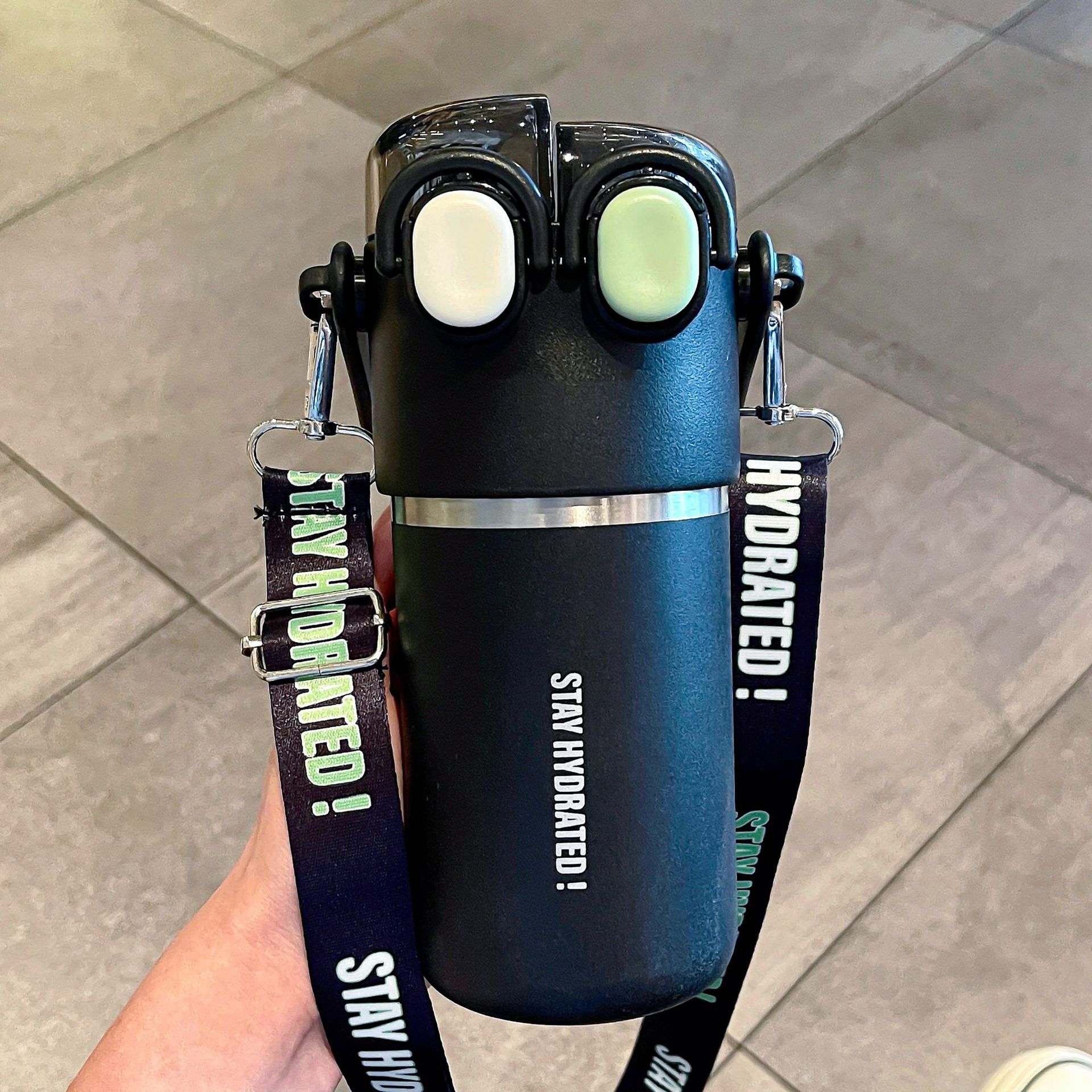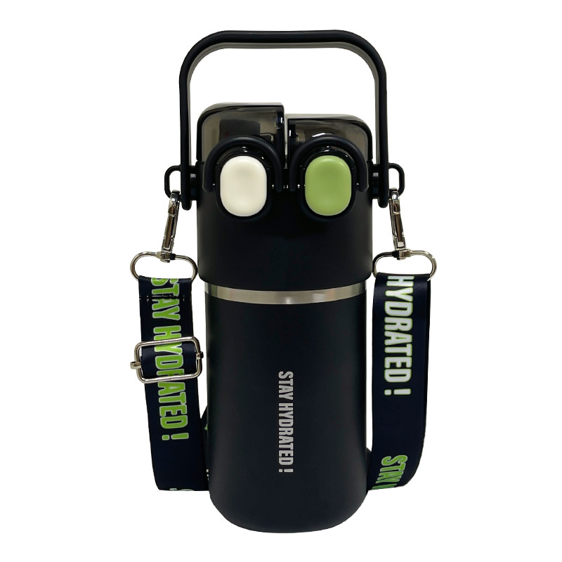 简约字母净色双饮提手杯大容量便携吸管锁扣饮水杯自带提绳保温杯