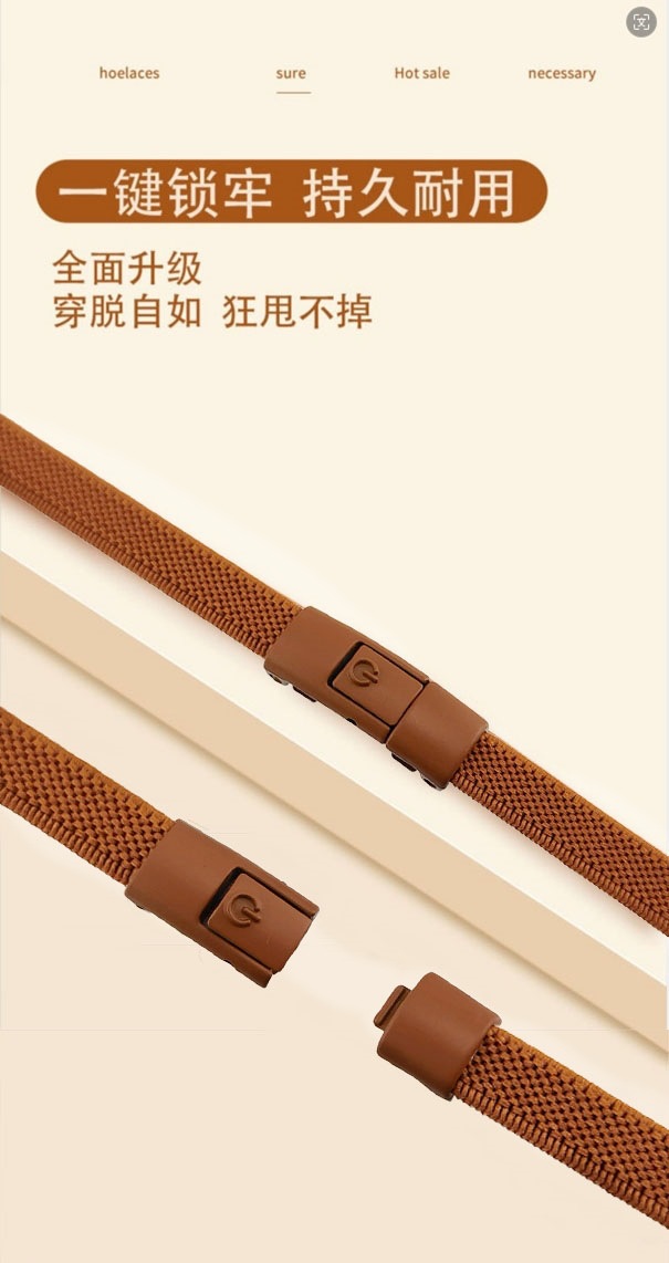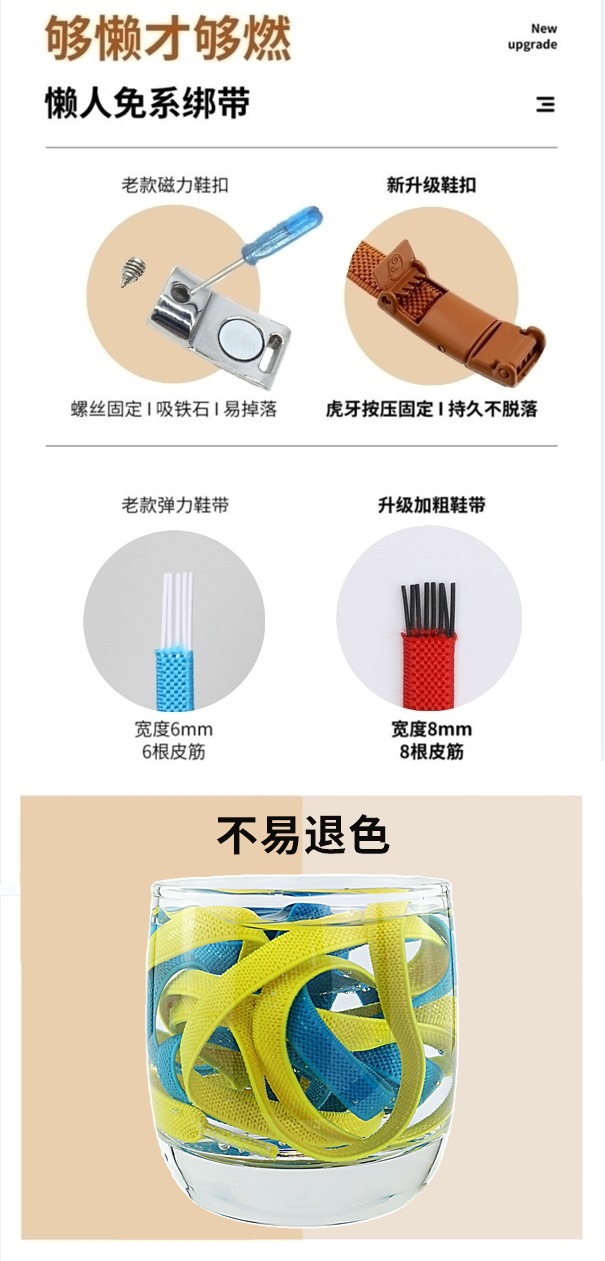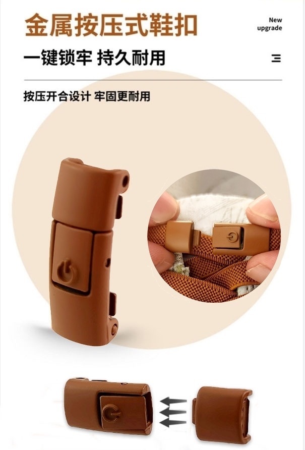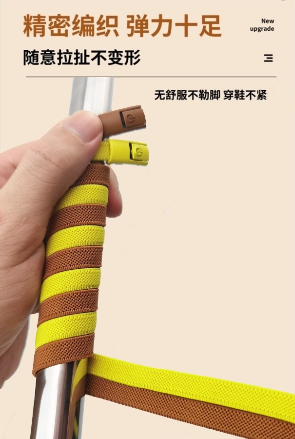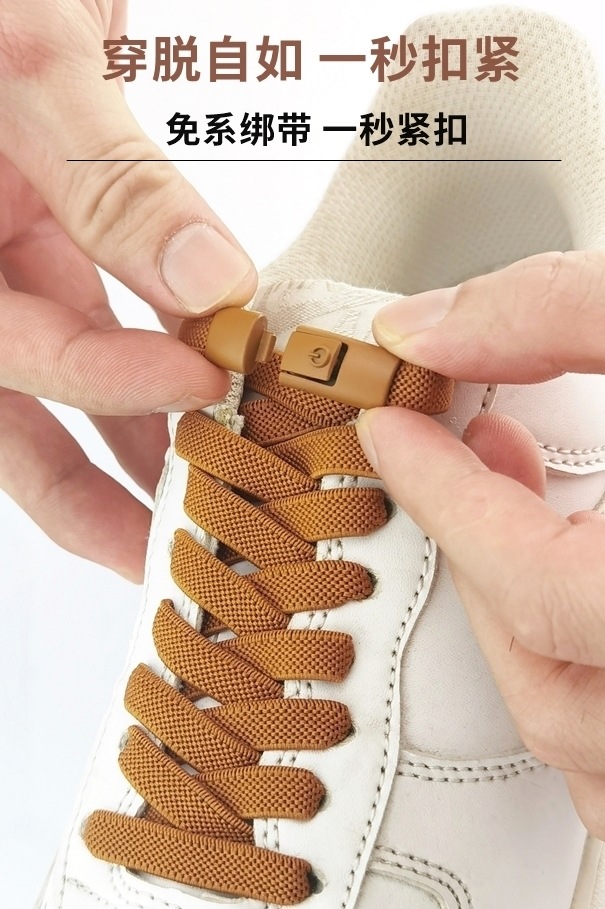 懒人鞋带彩色按压开关扣免绑弹力松紧8mm扁平绳免系固定神器