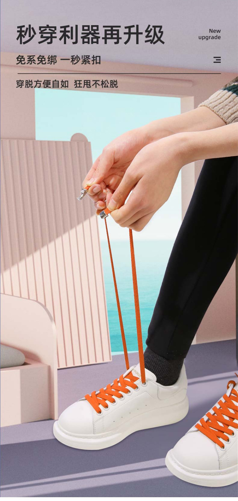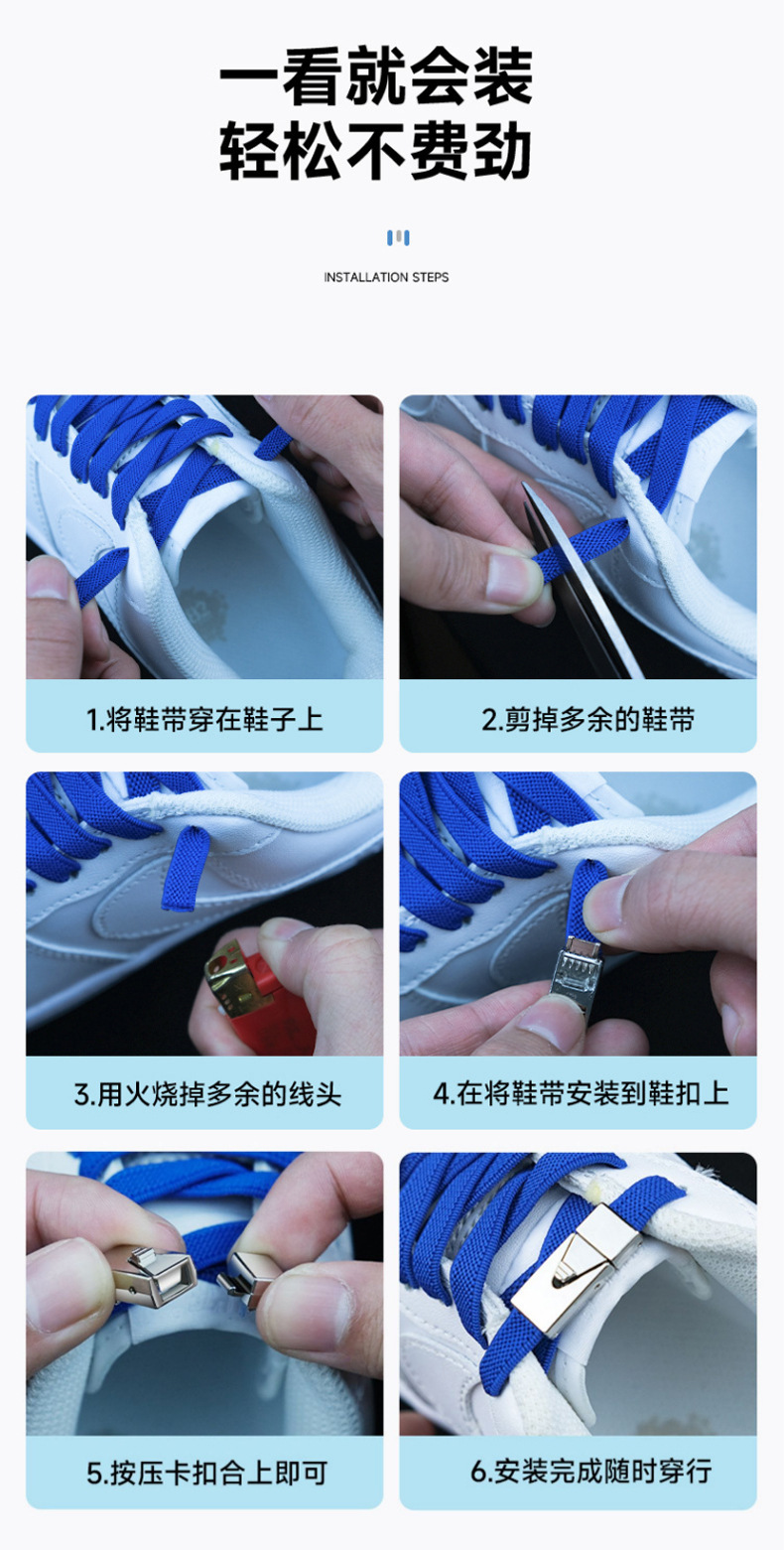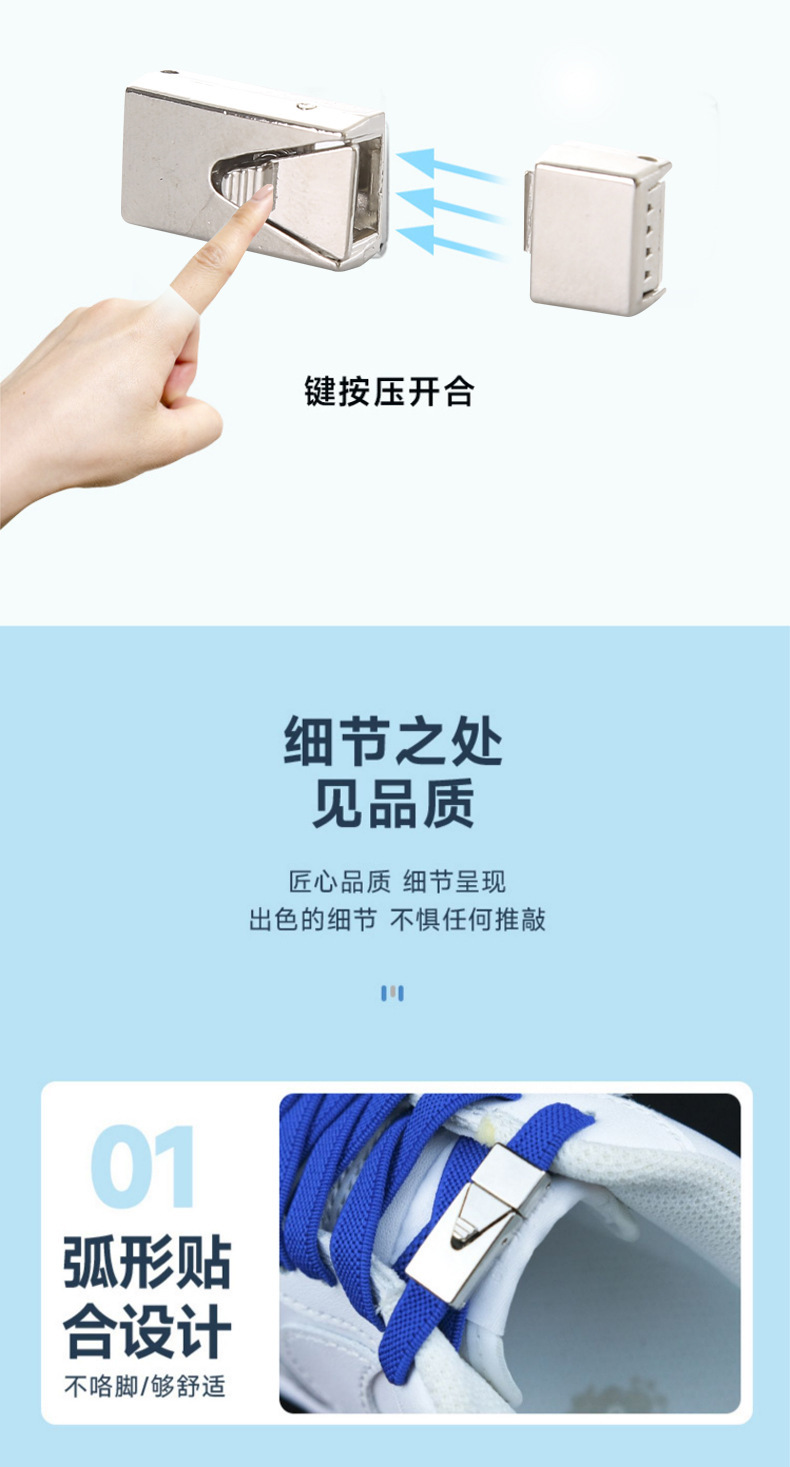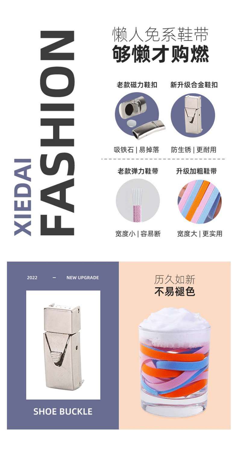 懒人鞋带免系弹力鞋带小白鞋松紧免绑卡扣