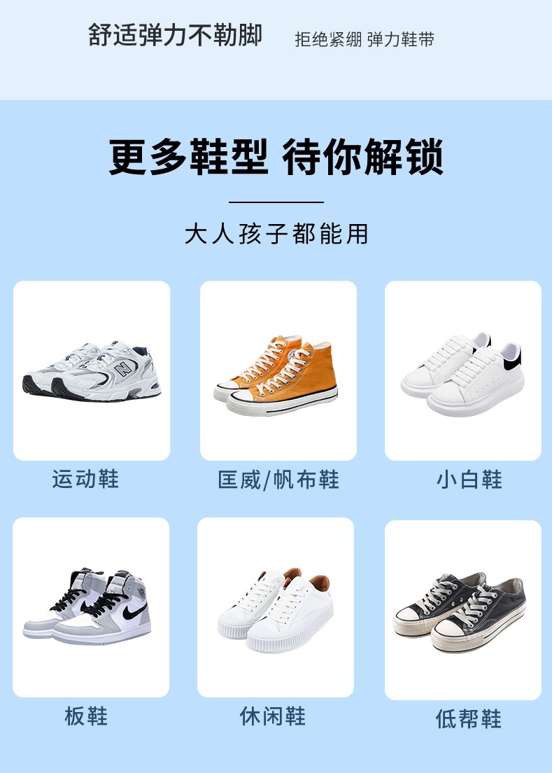 NICE鞋带扣弹力半圆带懒人免系鞋带弹性松紧免绑鞋带绳免系固定器