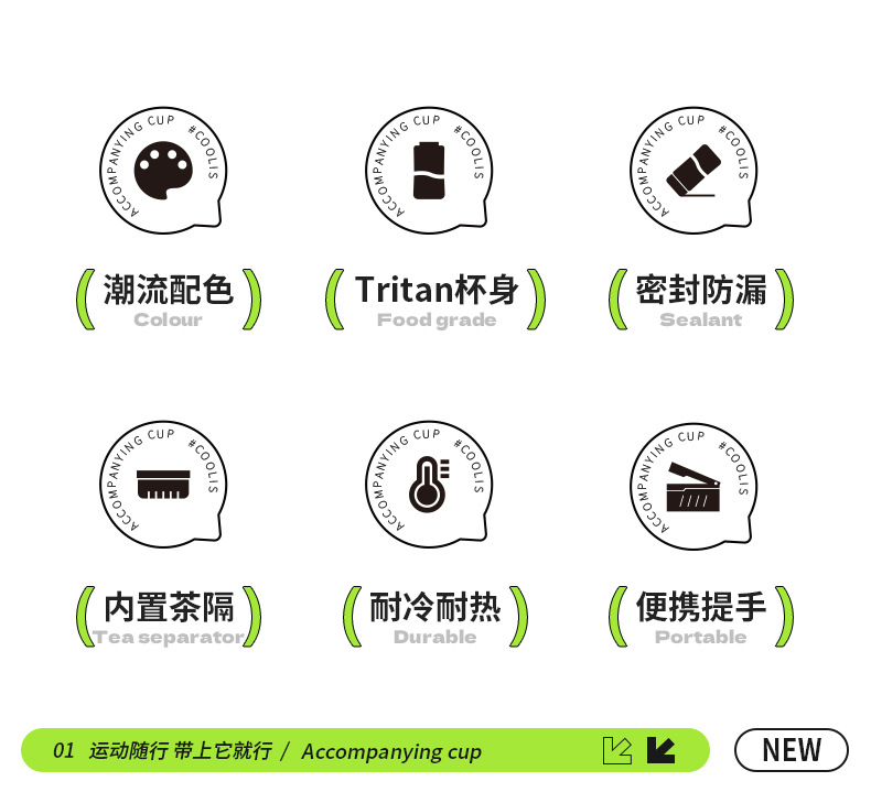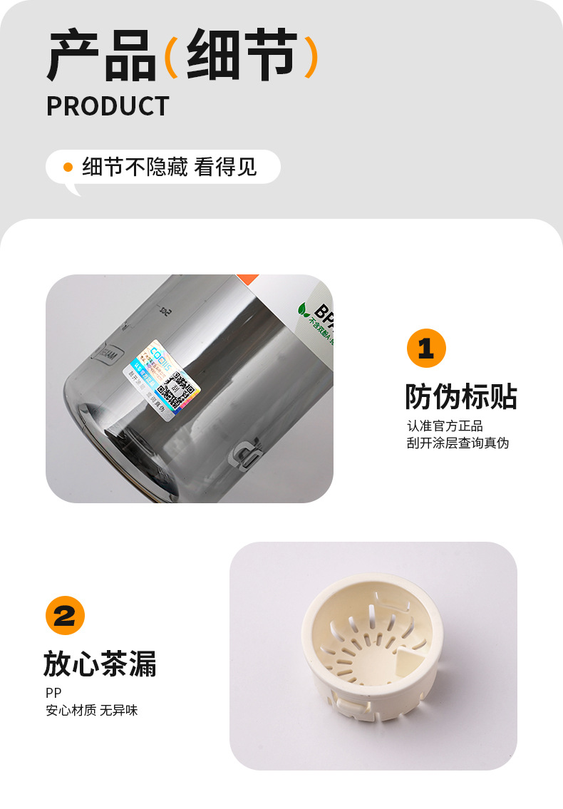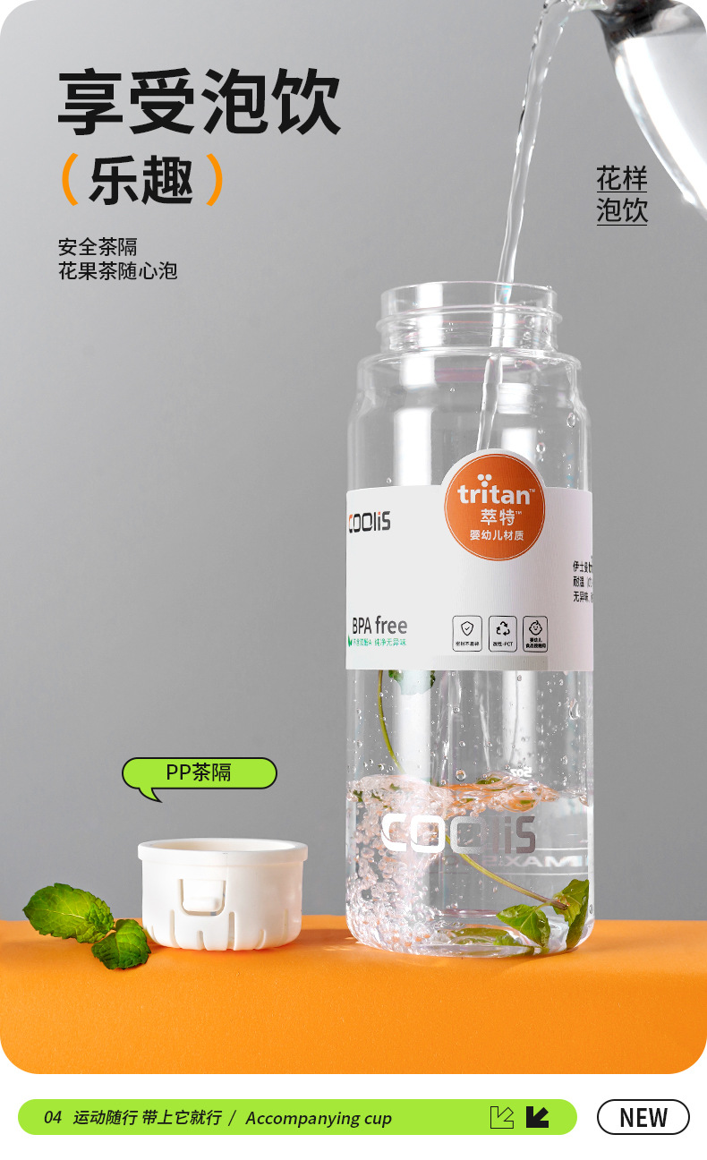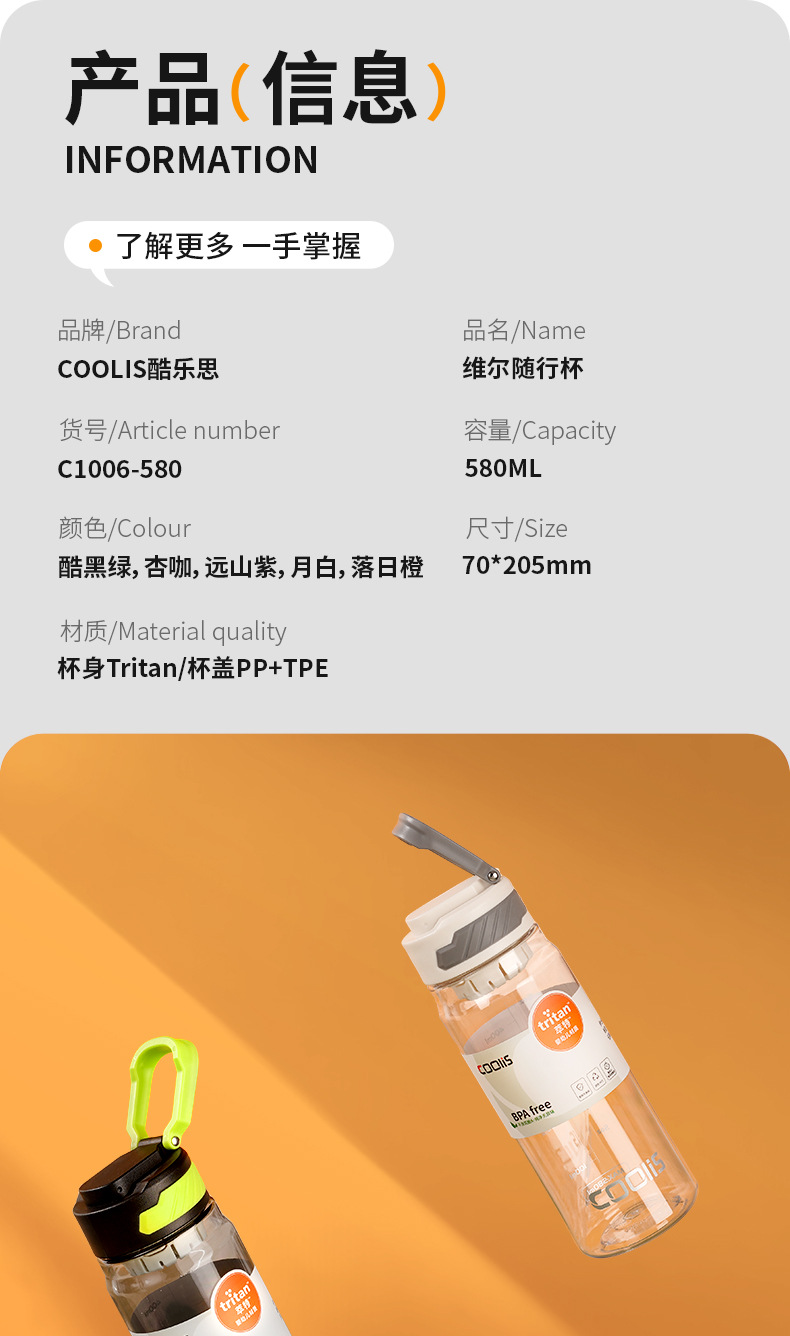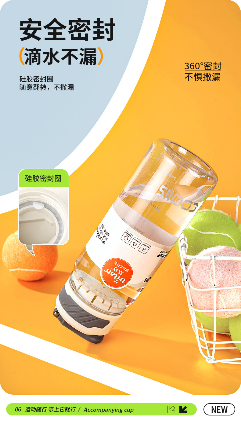 材质:杯身/Tritan、杯盖/PP、食品级硅胶