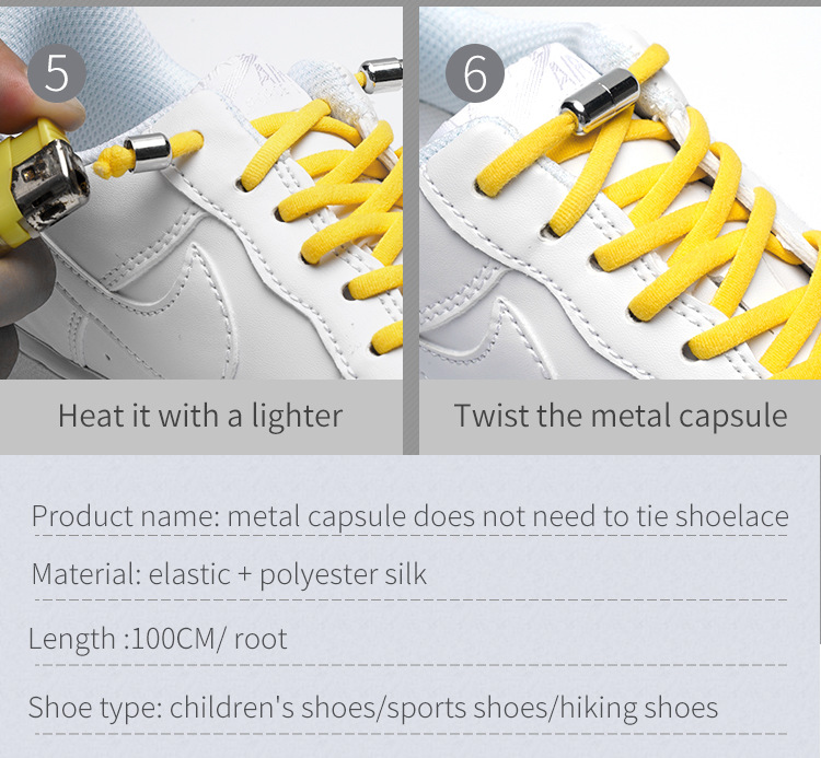 英文图片Elastic No Tie Shoelaces Lazy Metal Lock Laces Sneak