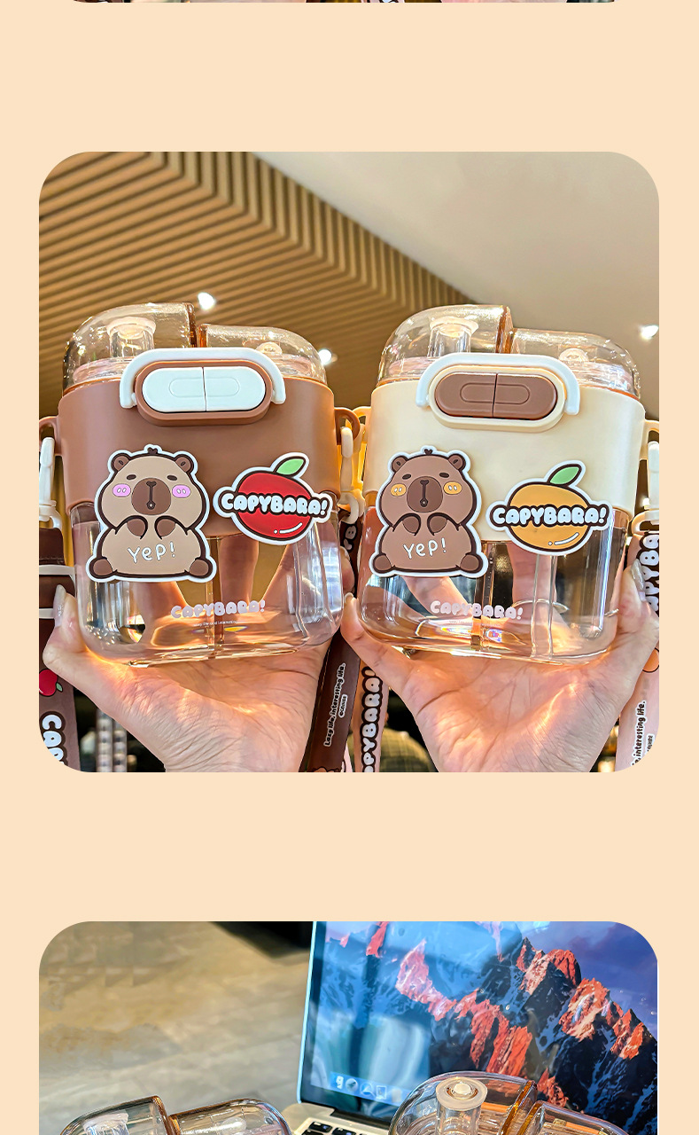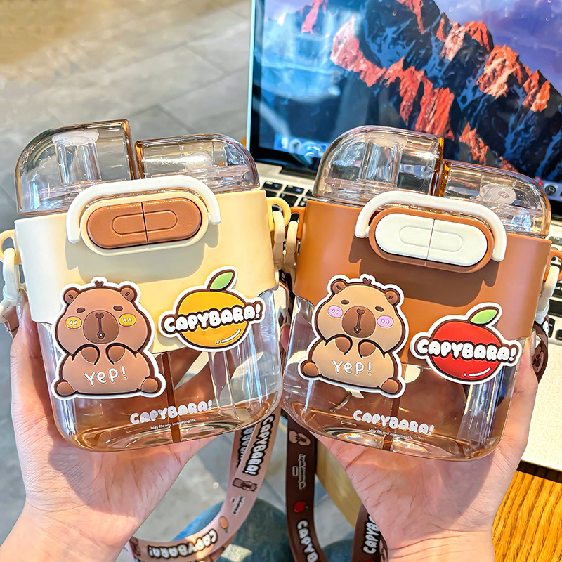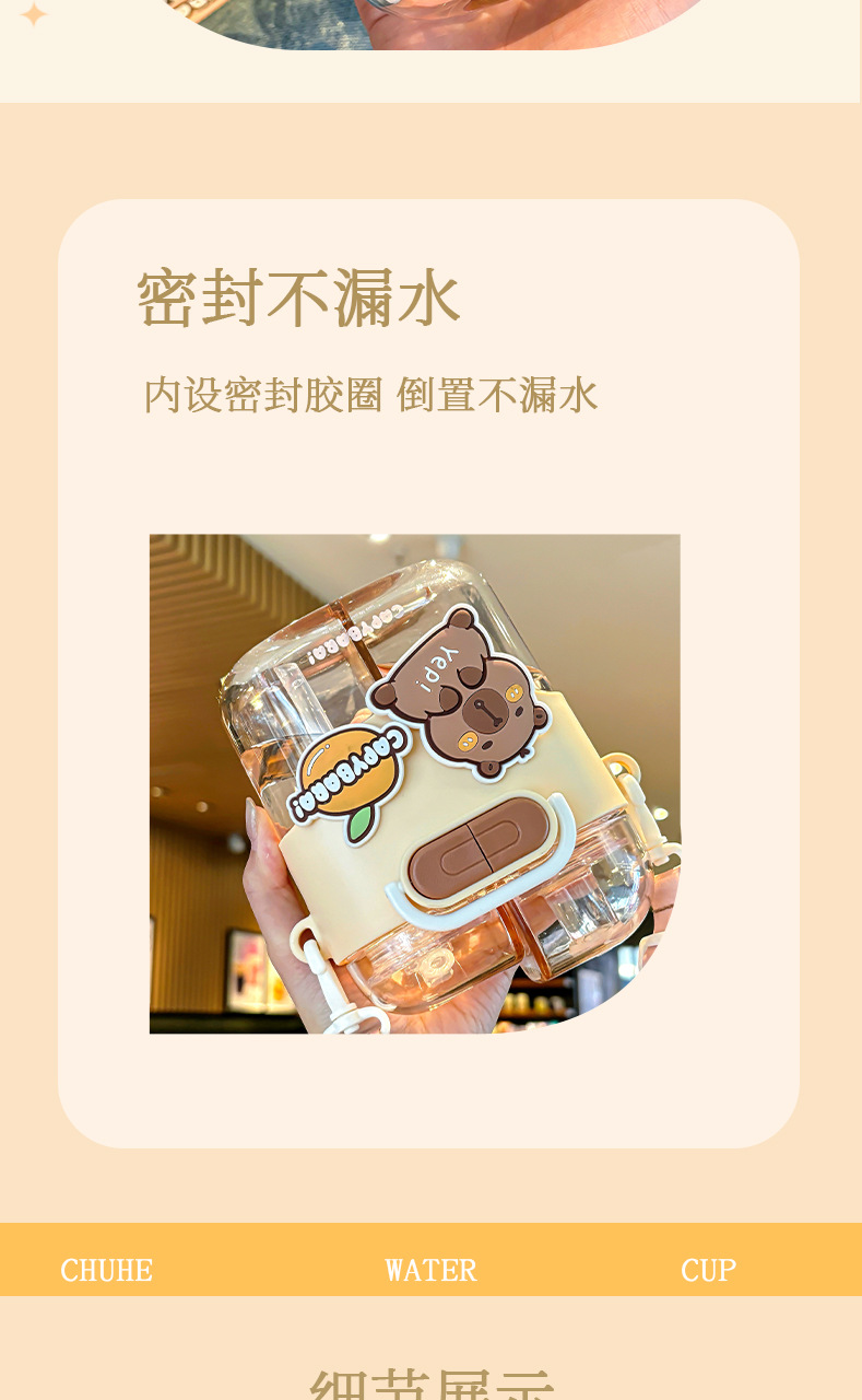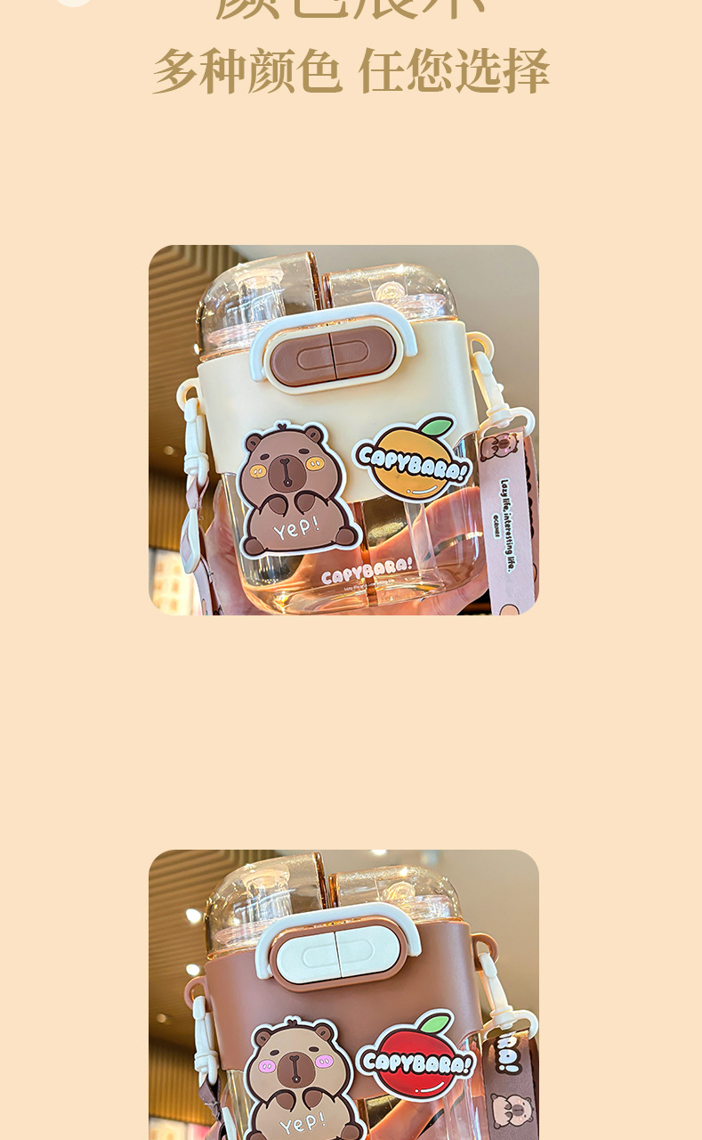 卡皮巴拉双仓杯可调节杯绳携带方便锁扣设计硅胶吸管大容量饮水杯