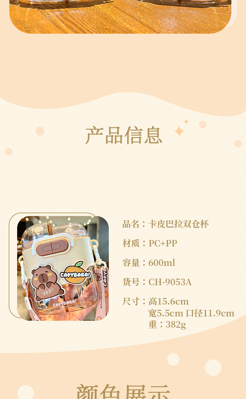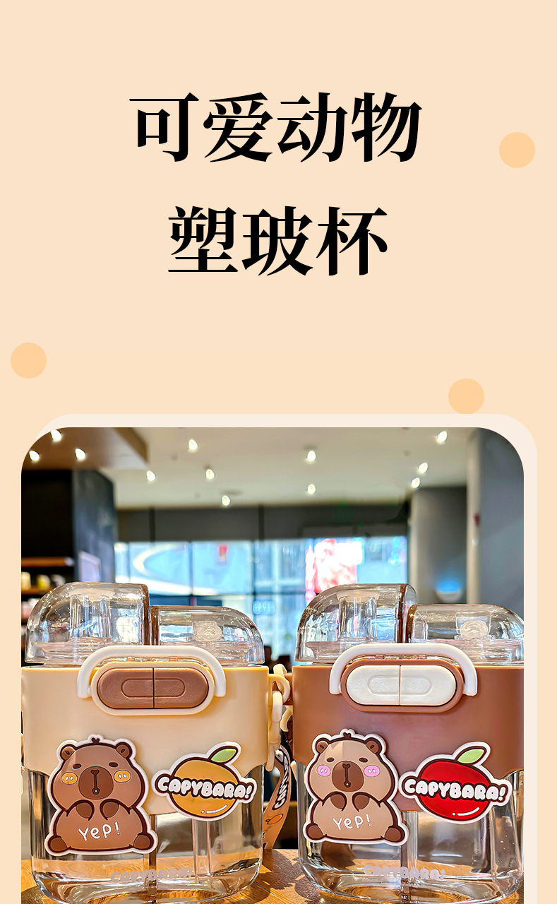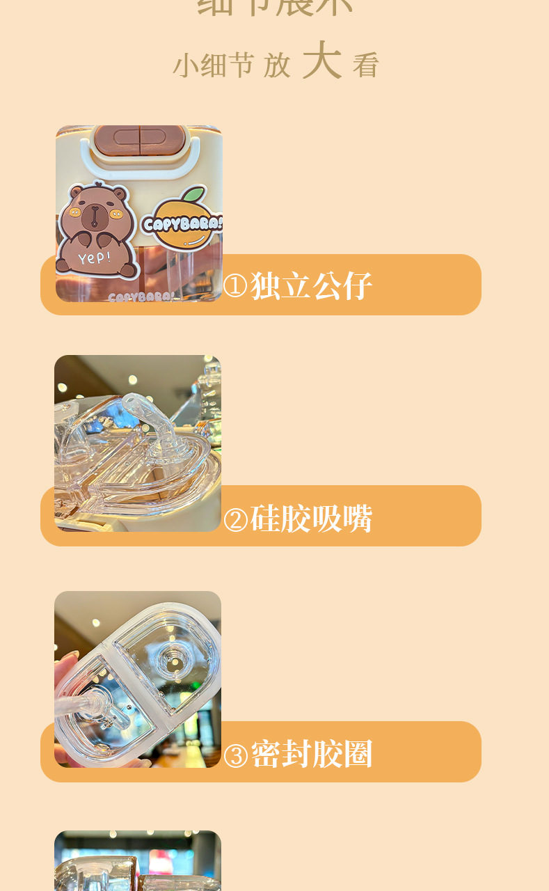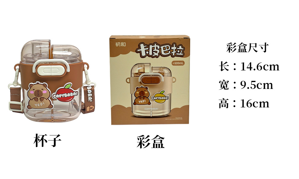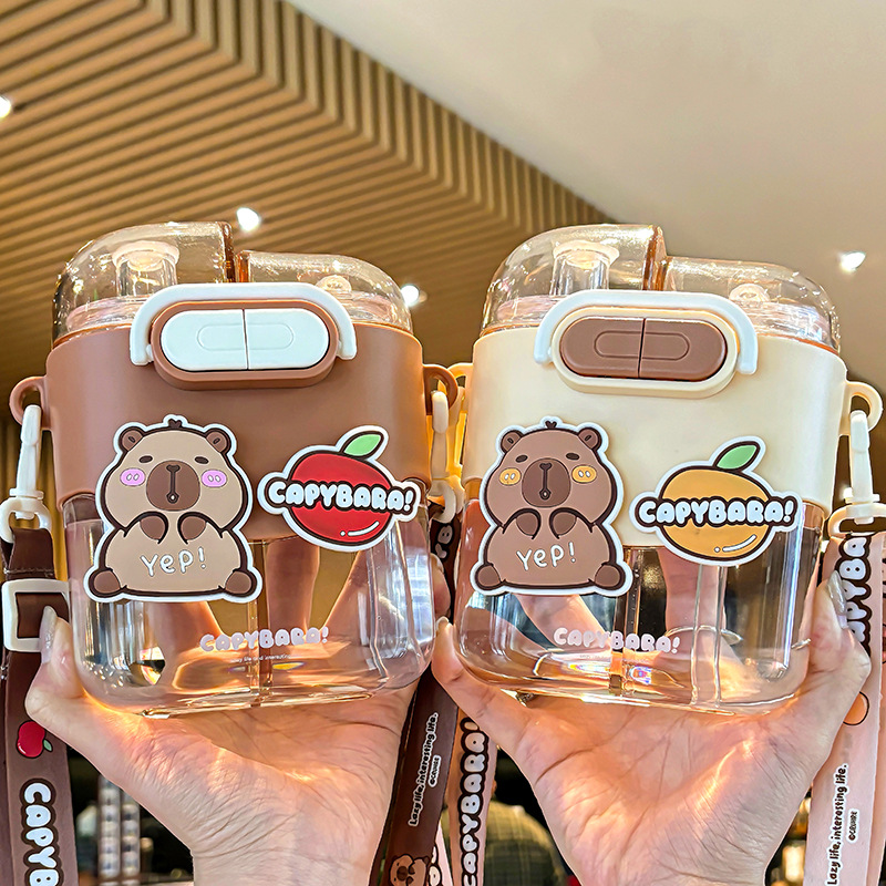 卡皮巴拉双仓杯可调节杯绳携带方便锁扣设计硅胶吸管大容量饮水杯