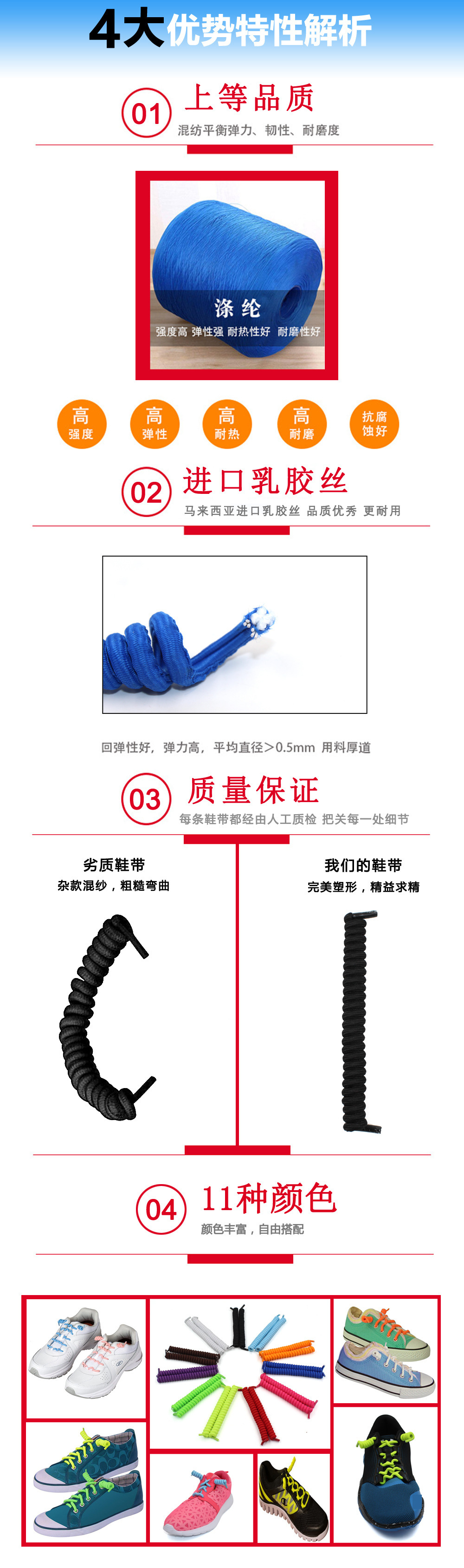 免系弹簧鞋带懒人休闲用品弹力免系免绑绳圆鞋带运动鞋带厂家批发