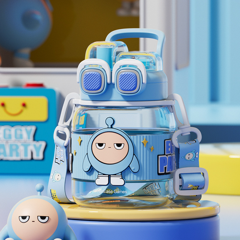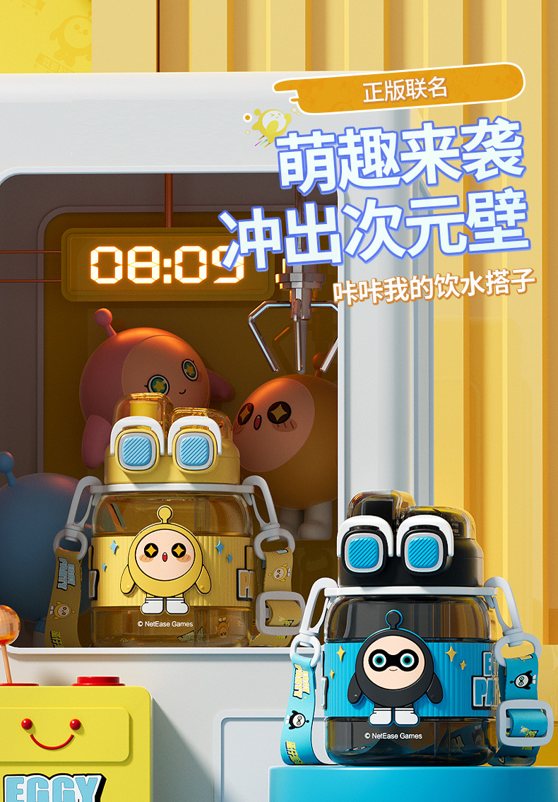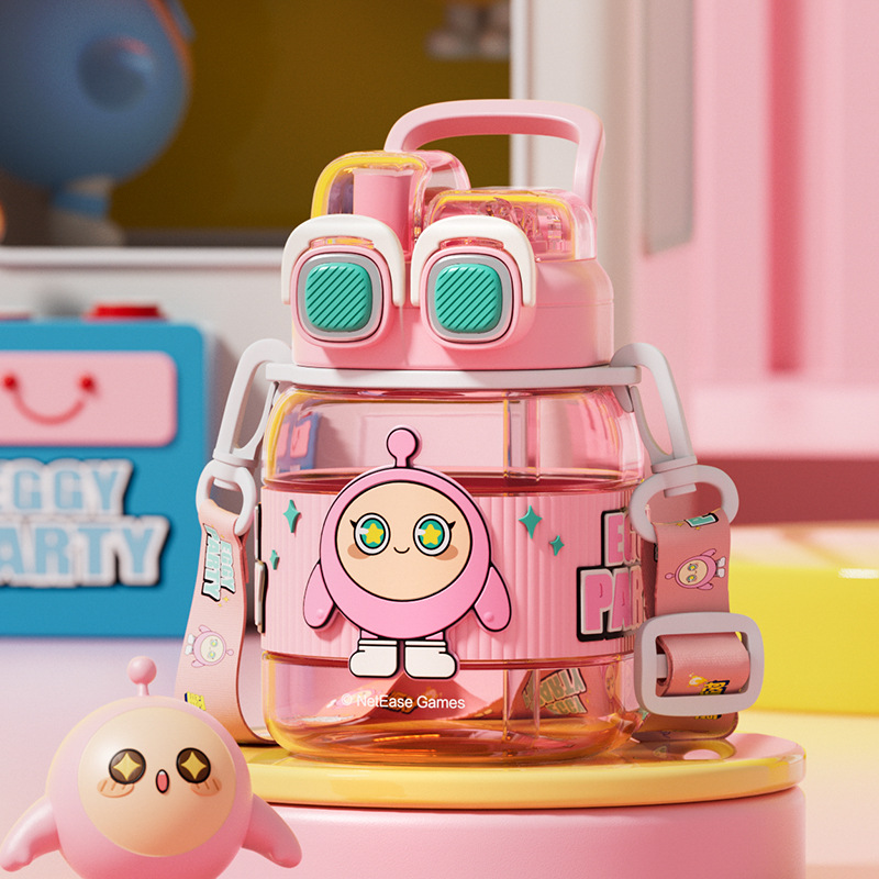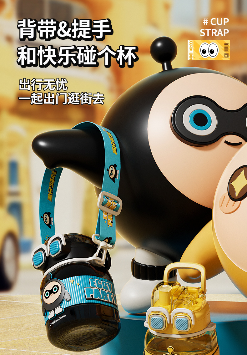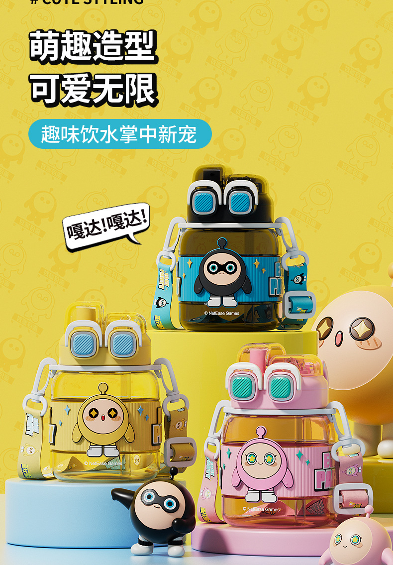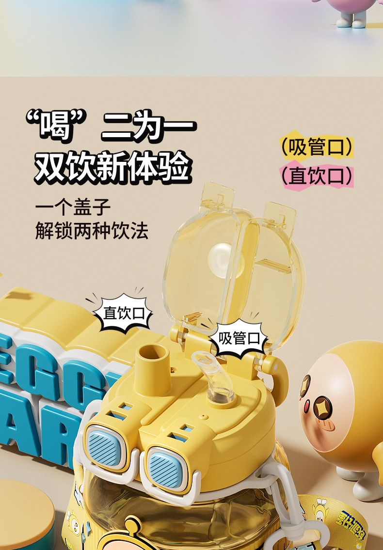 卡通大容量水杯便携饮水壶 带背带吸管杯随身直饮杯潮流新款杯子