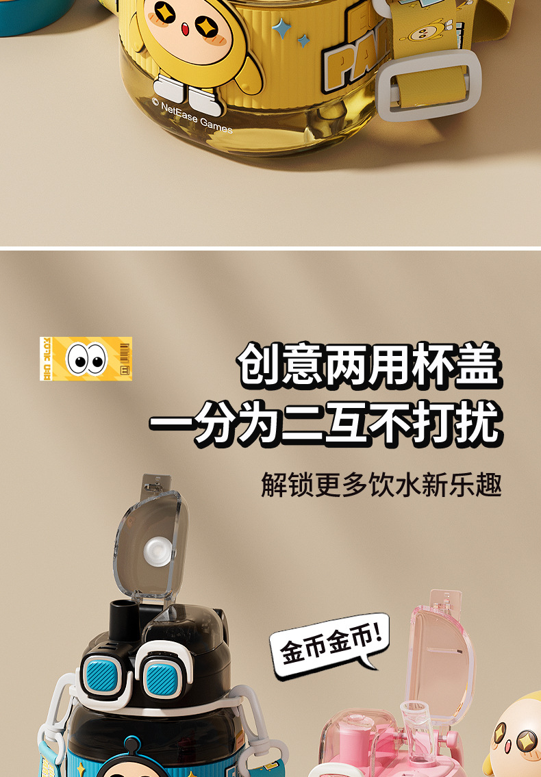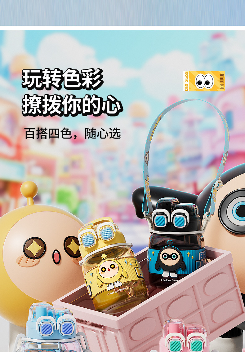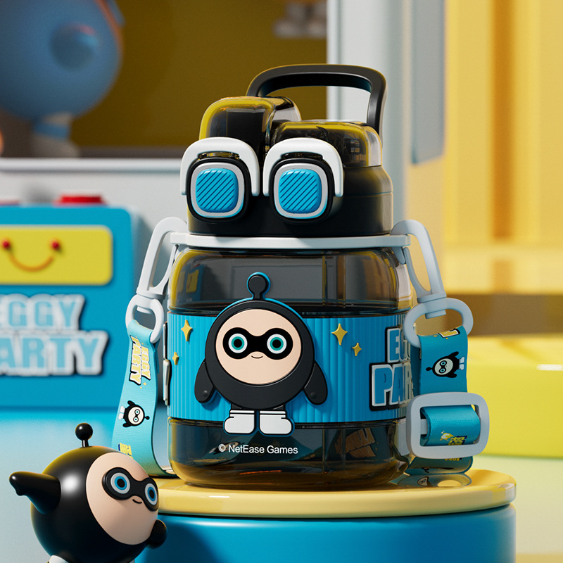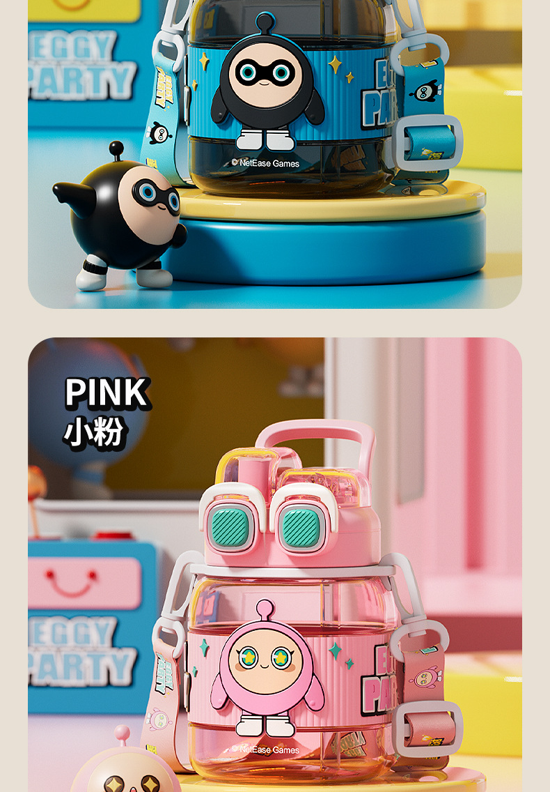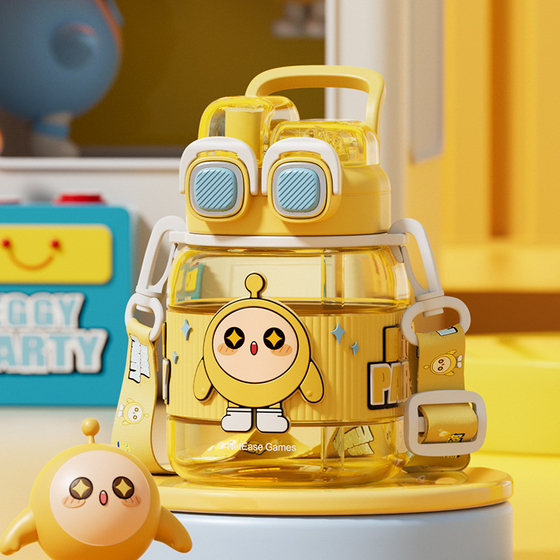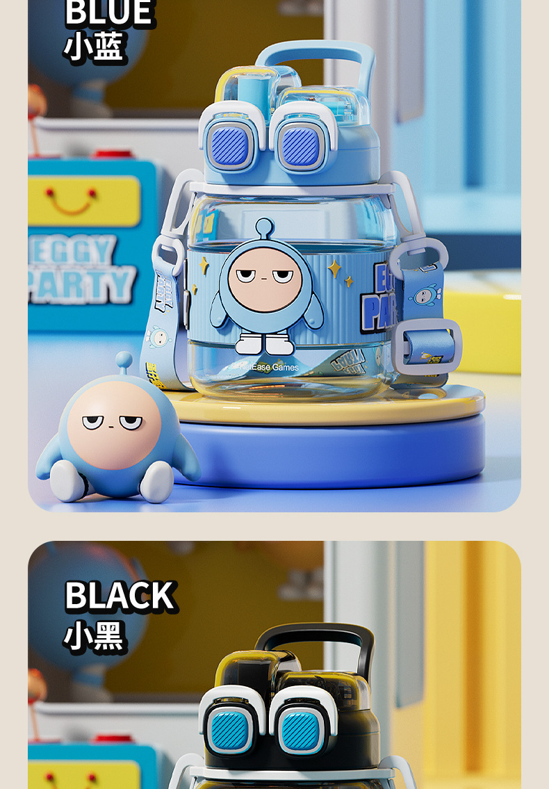 卡通大容量水杯便携饮水壶 带背带吸管杯随身直饮杯潮流新款杯子
