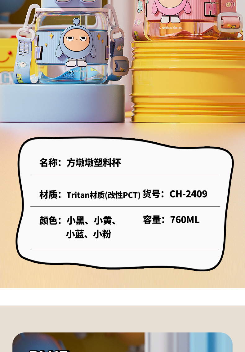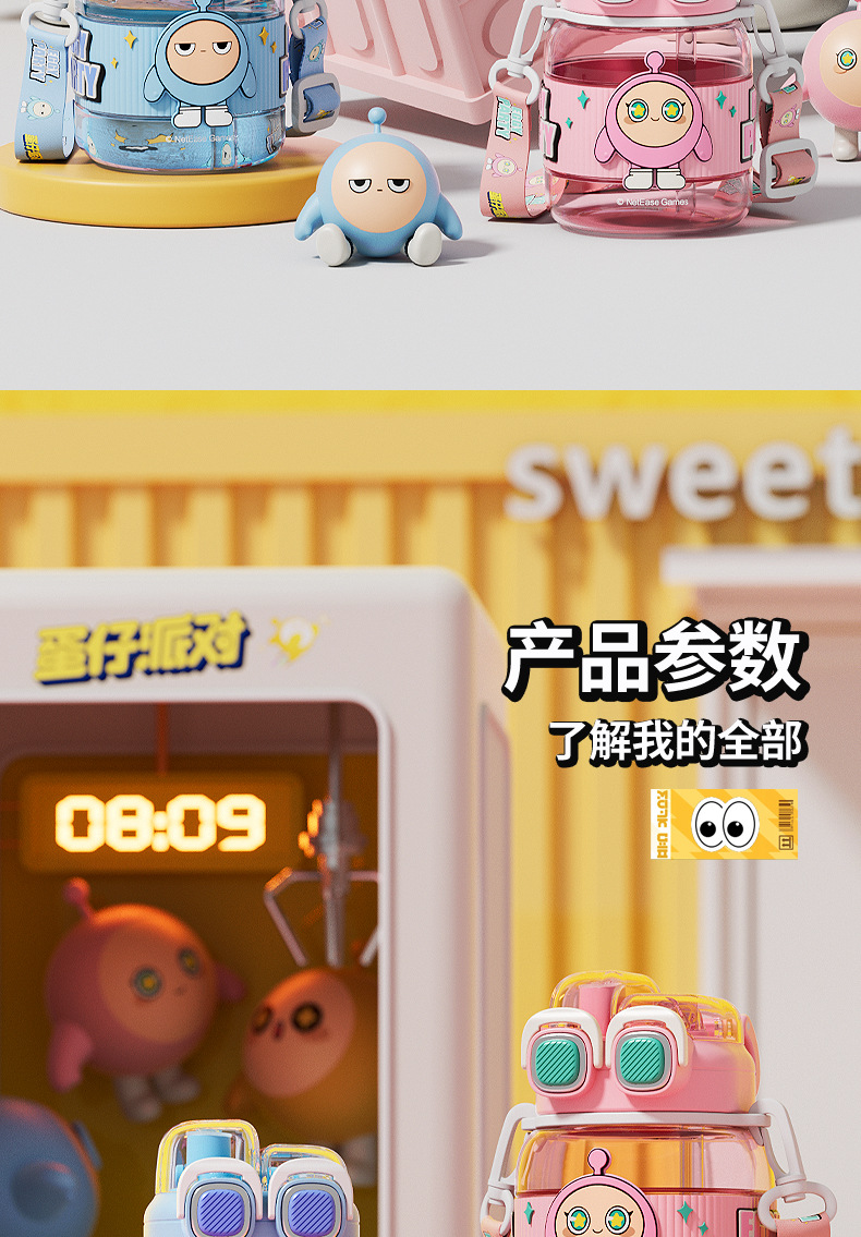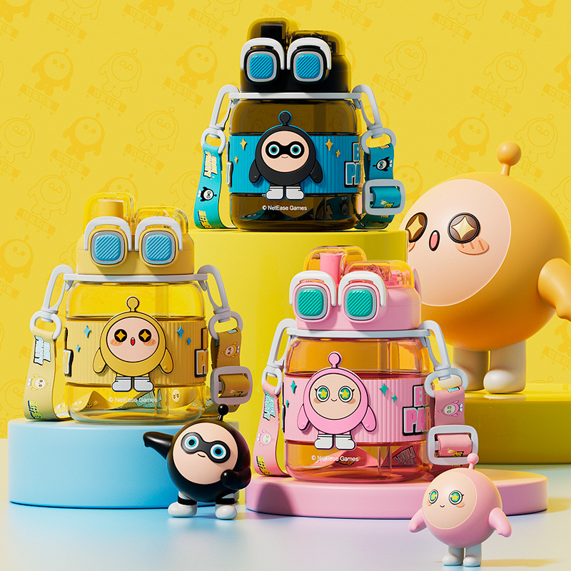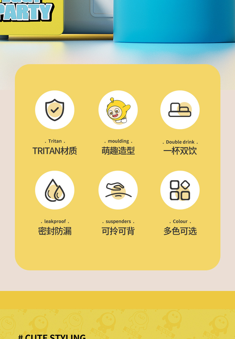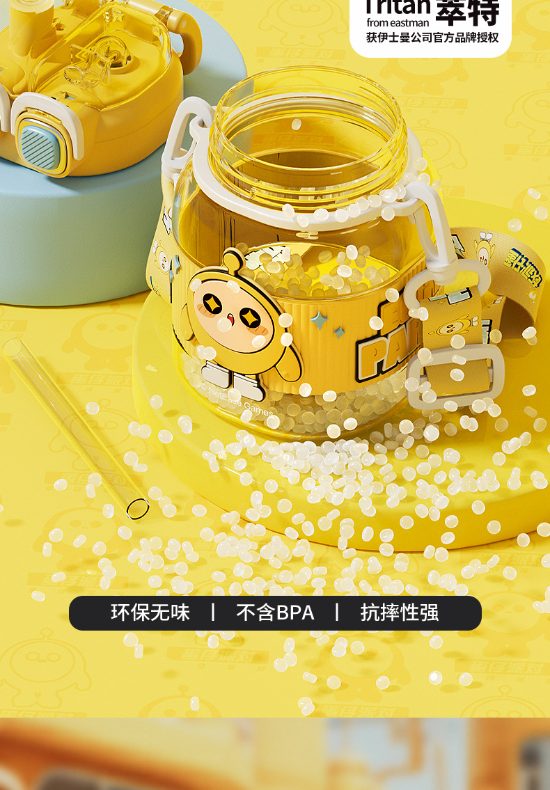 卡通大容量水杯便携饮水壶 带背带吸管杯随身直饮杯潮流新款杯子
