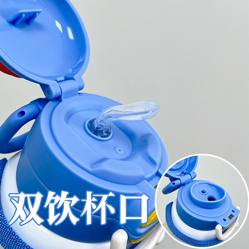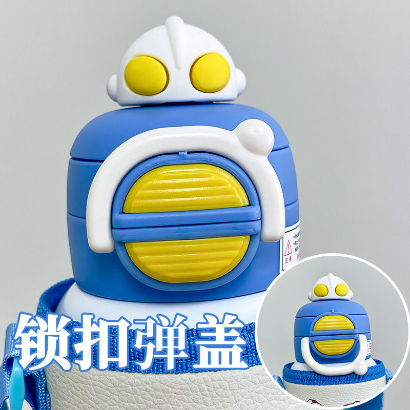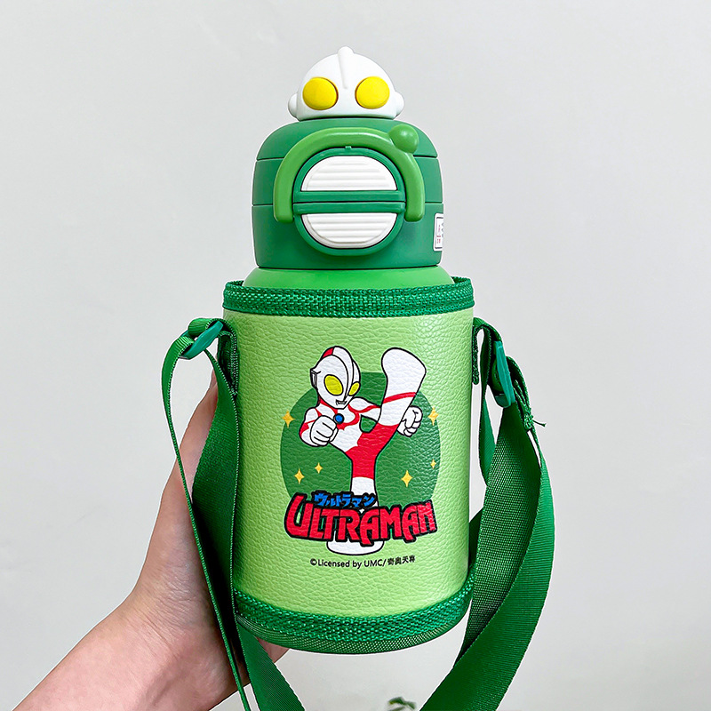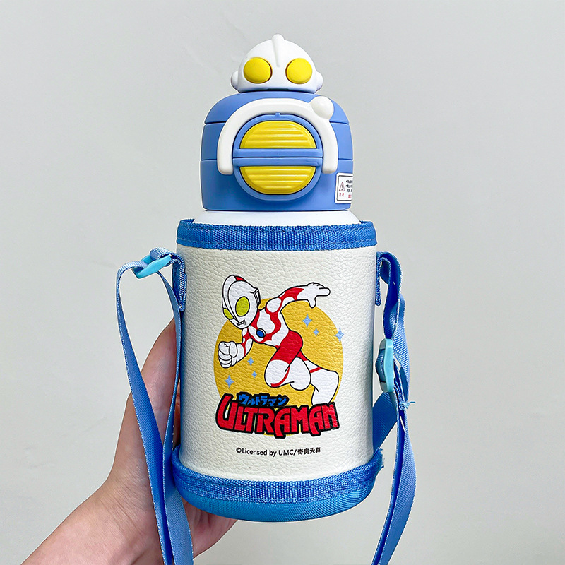奥特曼儿童保温杯带杯套吸管杯男孩幼儿园上学水杯便携弹盖双饮杯