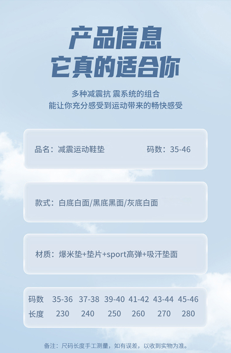 运动鞋垫高弹力减震吸汗防臭舒适BOOST篮球鞋垫zoom久站不累神器