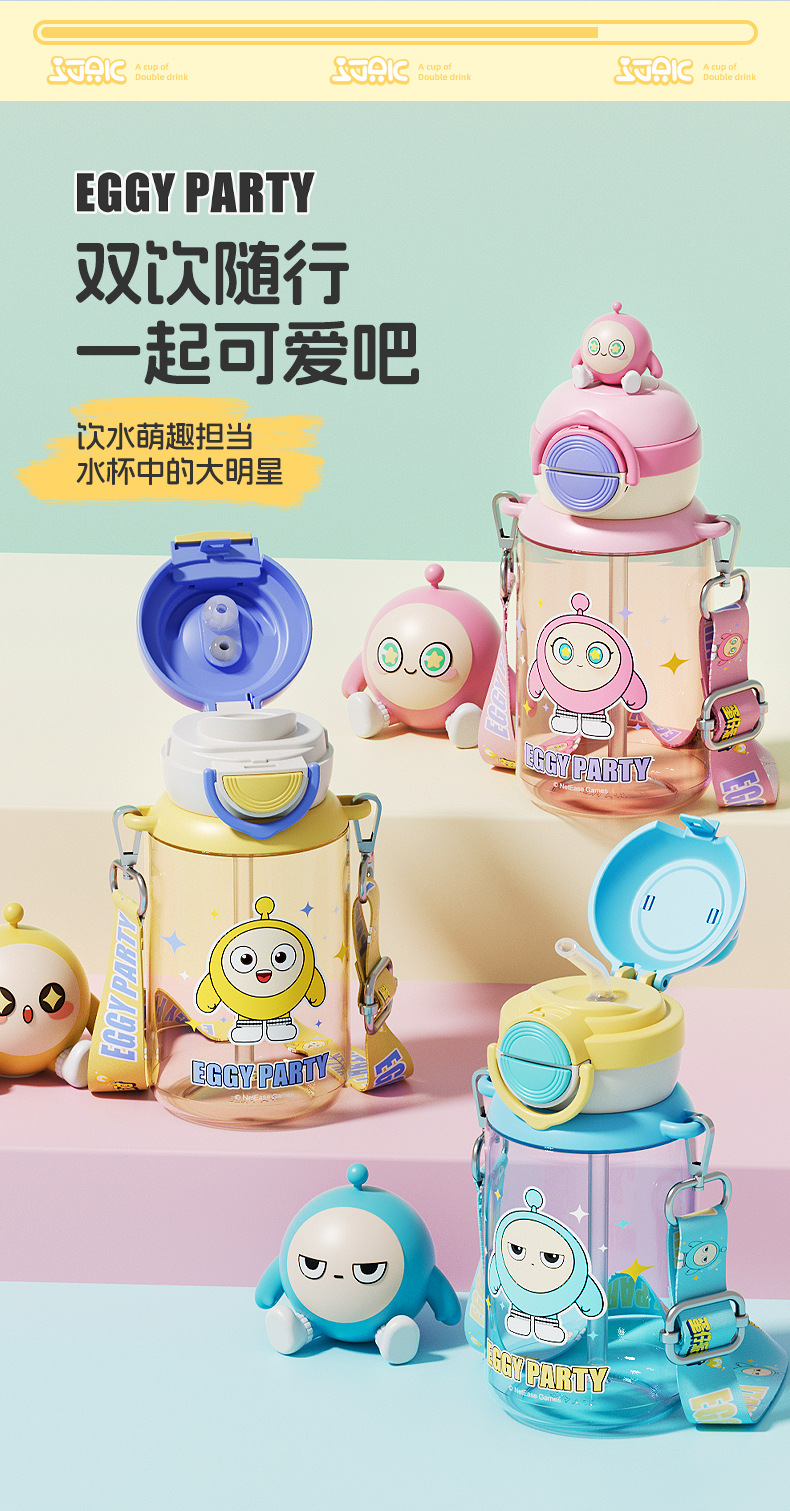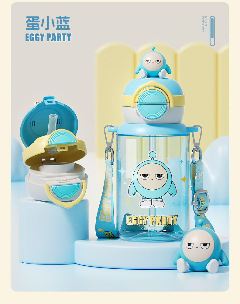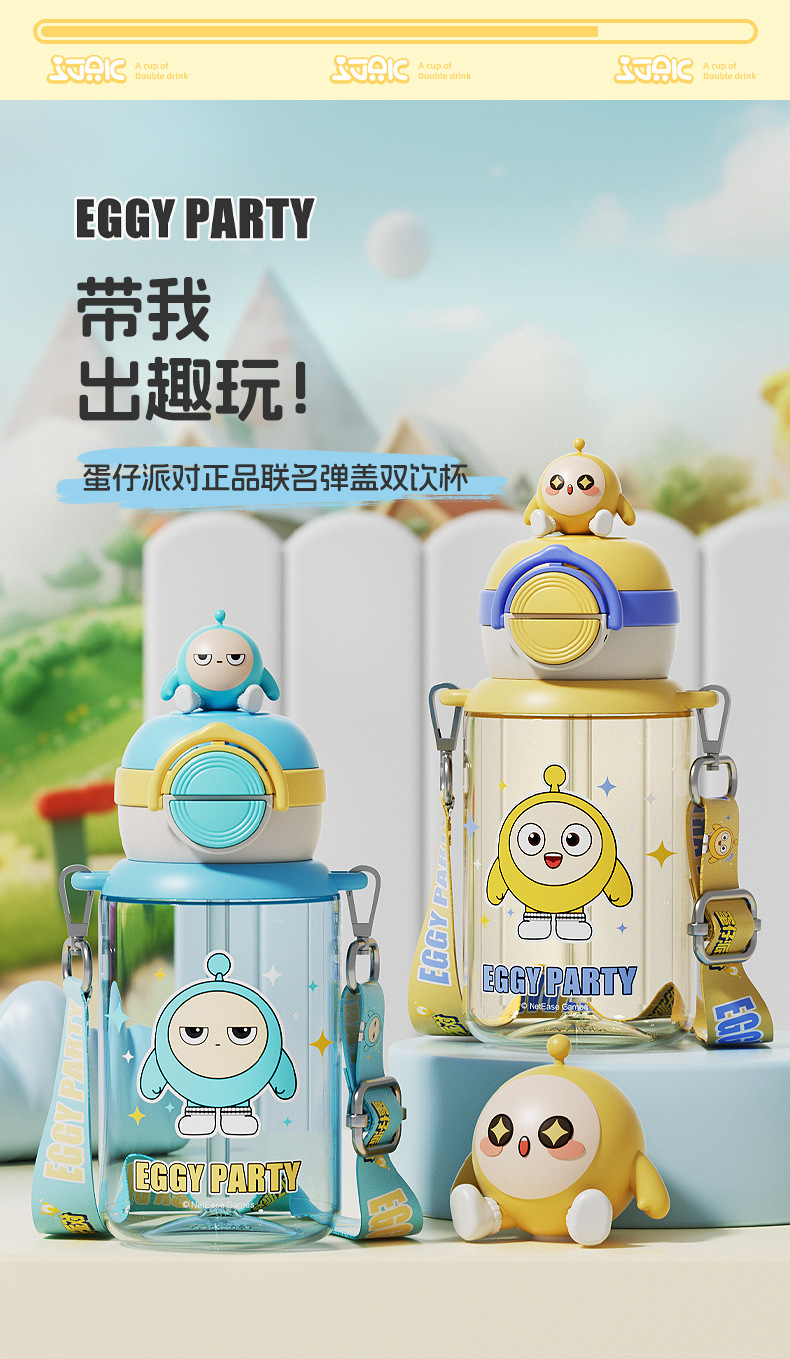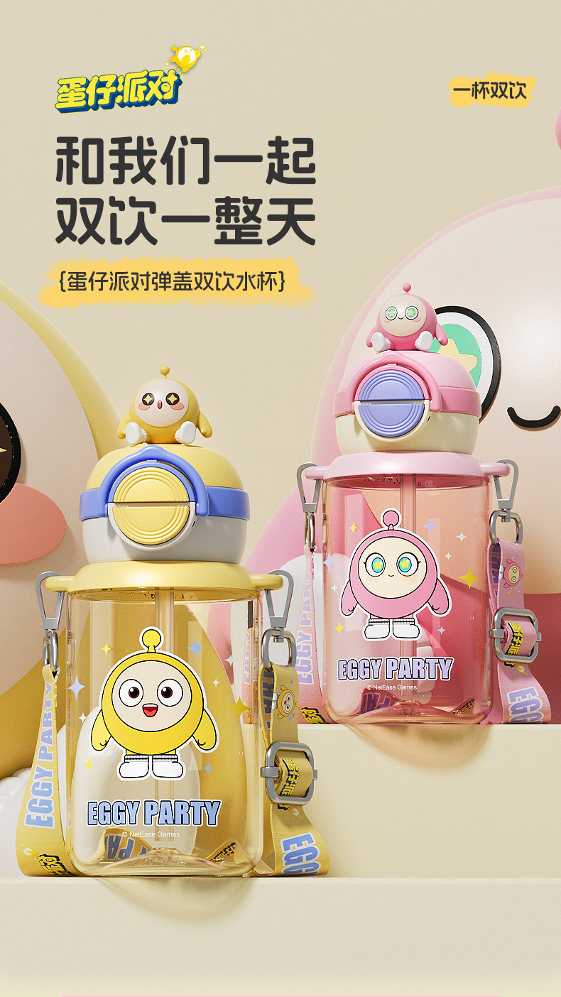 蛋仔派对弹盖公仔塑料杯独立公仔自带可调节杯绳一杯双饮水杯