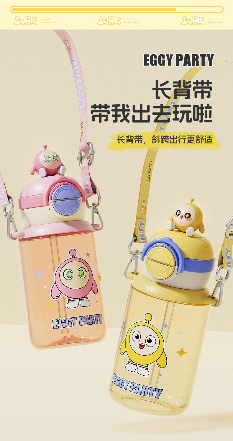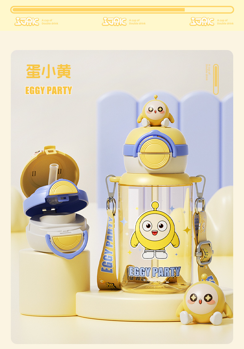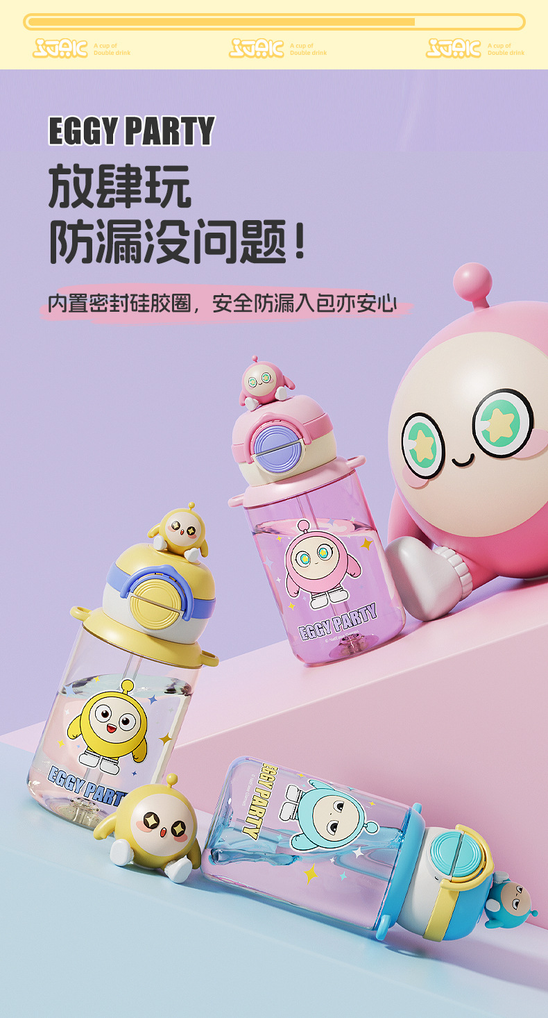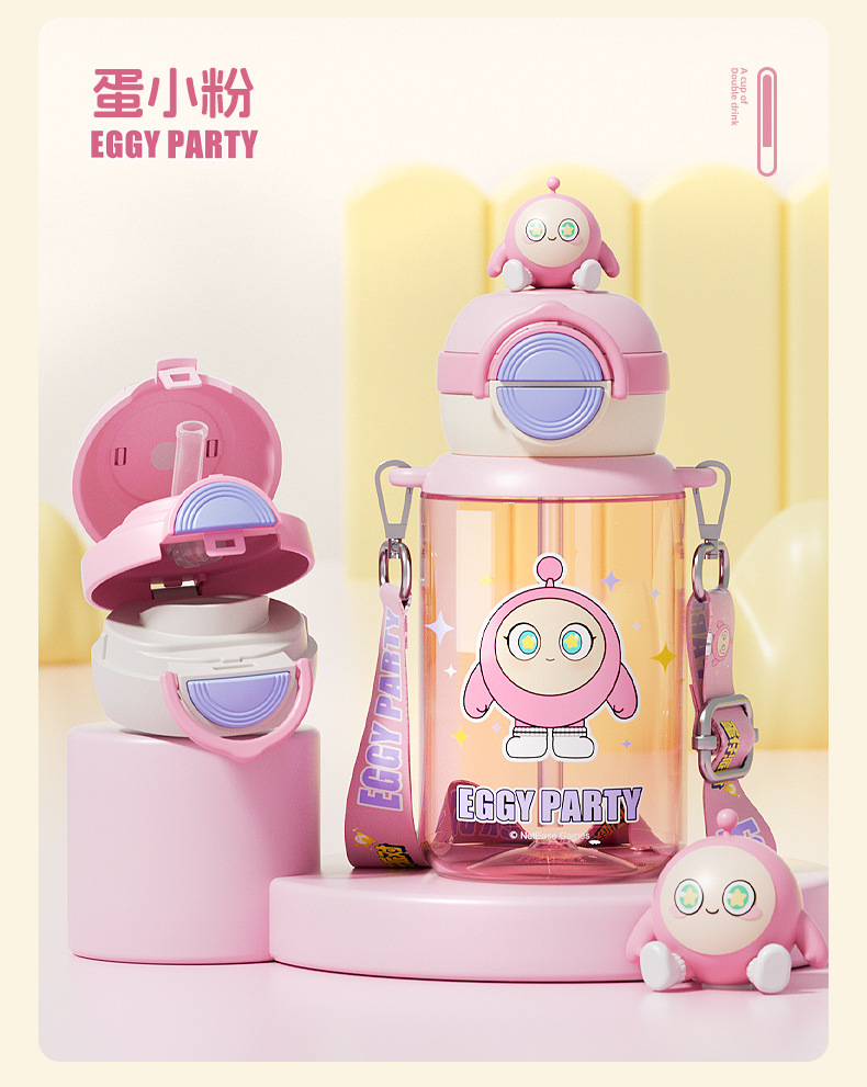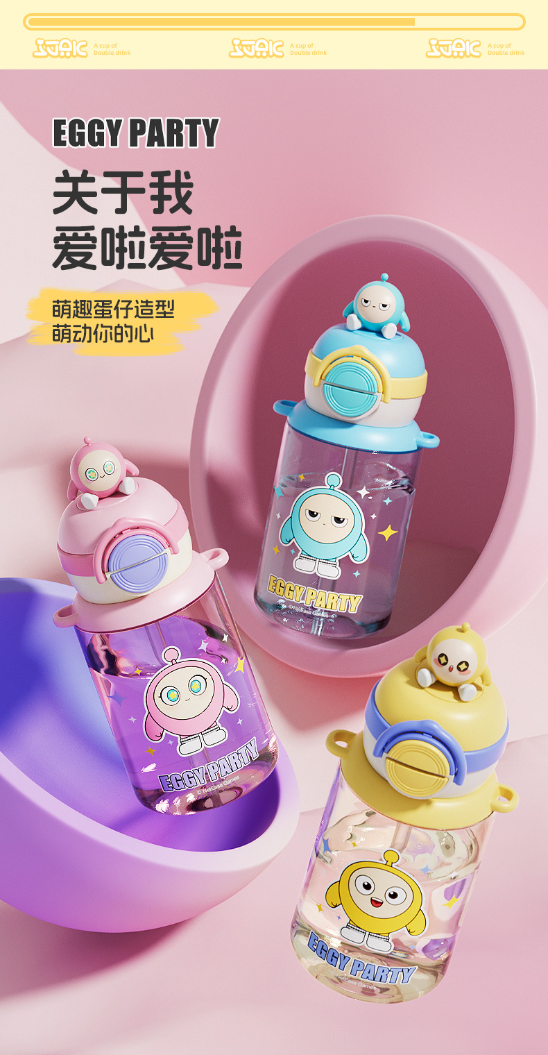 蛋仔派对弹盖公仔塑料杯独立公仔自带可调节杯绳一杯双饮水杯