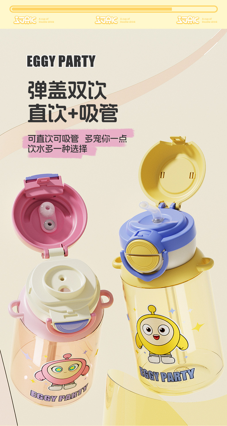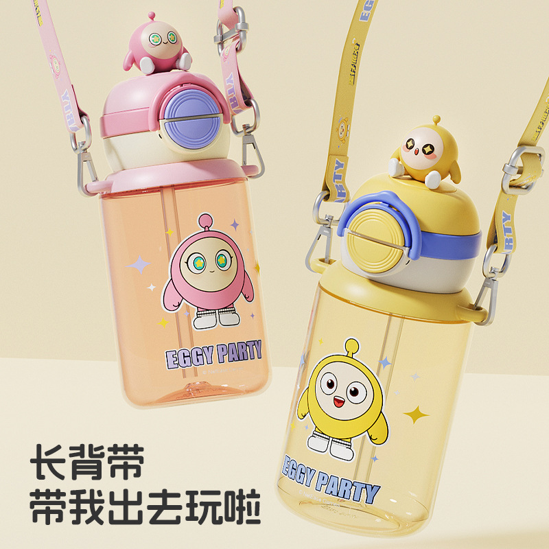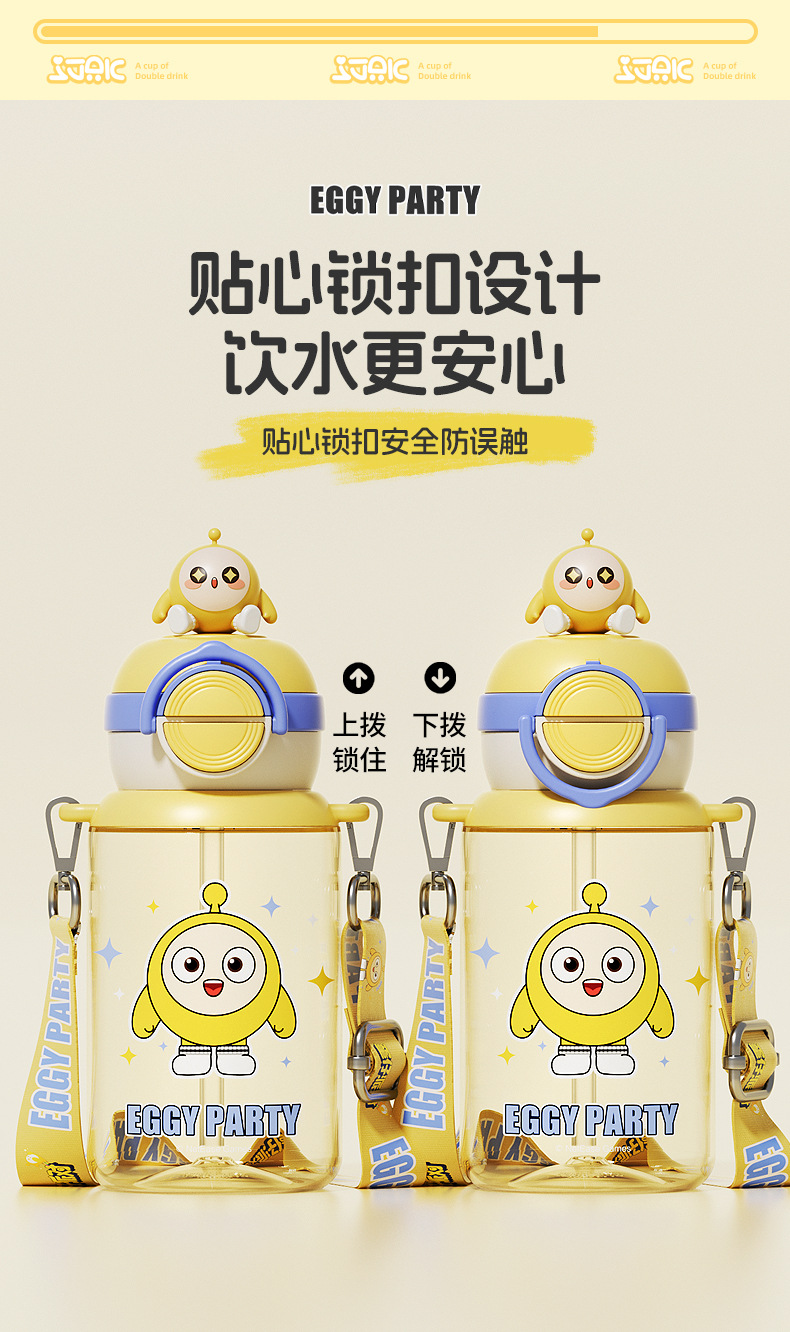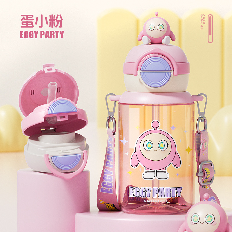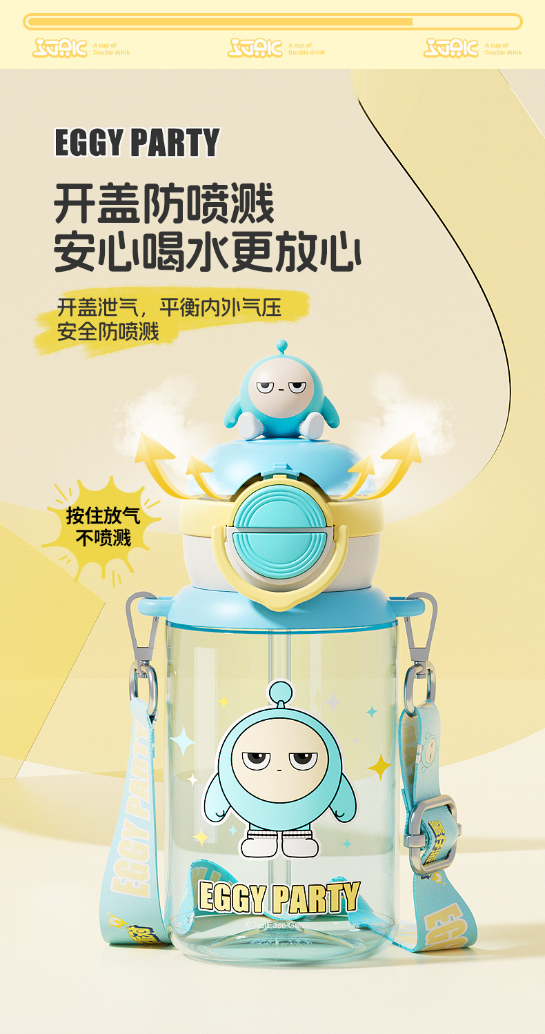蛋仔派对弹盖公仔塑料杯独立公仔自带可调节杯绳一杯双饮水杯