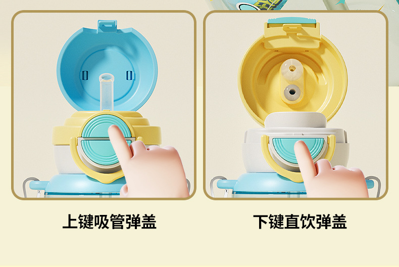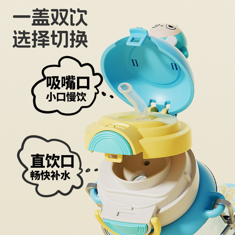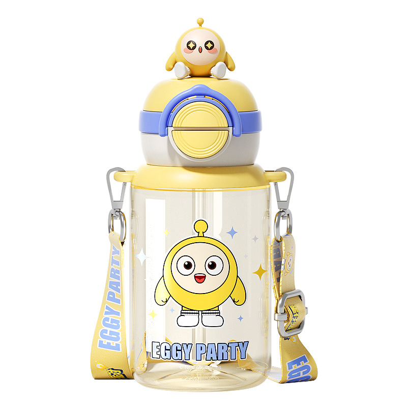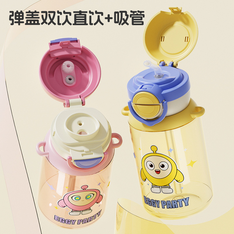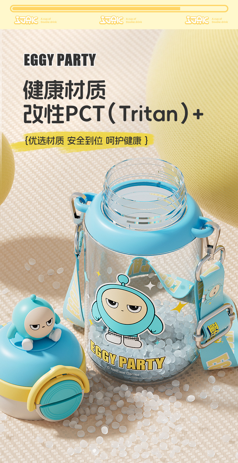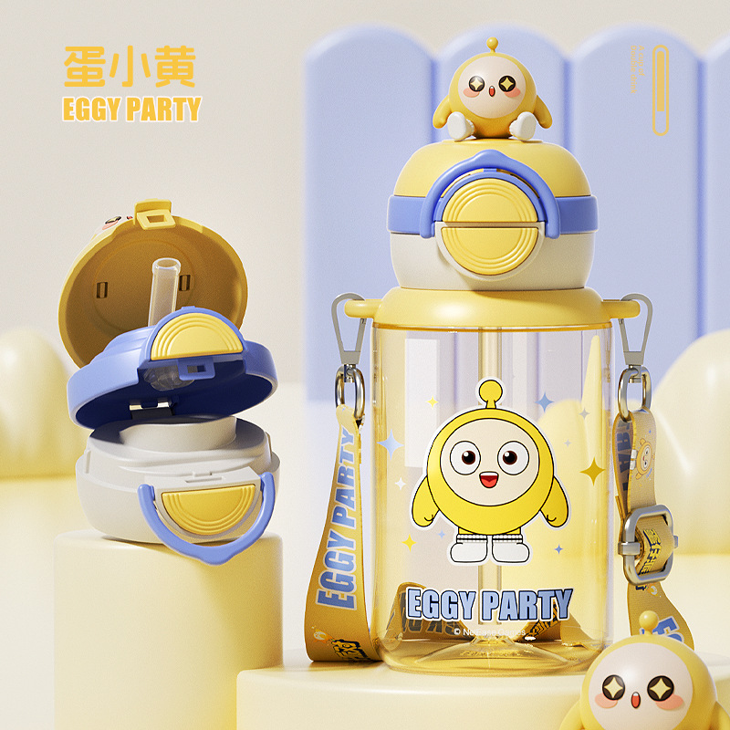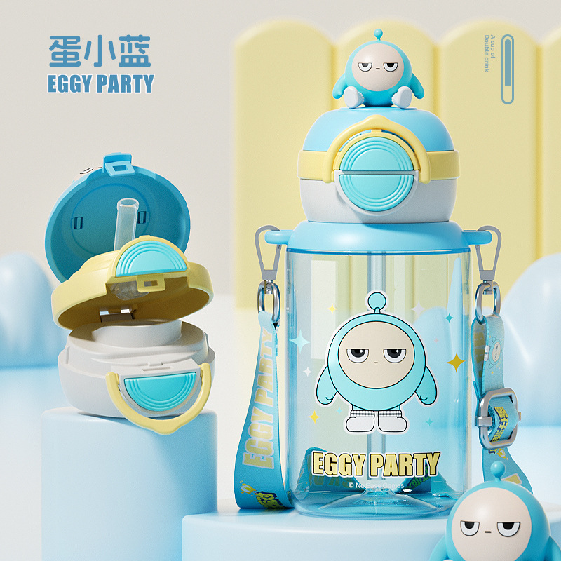 蛋仔派对弹盖公仔塑料杯独立公仔自带可调节杯绳一杯双饮水杯