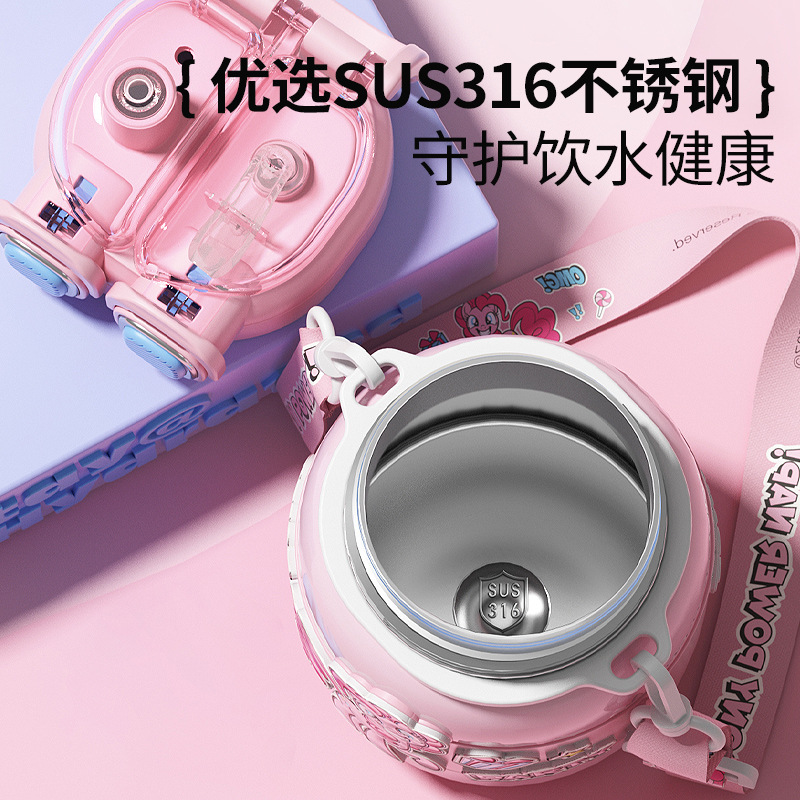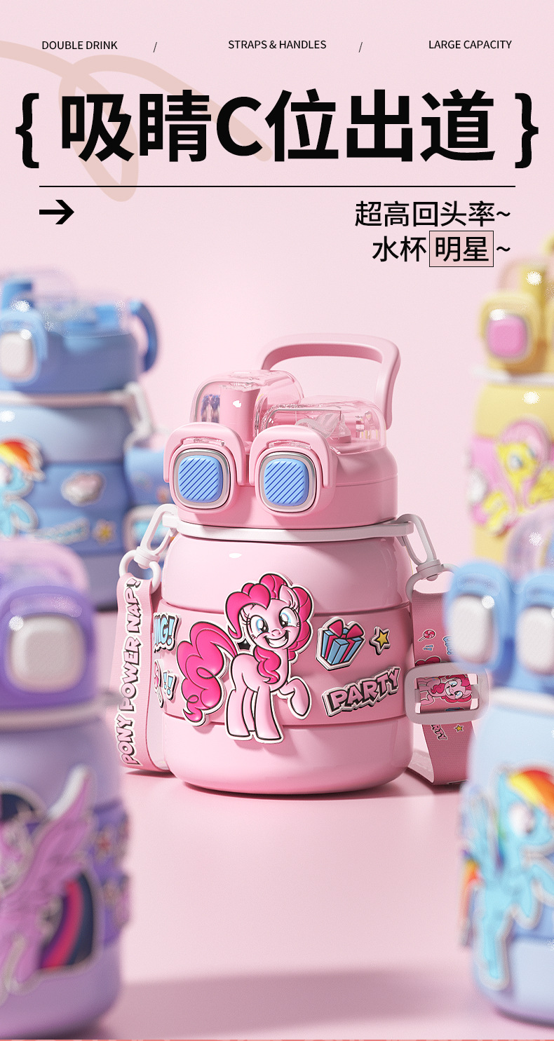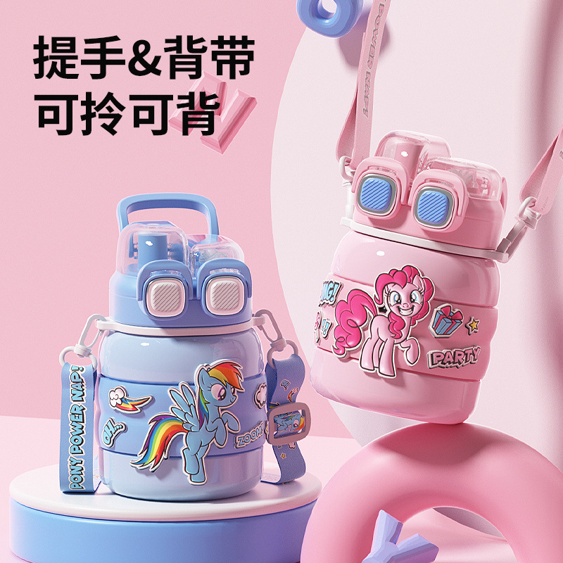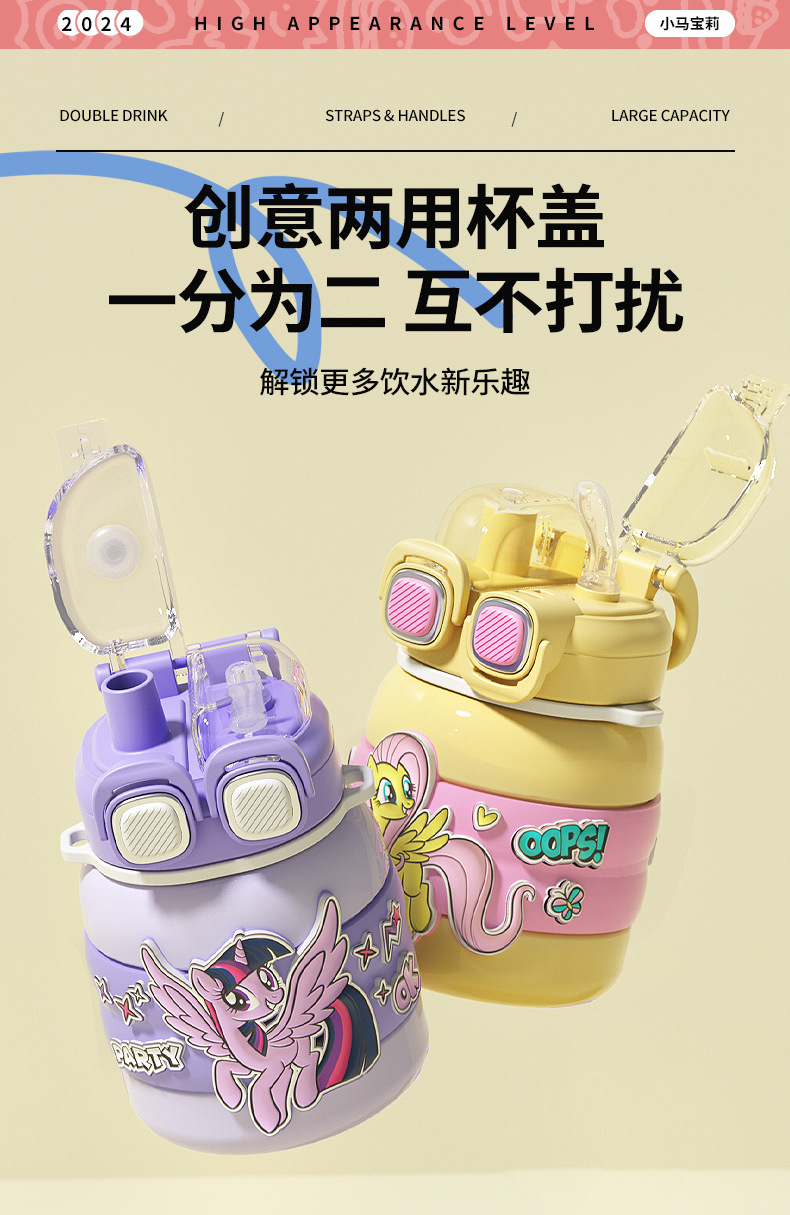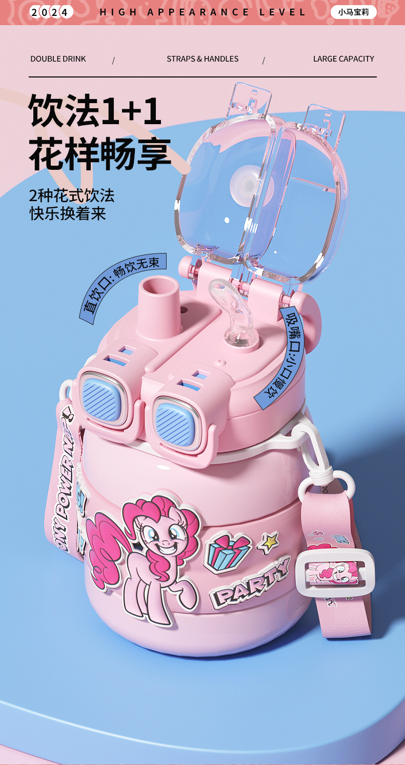 小马宝莉可爱吸管杯学生上学杯子女生大容量可爱保温杯高颜值双饮