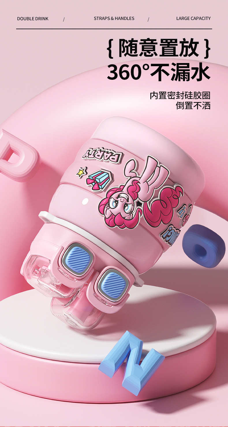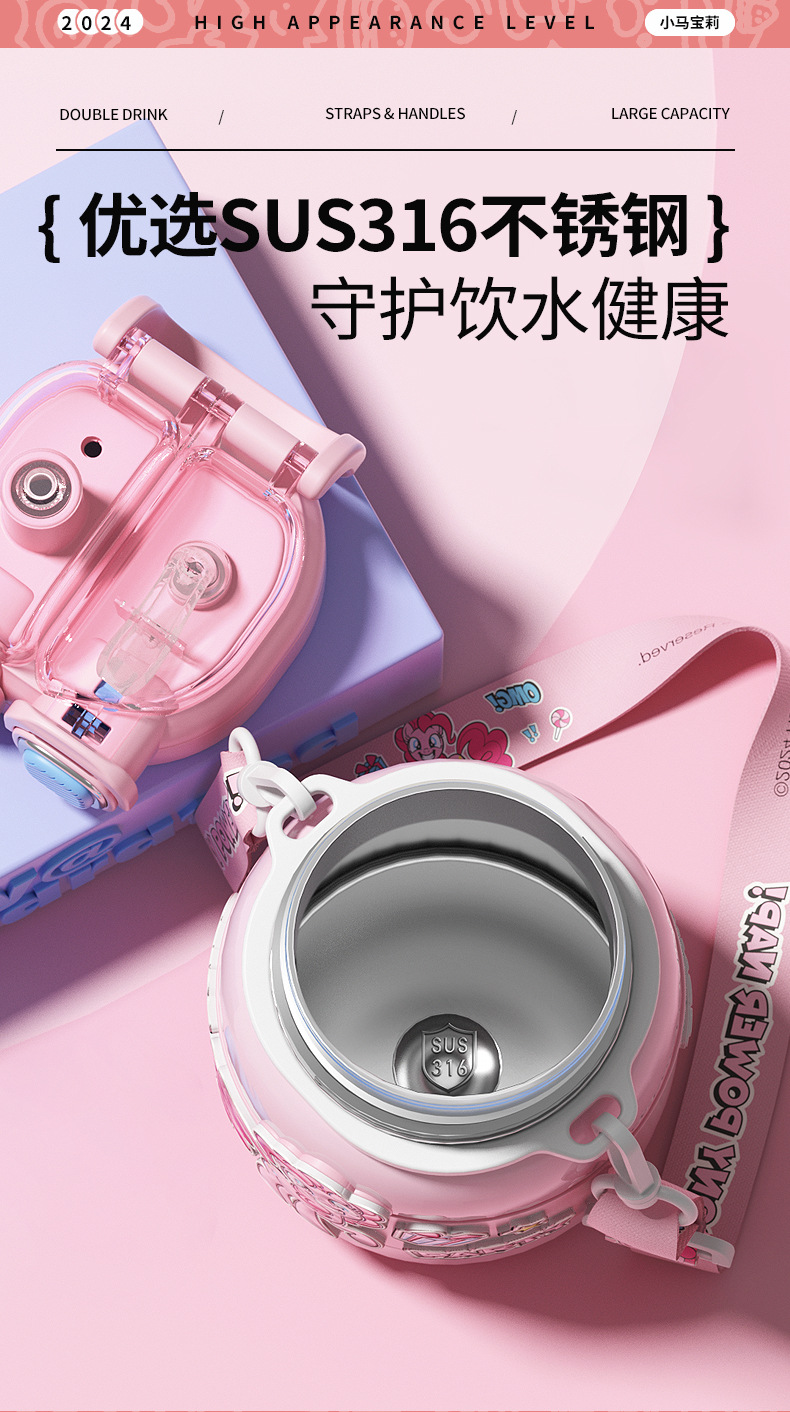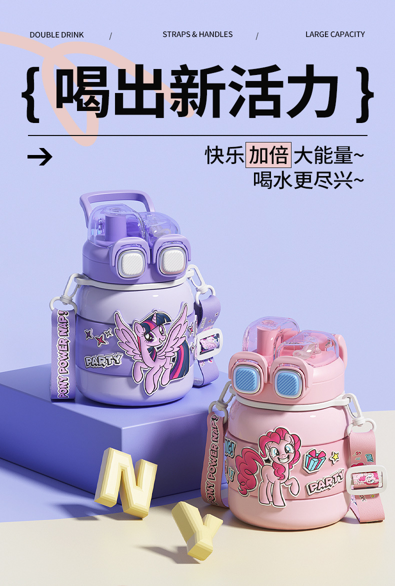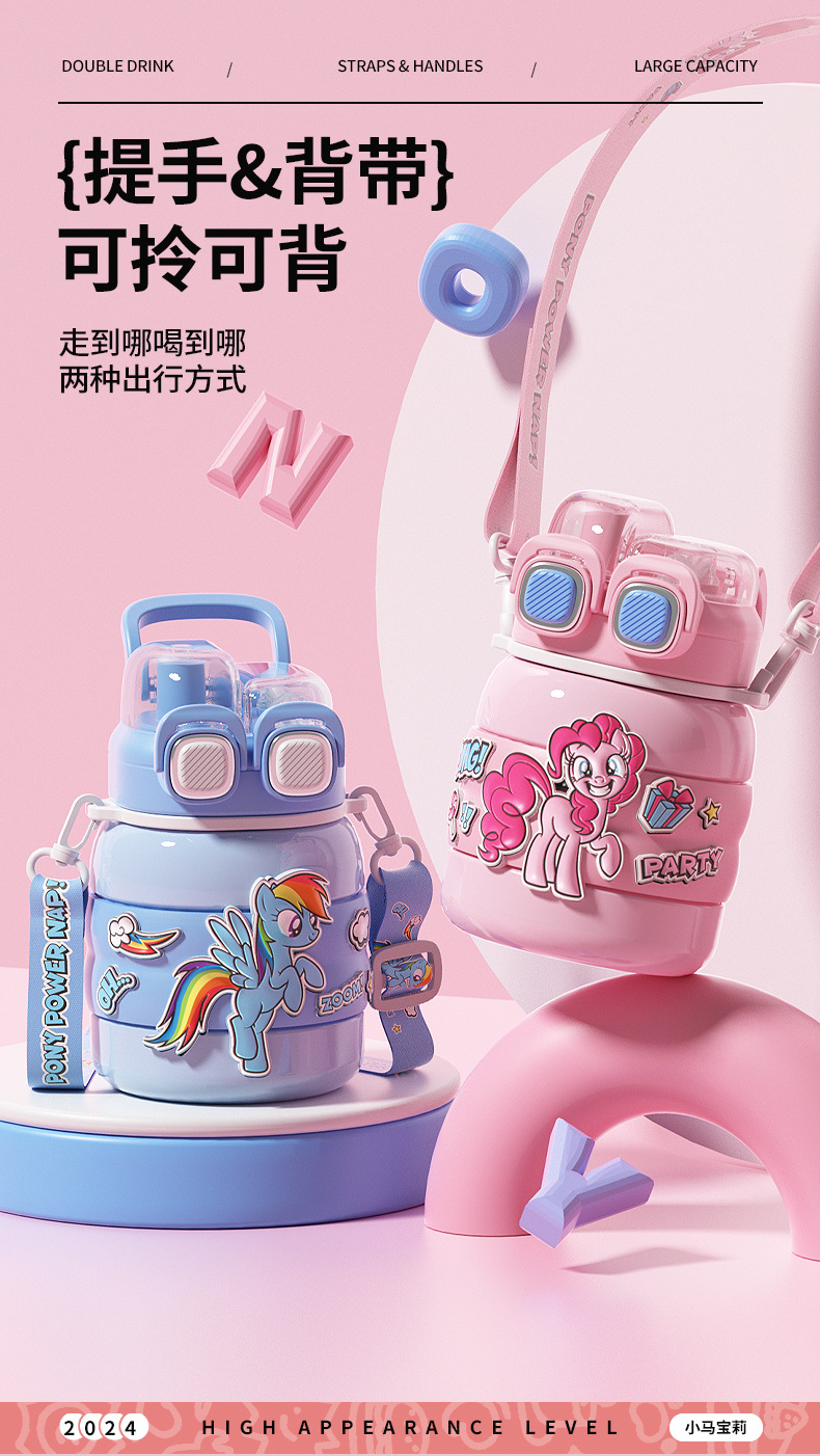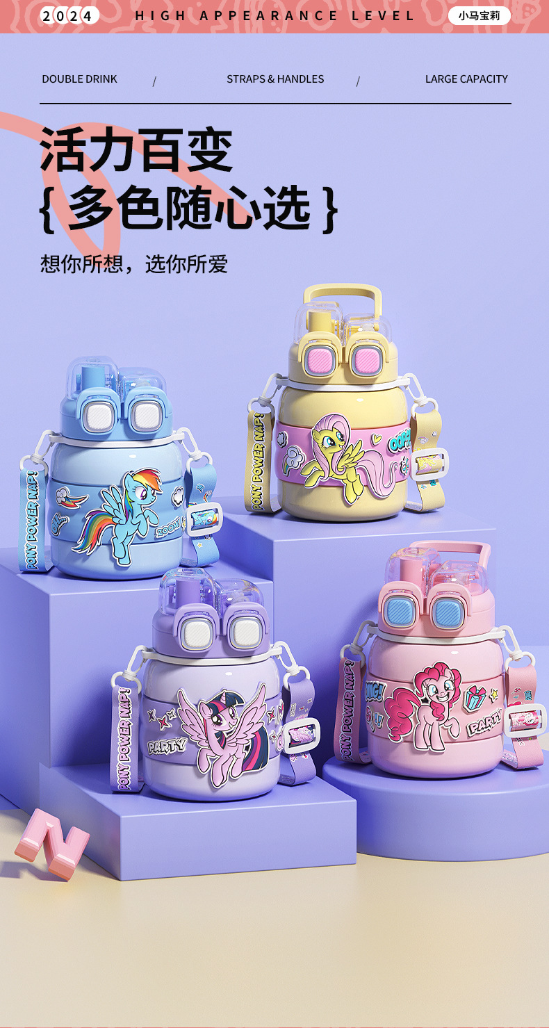 小马宝莉可爱吸管杯学生上学杯子女生大容量可爱保温杯高颜值双饮