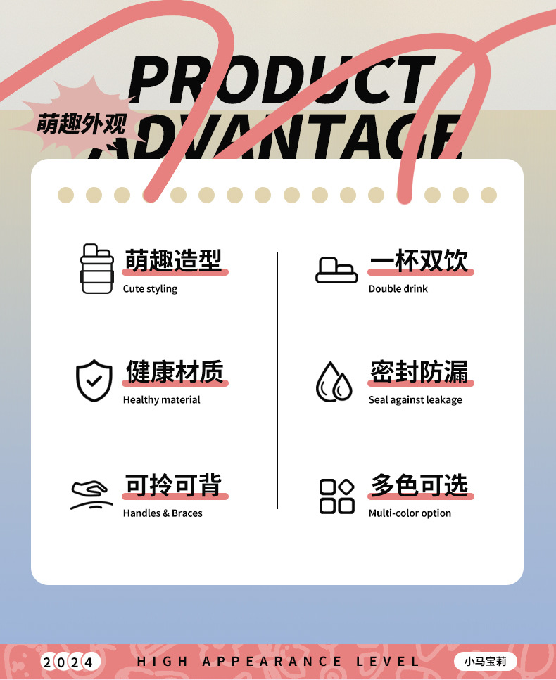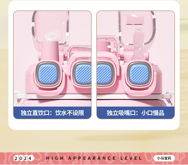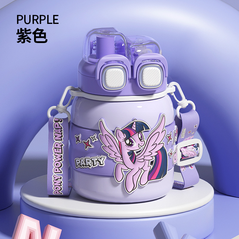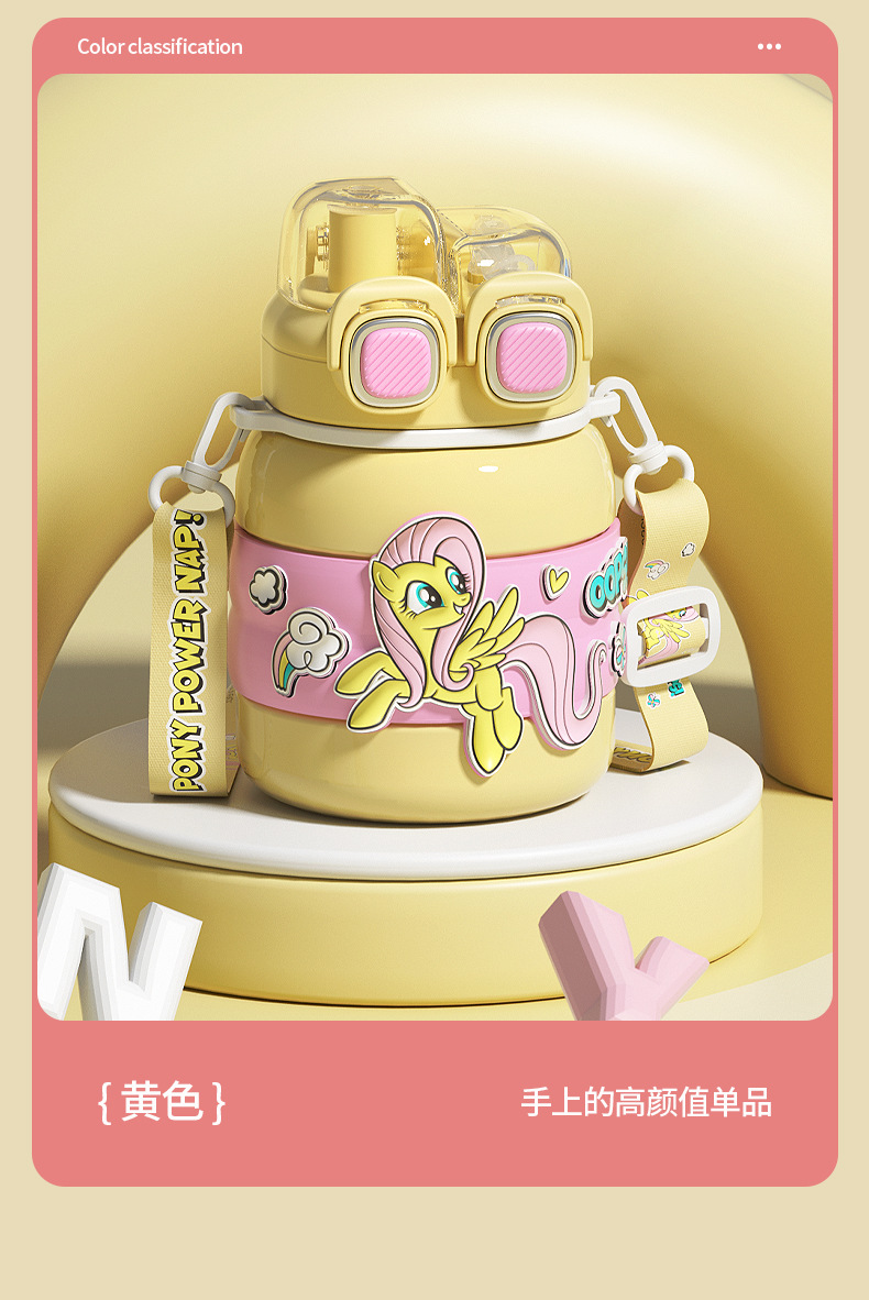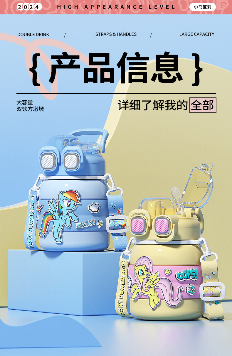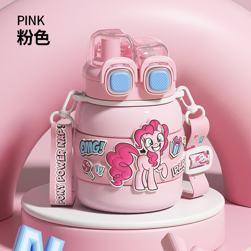 小马宝莉可爱吸管杯学生上学杯子女生大容量可爱保温杯高颜值双饮