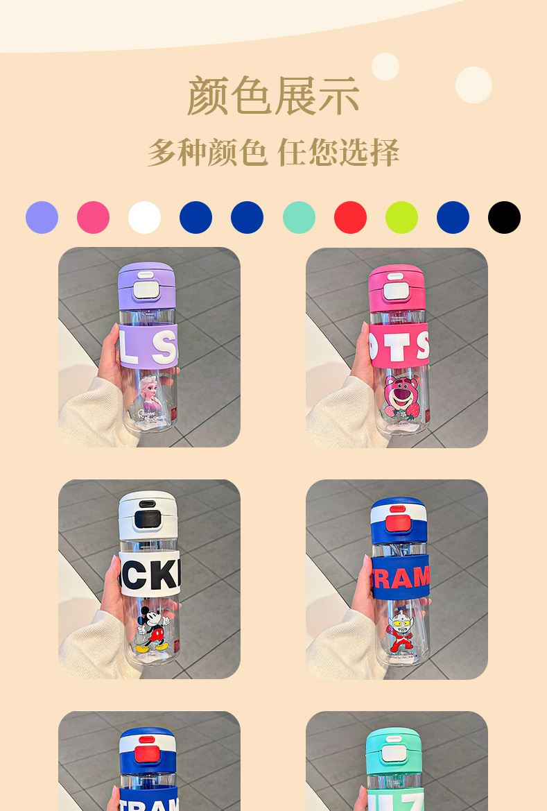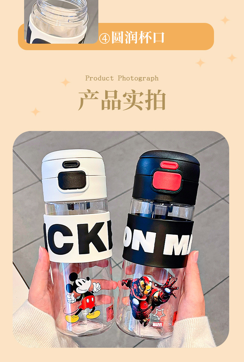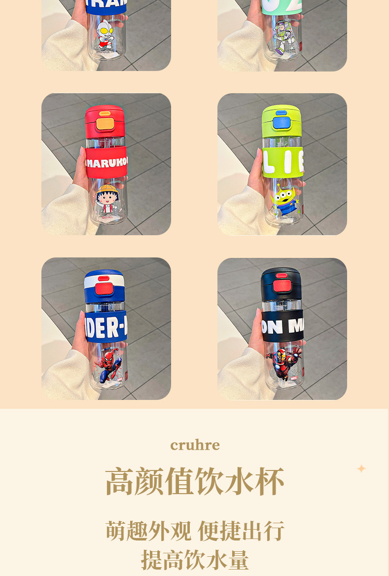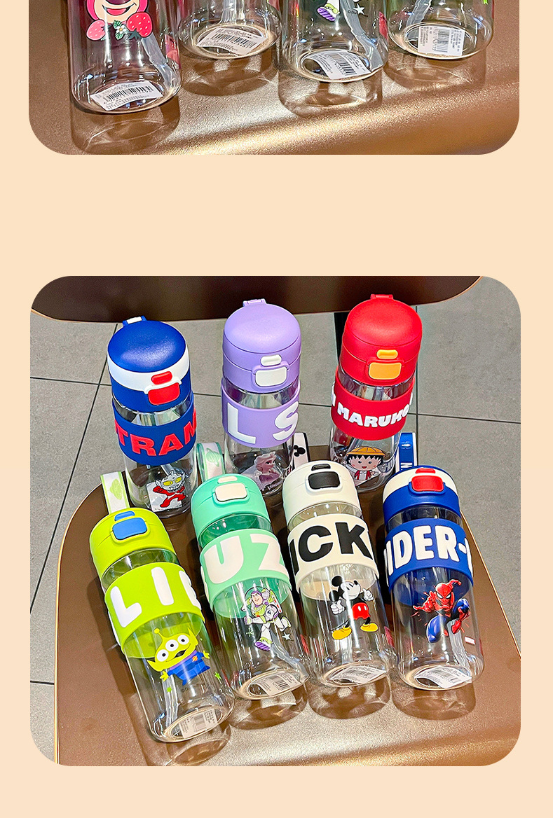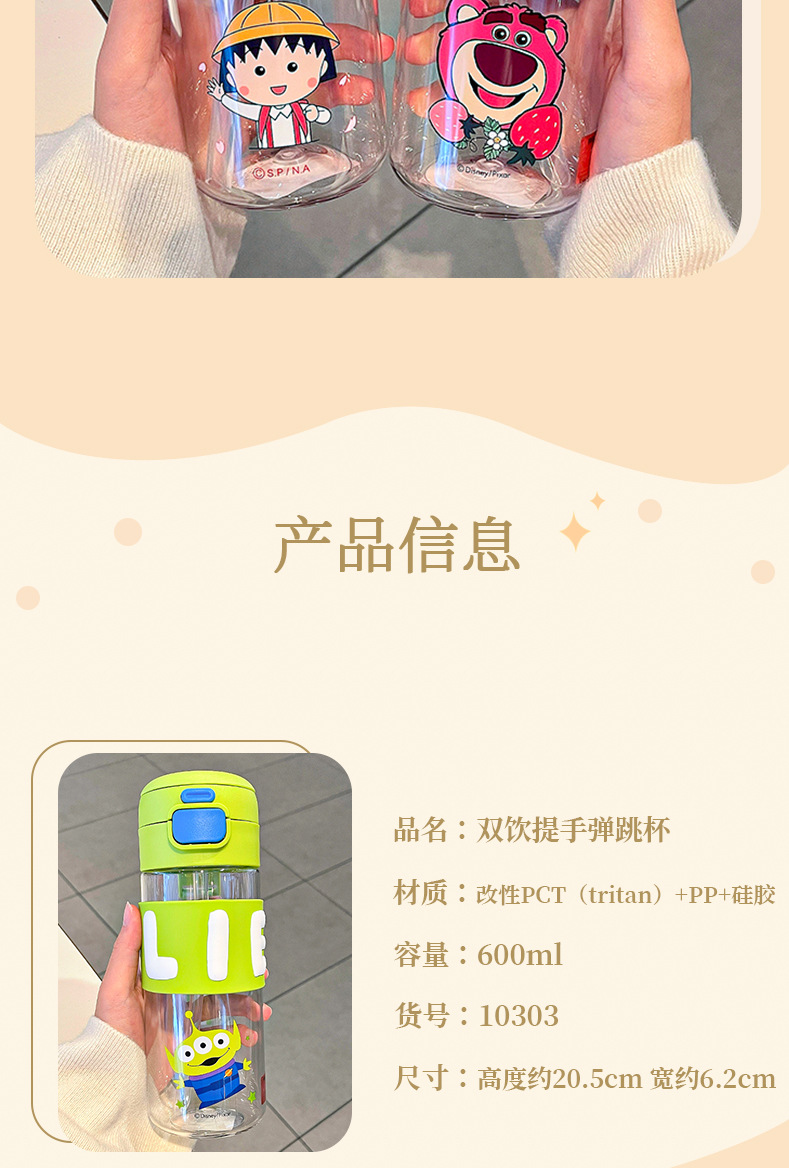 卡通动漫潮流儿童塑料杯学生运动水杯便捷弹盖双饮杯高颜值随手杯